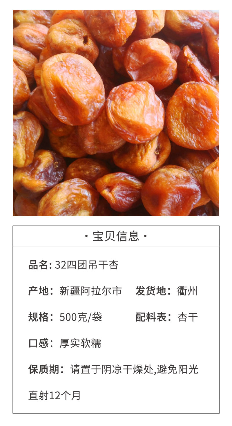 【吊干杏】新疆32四团吊干杏,不加一丁点糖,自然成熟,风干于树,清洗晾晒后,Q弹香糯,好像在吃杏子味的QQ软糖,越吃越上瘾!