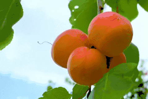 成熟以后,”吊“在枝头暴晒,将阳光雨露和糖分封存在果肉里,转化为”杏干“;