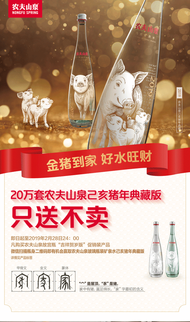 农夫山泉玻璃瓶天然矿泉水猪年生肖典藏版一套