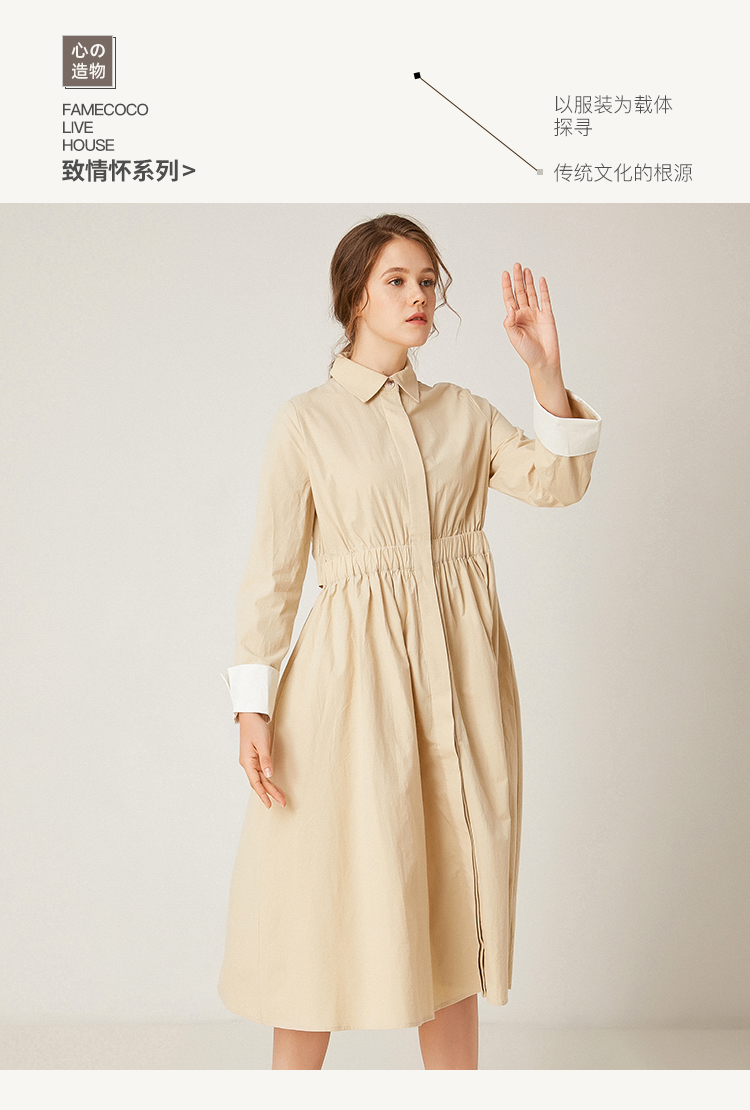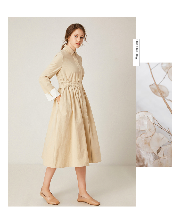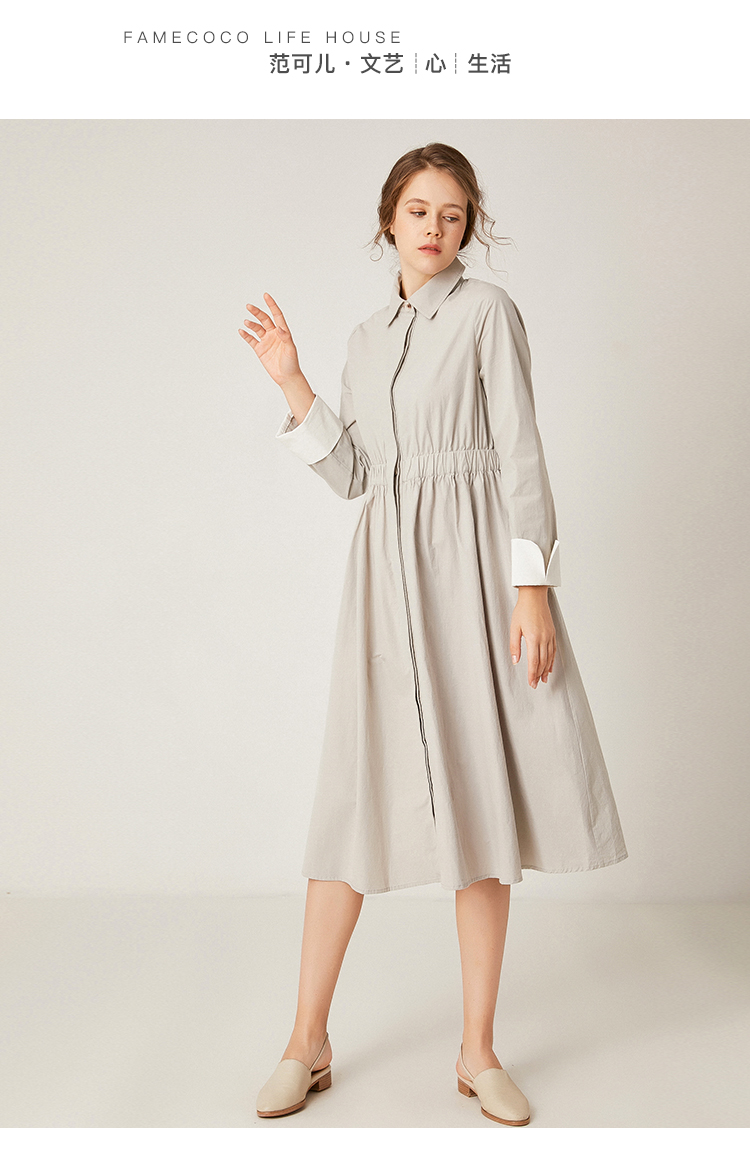 famecoco范可儿衬衫裙收腰显瘦中长款连衣裙F195FA011