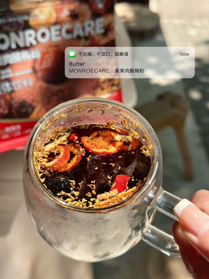 冲泡一杯后,就能体会到梅子肉 梅子粉在舌尖的完美交融 每一口都是酸甜交织的盛宴 还可以边饮边嚼果肉 那份惬意简直美妙极了~