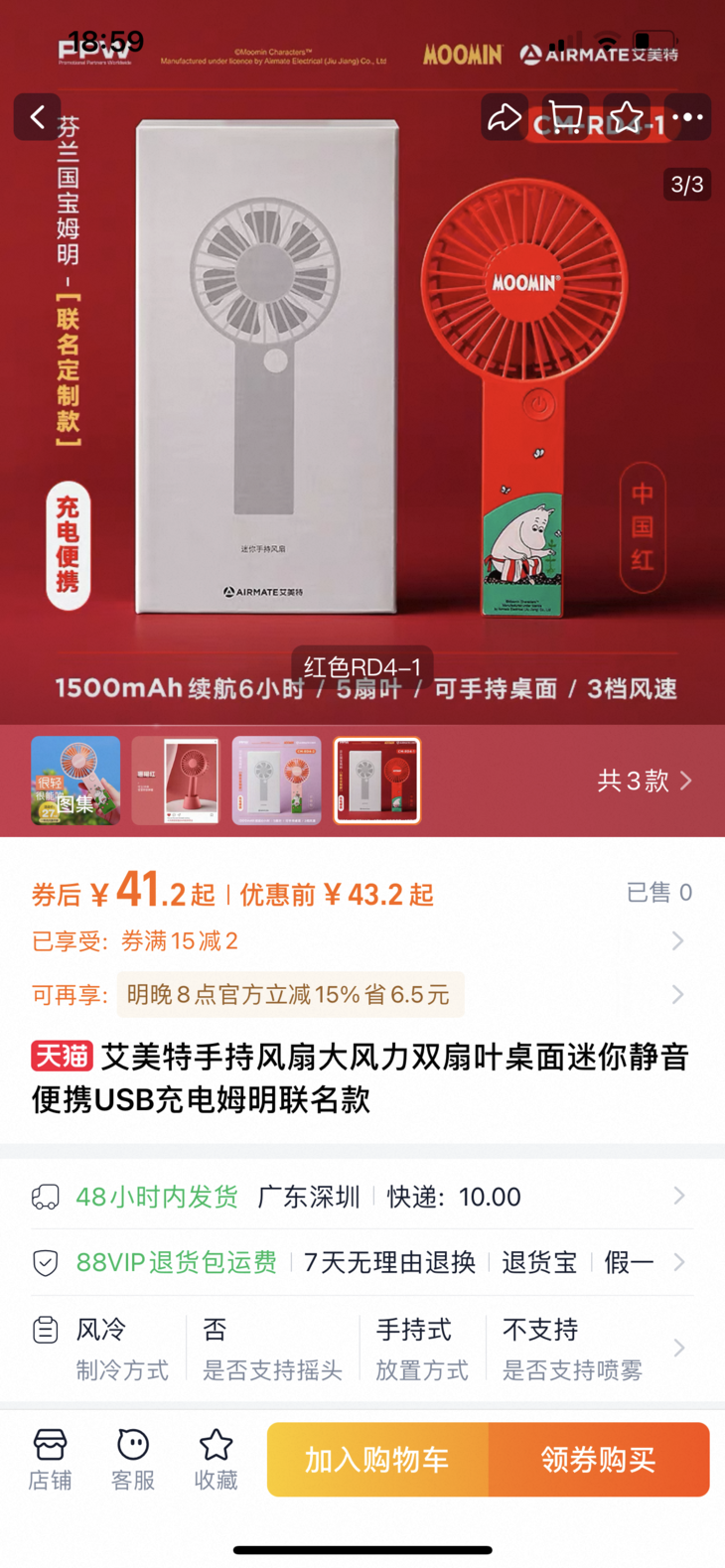 ⏰ 热星人的续命法宝❗️ 哥尼和姆明妈妈限定❗️库存告急,速冲 【 Airmate艾美特手持小风扇 】 超值福利 ¥ 26.9💰就能带走 ✅ 3档调风,静音电机低至20dB