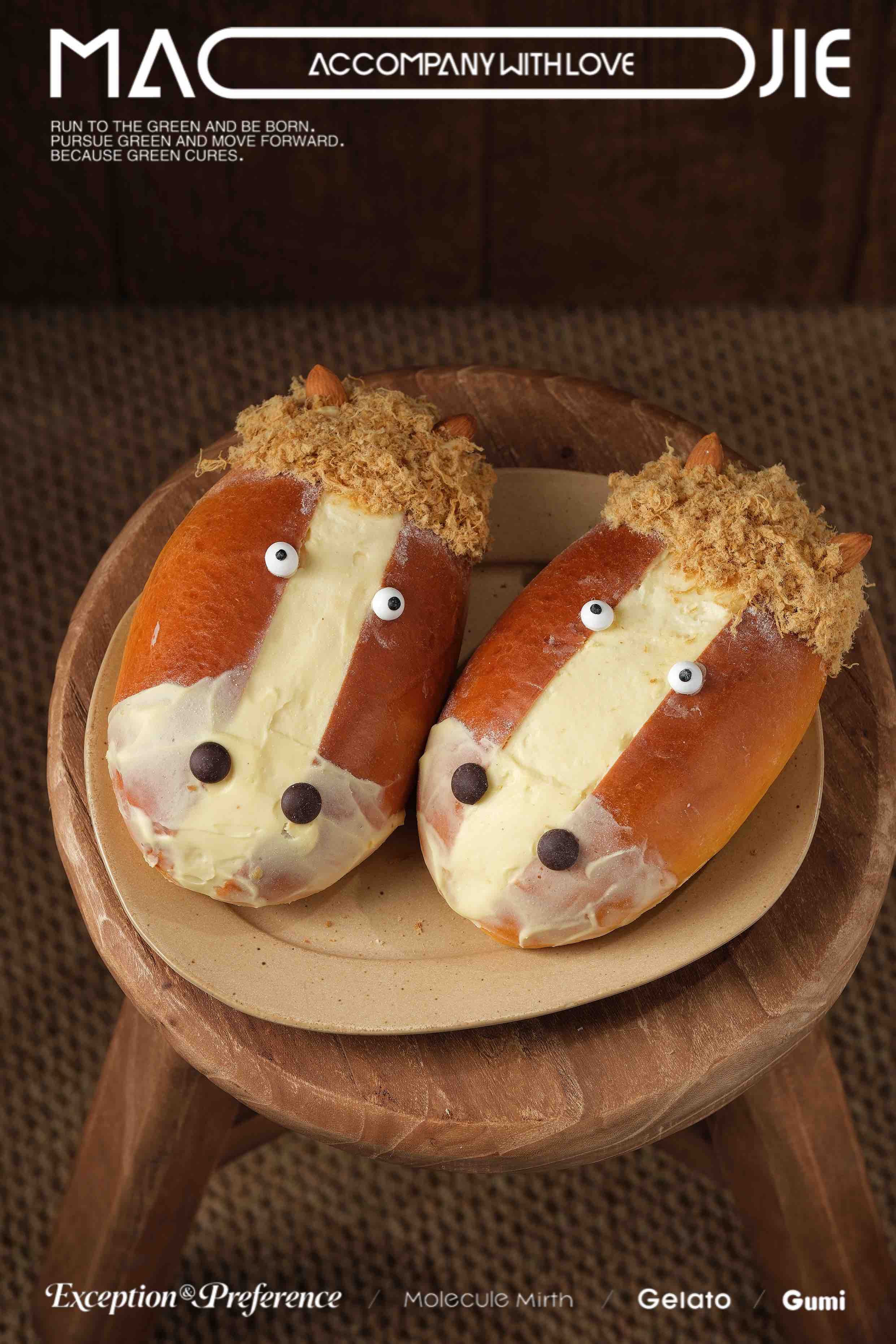 配料:韩国幼砂糖、新西兰进口奶粉、酵母、富硒鸡蛋、香草膏 、碧根果仁、猪肉松