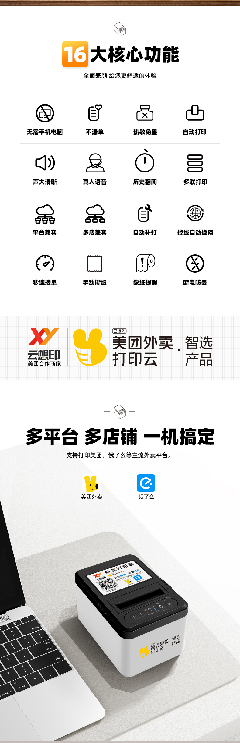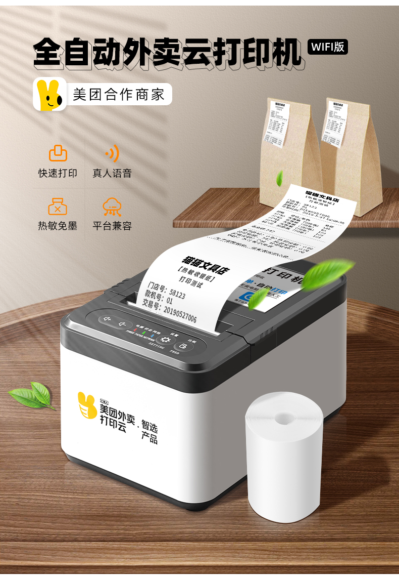 美团外卖自动接单云打印机 支持双平台 WiFi联网 语音播报 不漏单 PW01