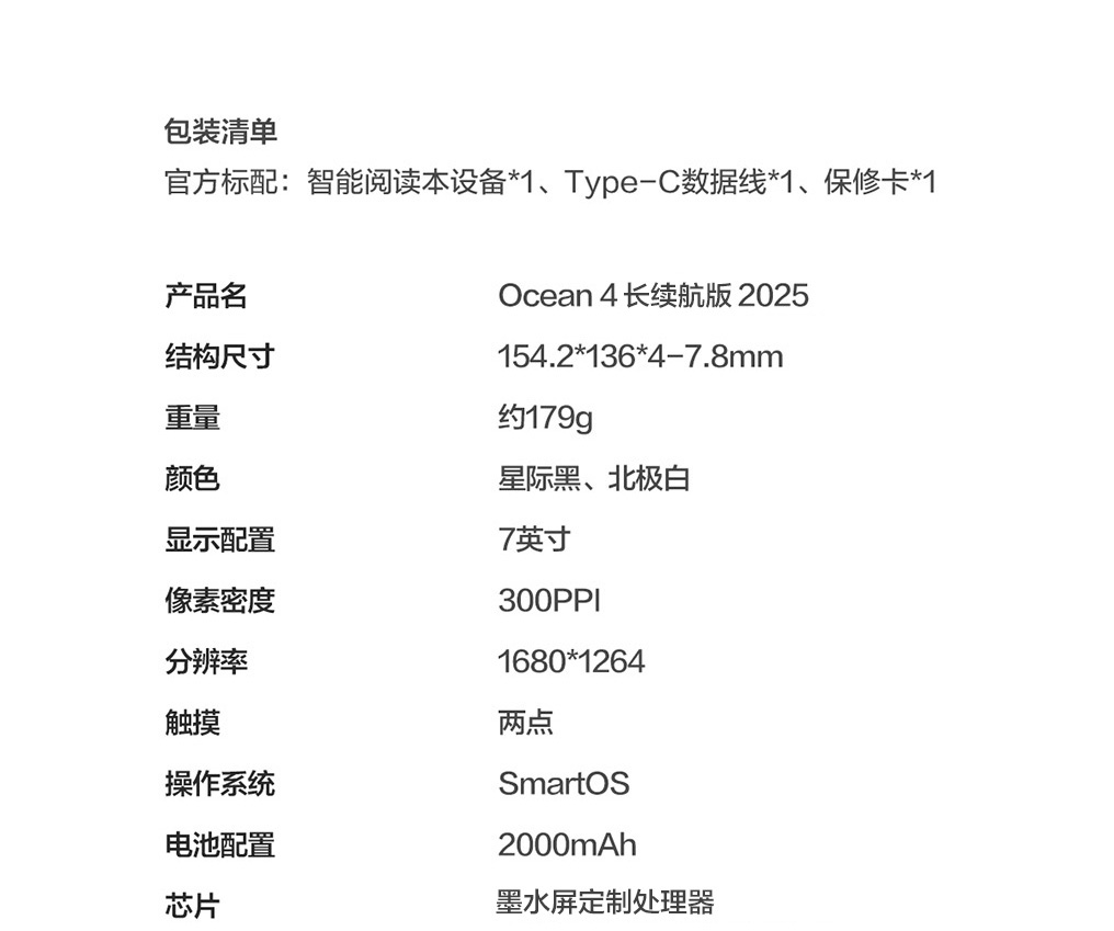 【4月新品】掌阅iReader Ocean 4 长续航版 2025 7英寸电纸书阅读器