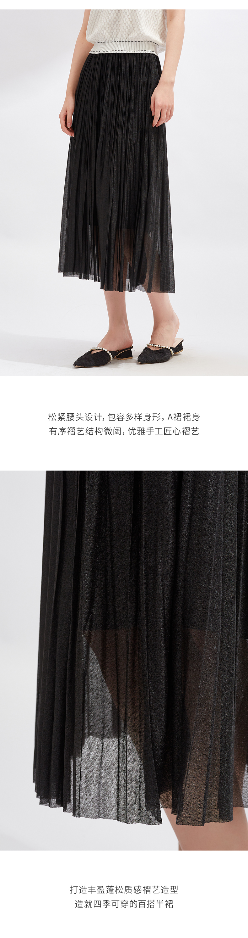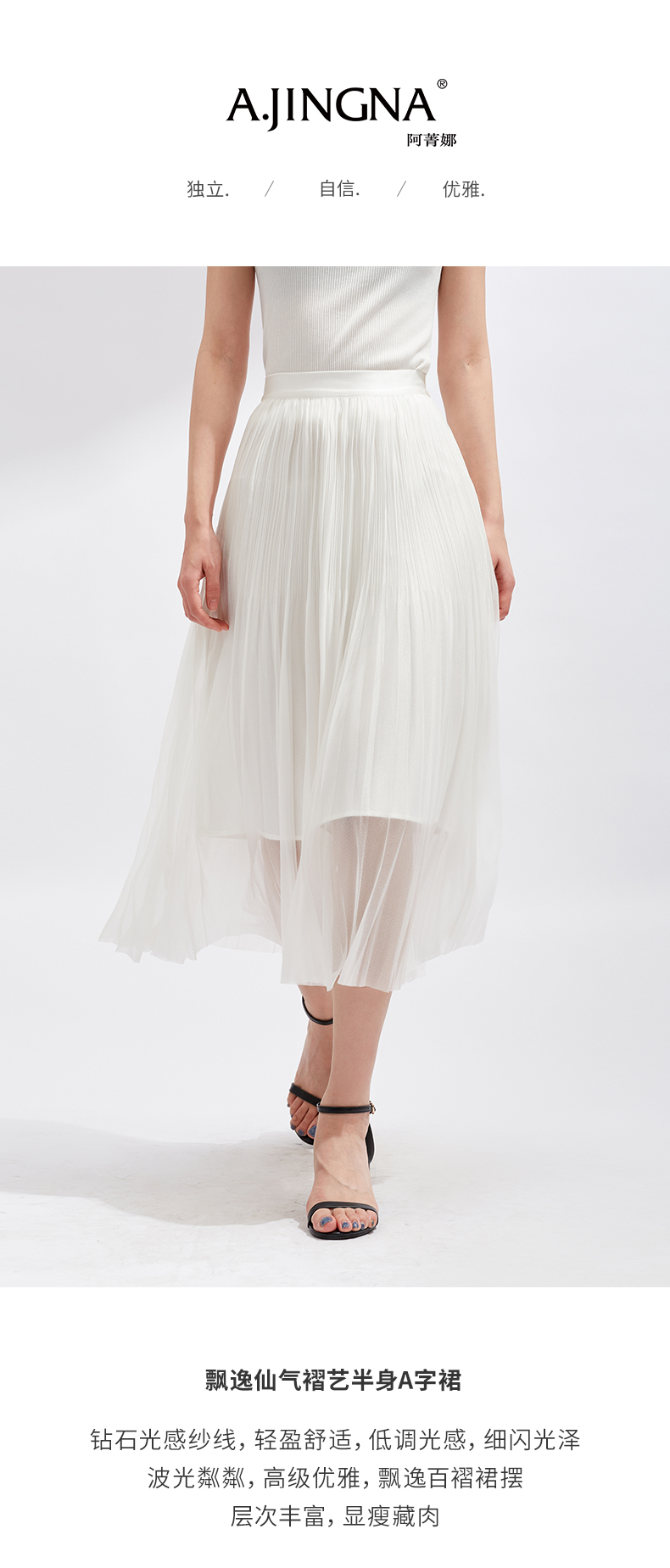 【轻盈舒适】阿菁娜飘逸仙气褶艺半身A字裙F30X213016