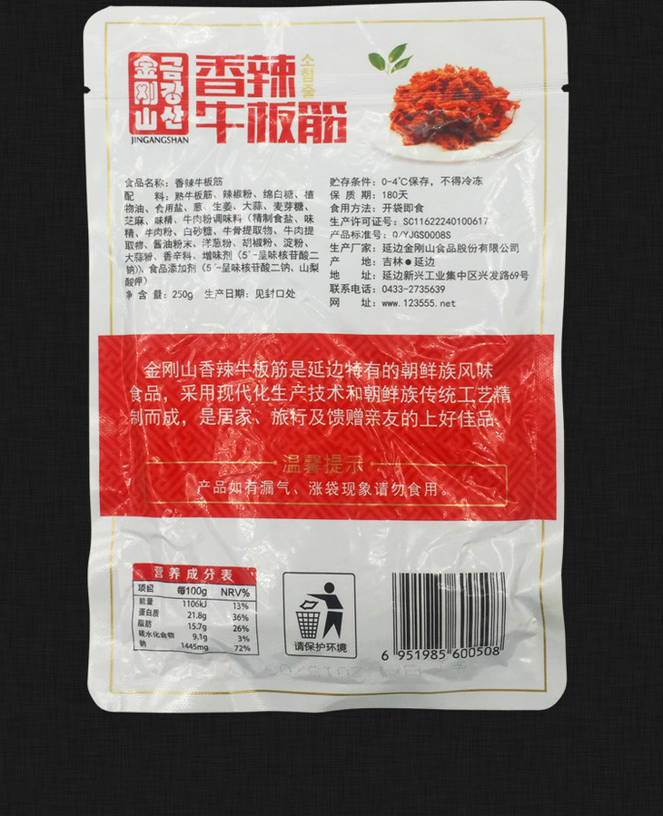 金刚山牛筋片 240克 避光常温保存3个月 厂家偶尔断货,断货时默认发250克真空包装的哦