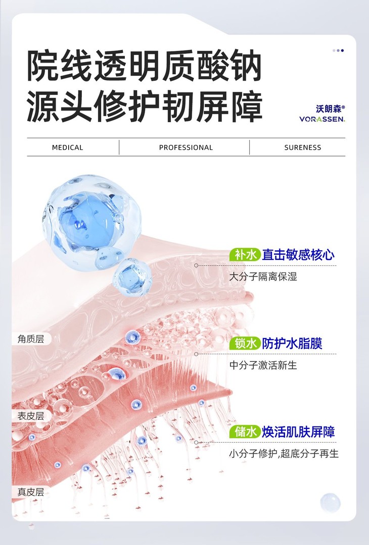 院线级透明质酸钠的 “分层修护术”—— 透明质酸:抓水能力是自身重量的 1000 倍,深层补水锁水,让肌肤喝饱水💦 大分子扒在角质层隔离保湿(先把外界刺激挡在外) 中分子钻到表皮层激活新生(锁牢水分不跑) 小分子 + 超小分子直接渗到真皮层修护再生(从根上把屏障补韧) 补水 + 锁水 + 储水一套全兜住 换季干痒、医美术后那种 “脆皮脸” 用它是真能从源头把屏障养韧~