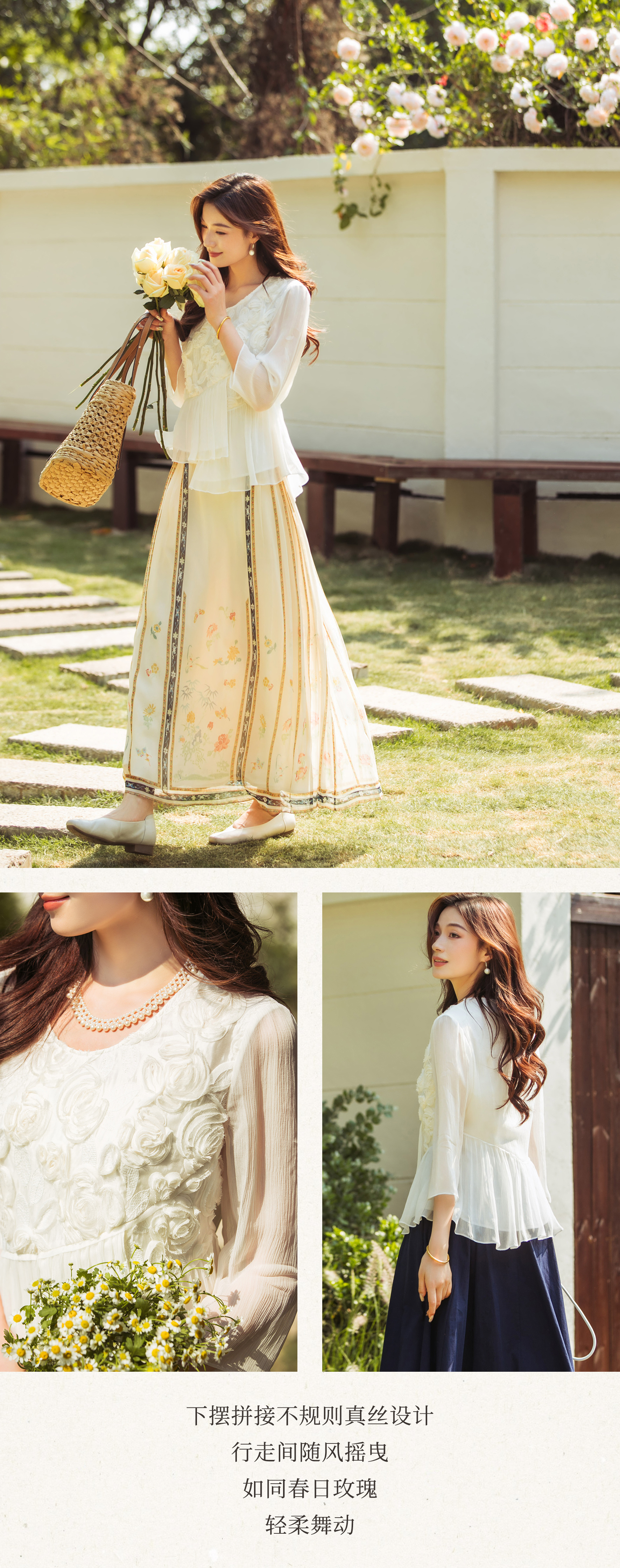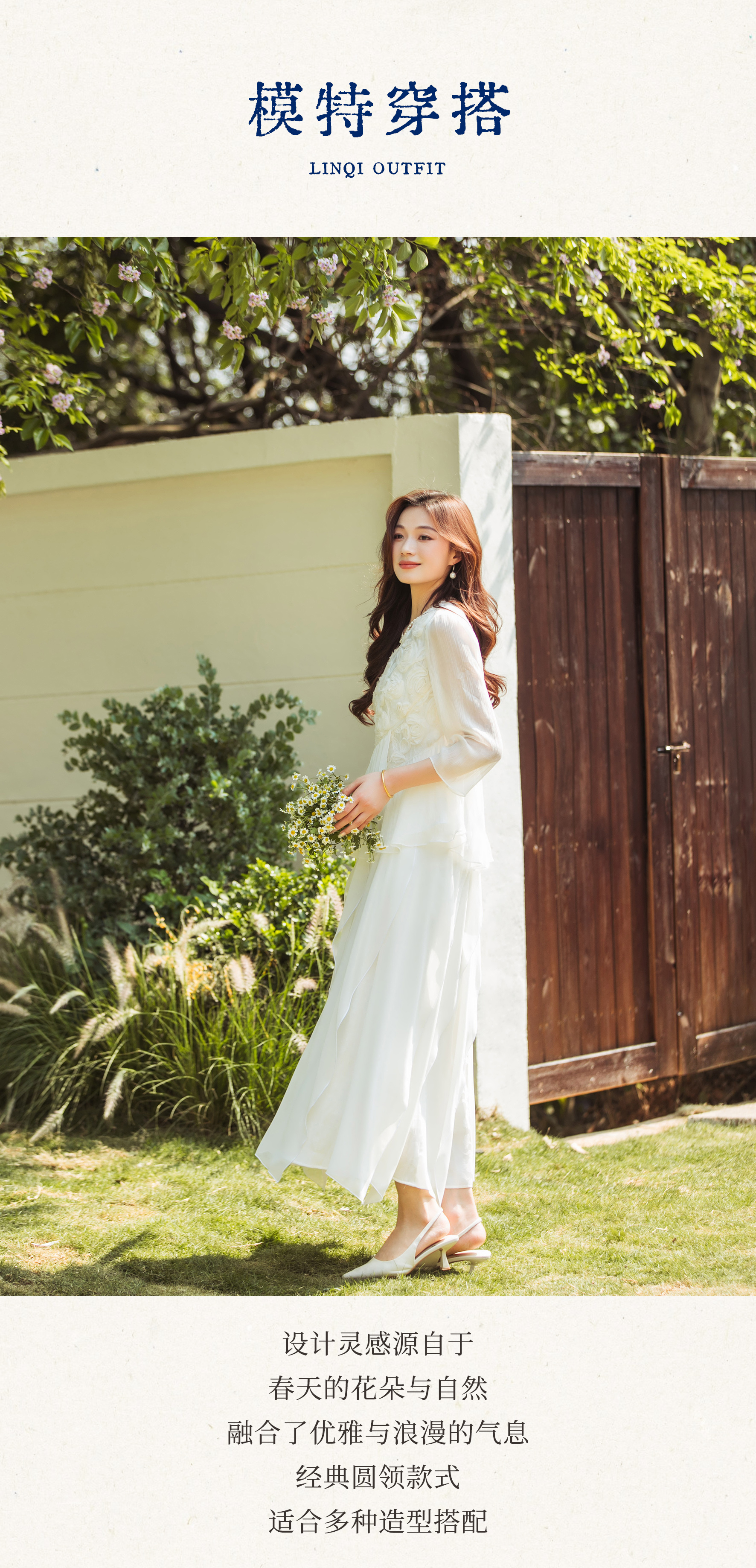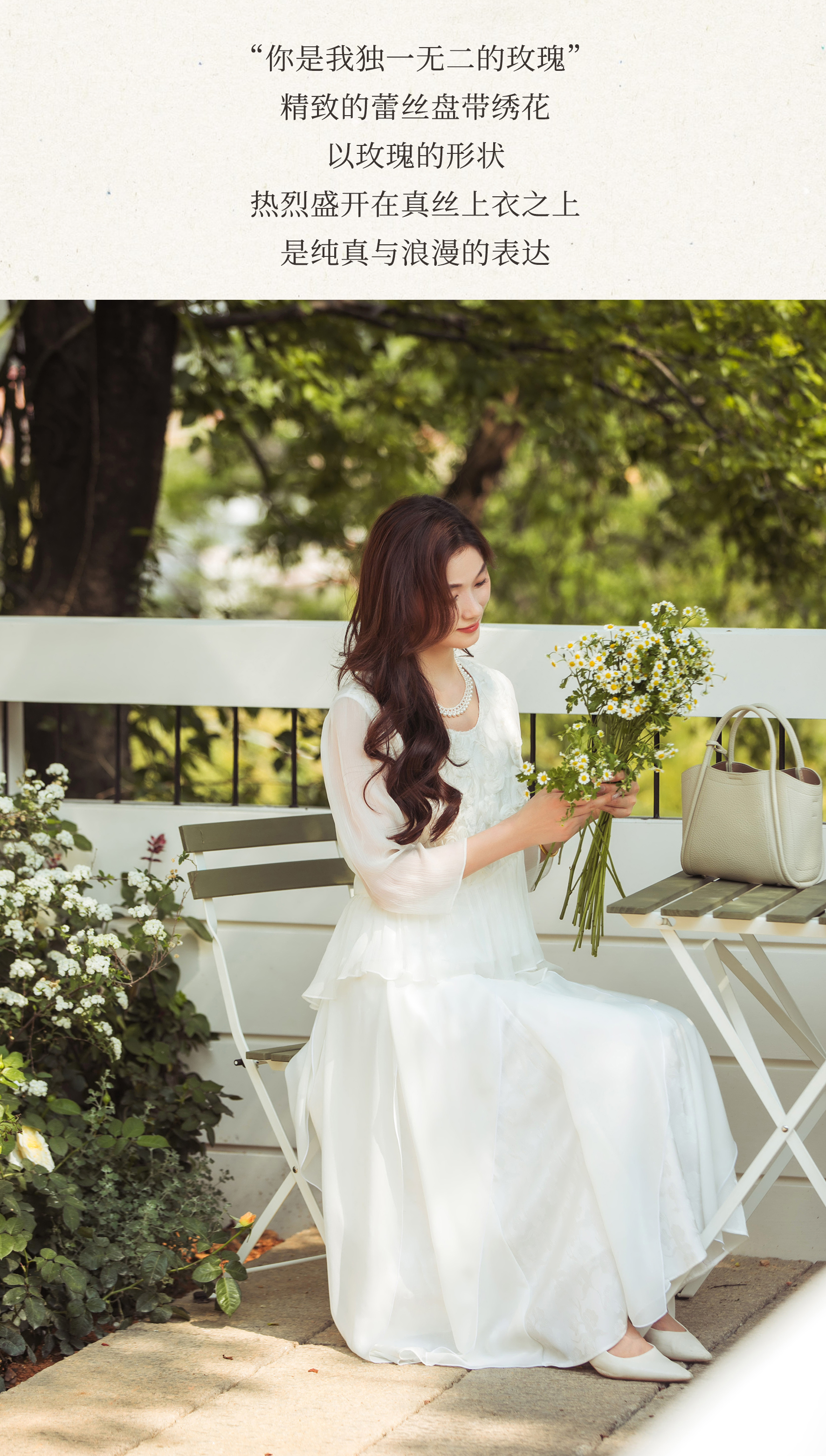 【林栖设计小店】【林栖推荐】(现货)白玫瑰真丝上衣2025春夏新品花仙子长袖上衣女N1952303