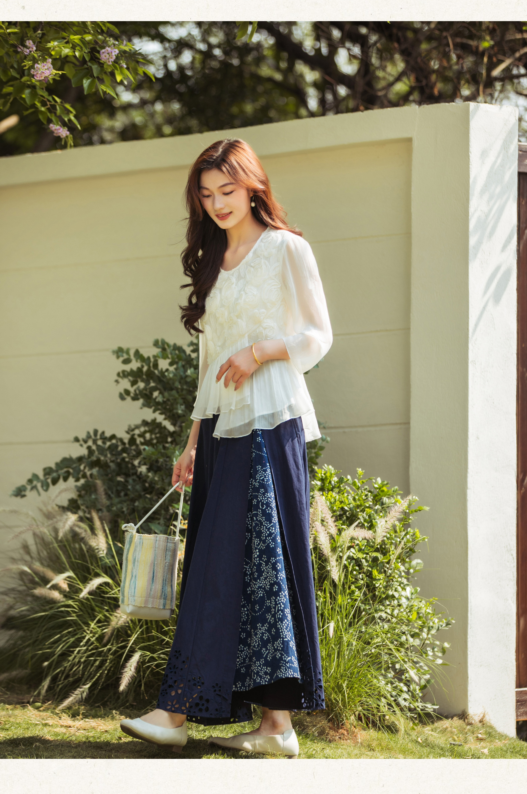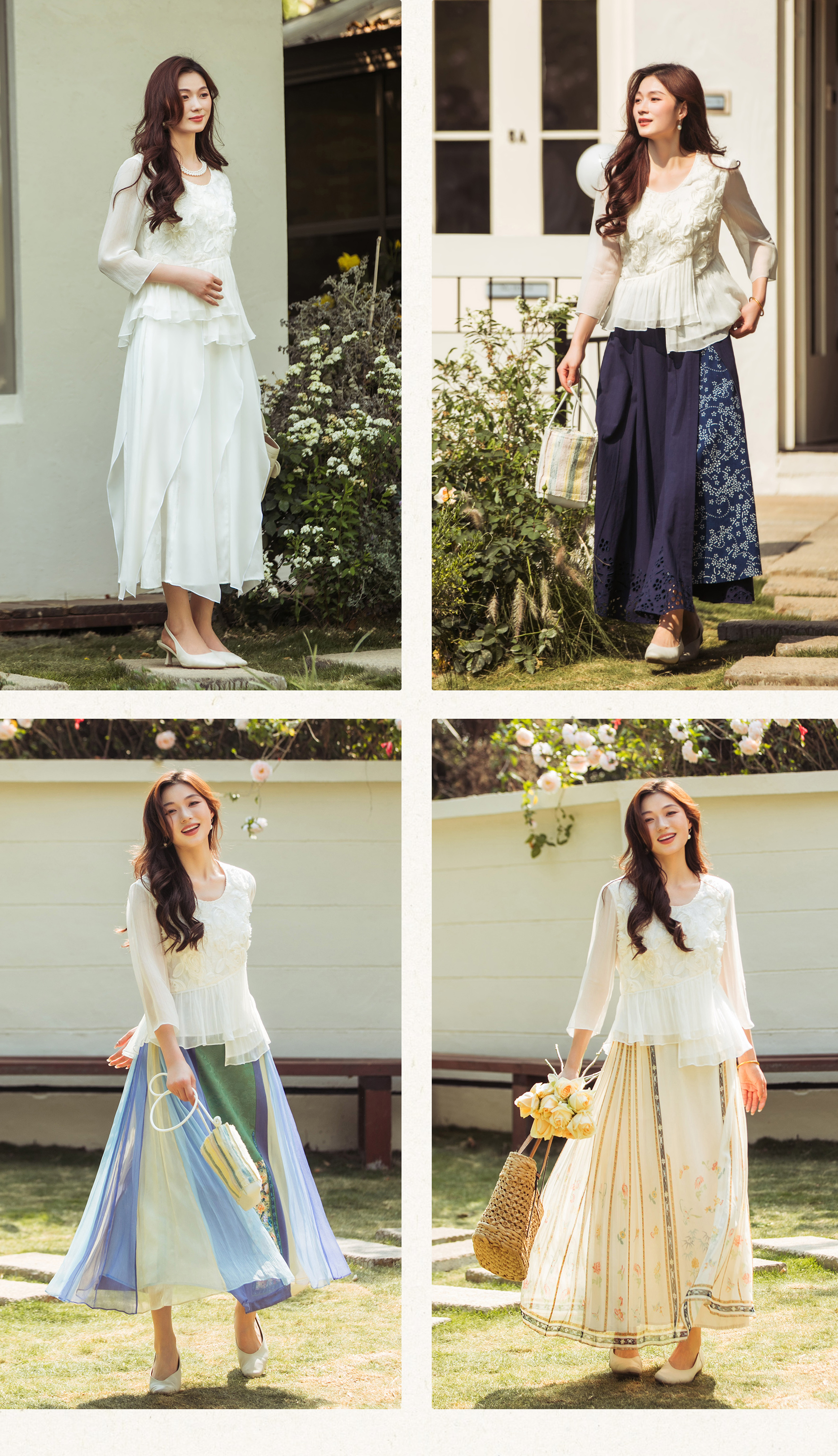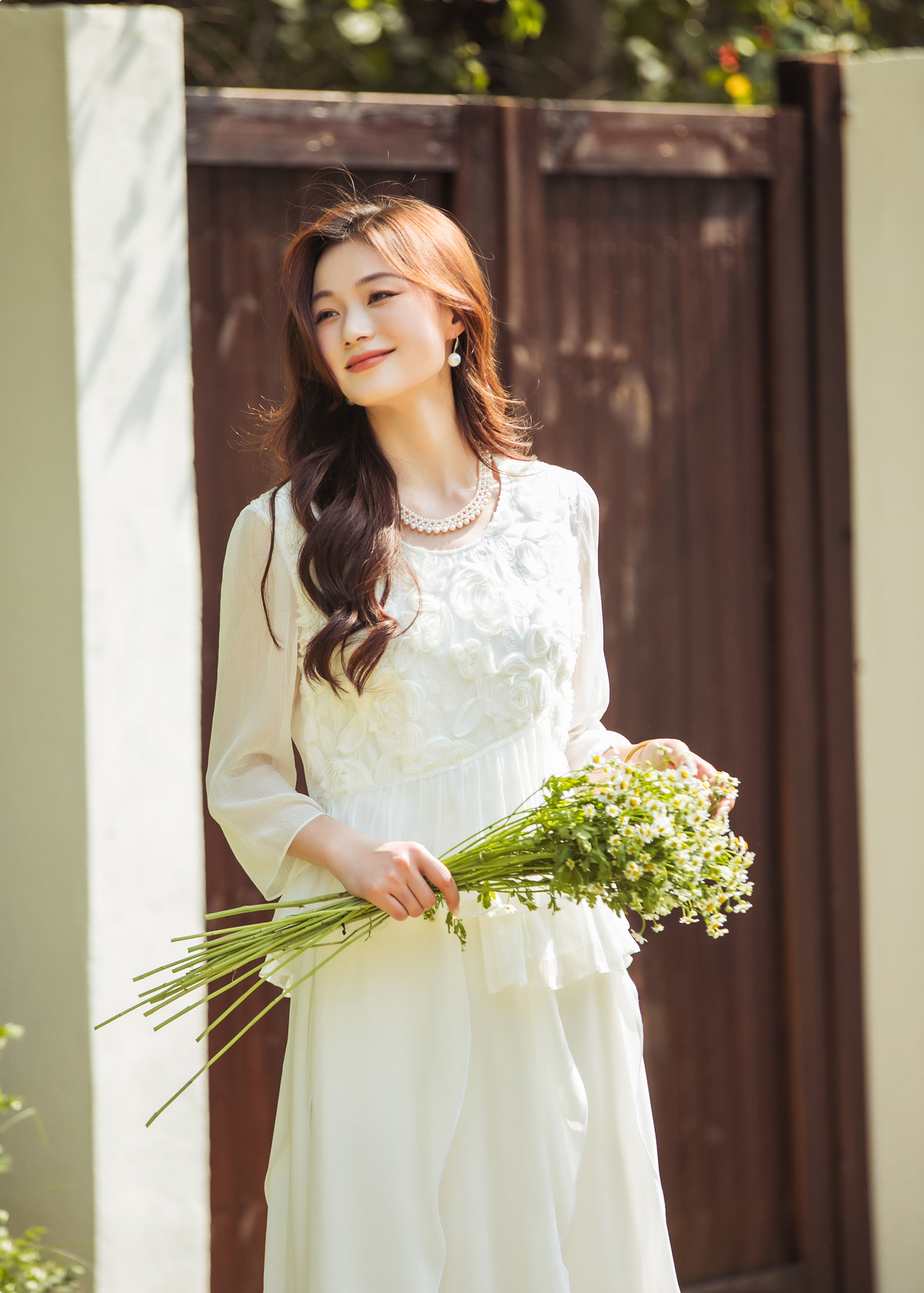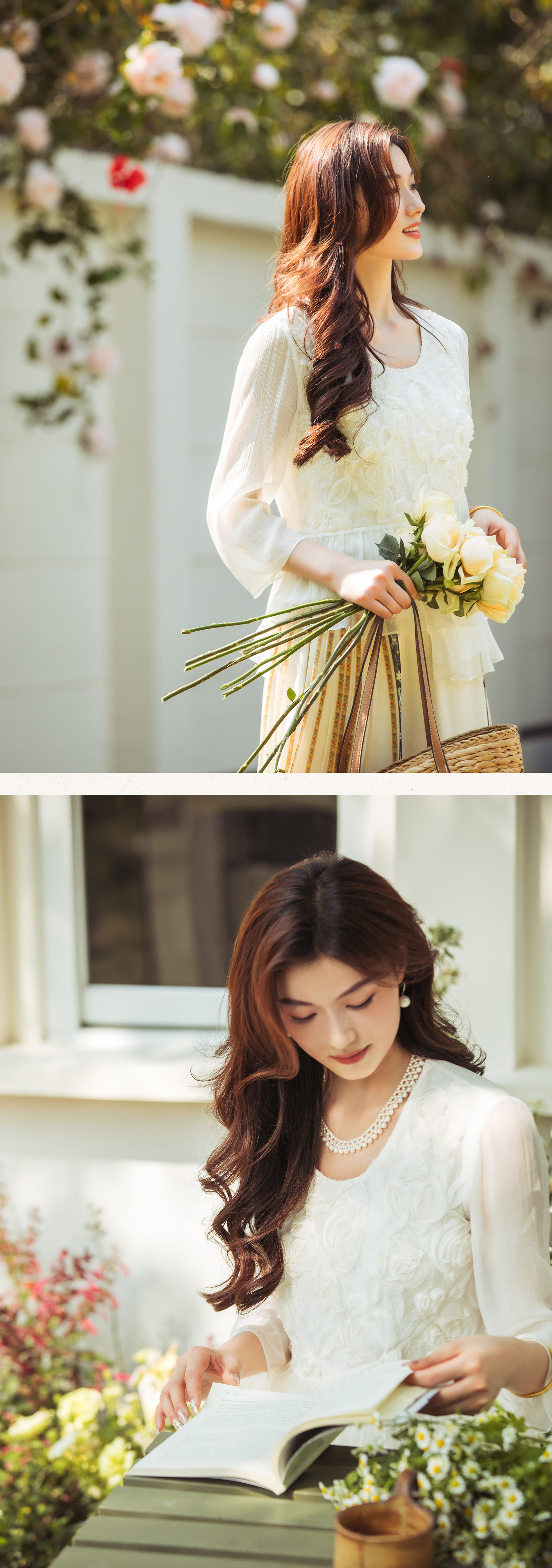 【林栖设计小店】【林栖推荐】(现货)白玫瑰真丝上衣2025春夏新品花仙子长袖上衣女N1952303
