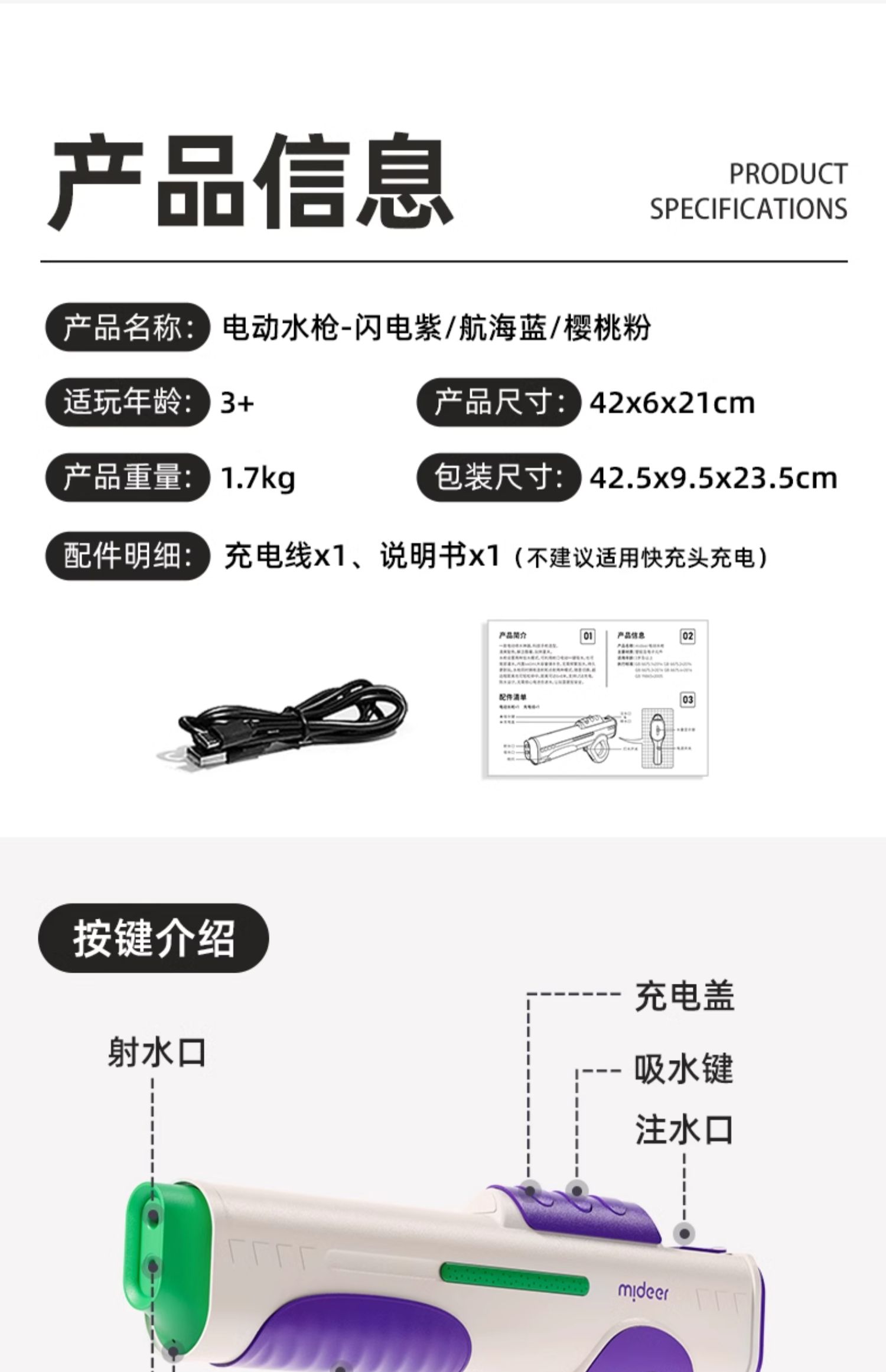 mideer弥鹿电动连发水枪自动吸水高压强力喷水打水仗儿童呲水玩具