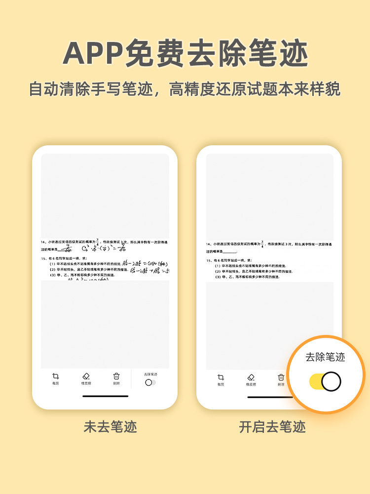 扫描去笔迹,还原清晰原题(需链接wifi网络)
