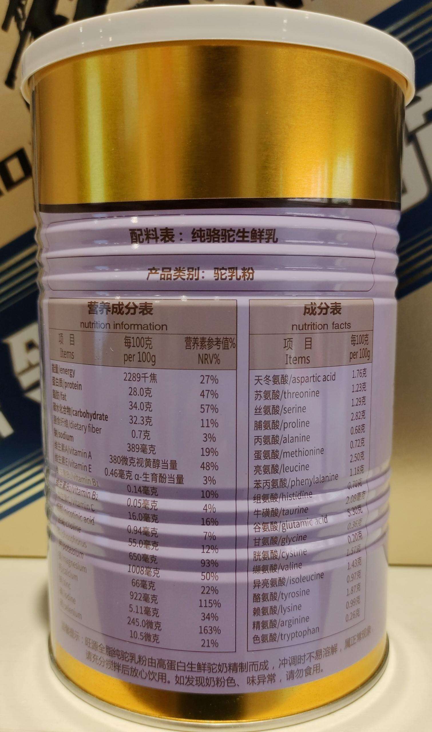 【产品名称】旺源全脂纯驼乳粉