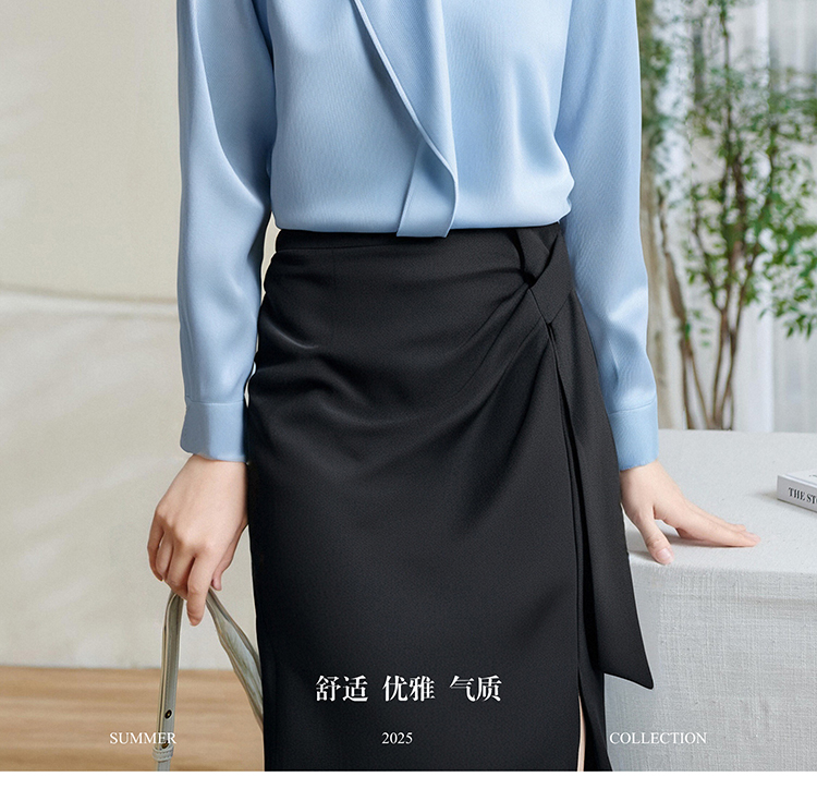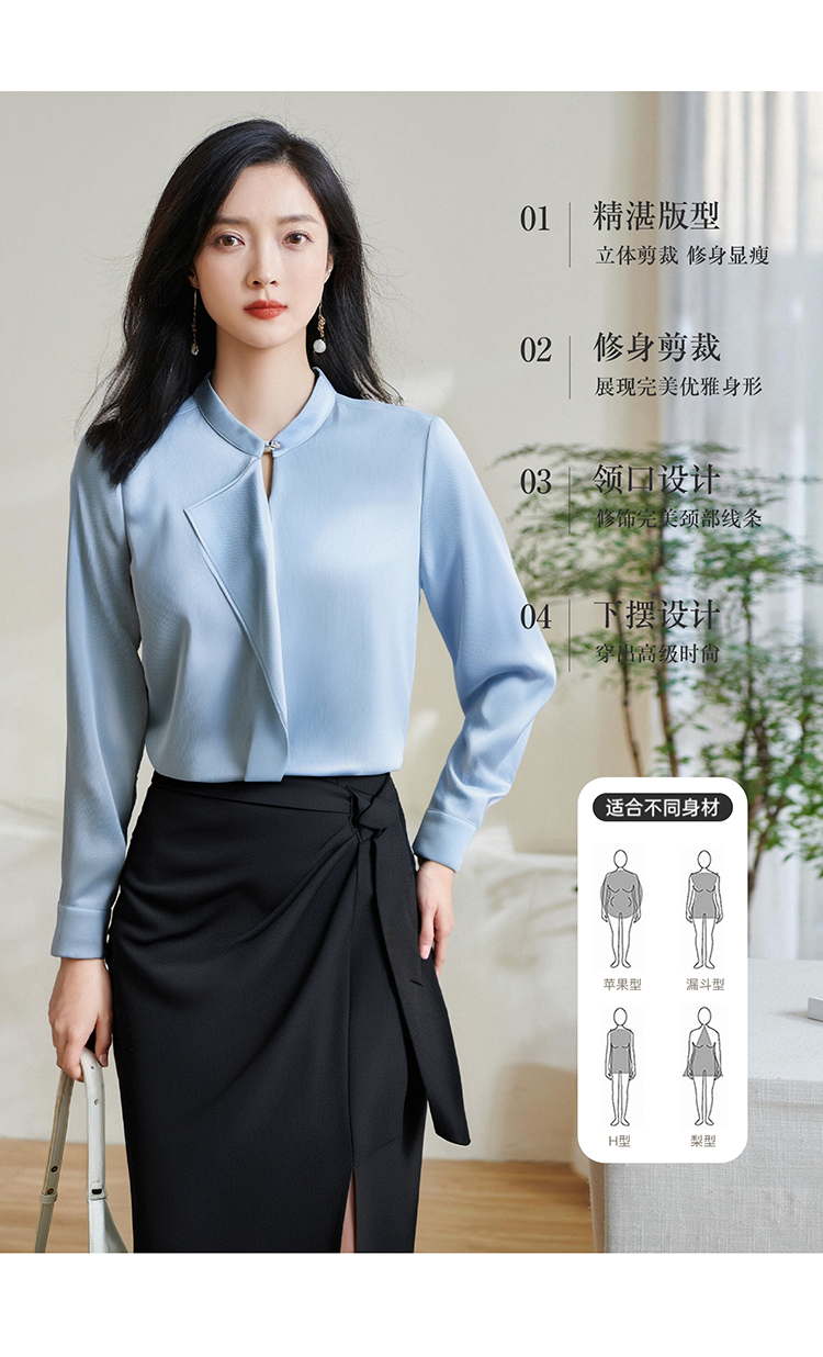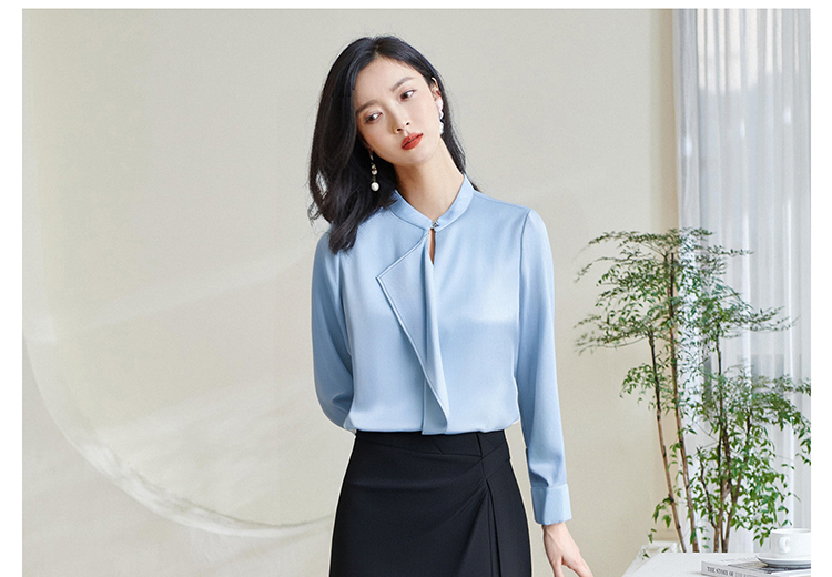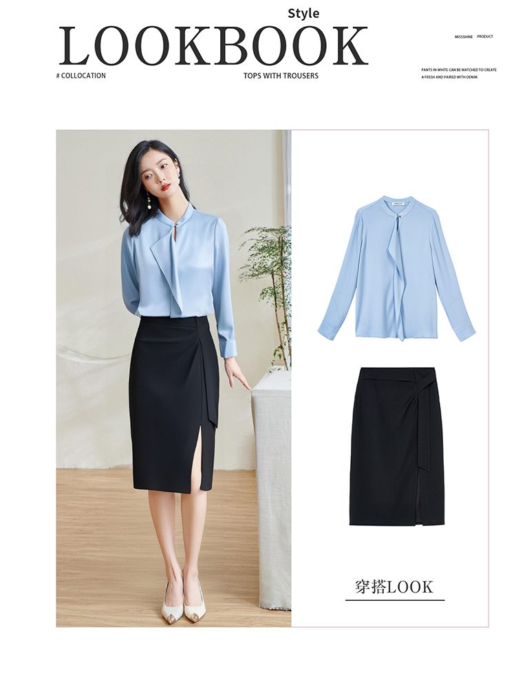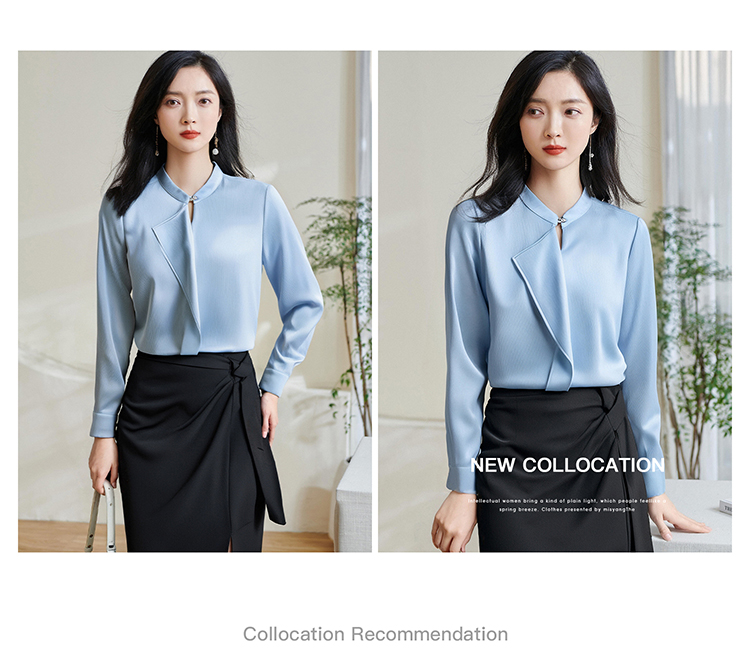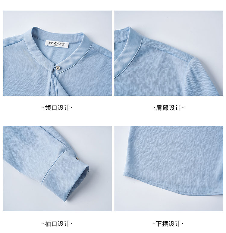 「冰蓝绸语」衬衫 细腻肌理感 米思阳2026春季新款时尚通勤衬衫小众设计感温柔气质百搭小衫4478