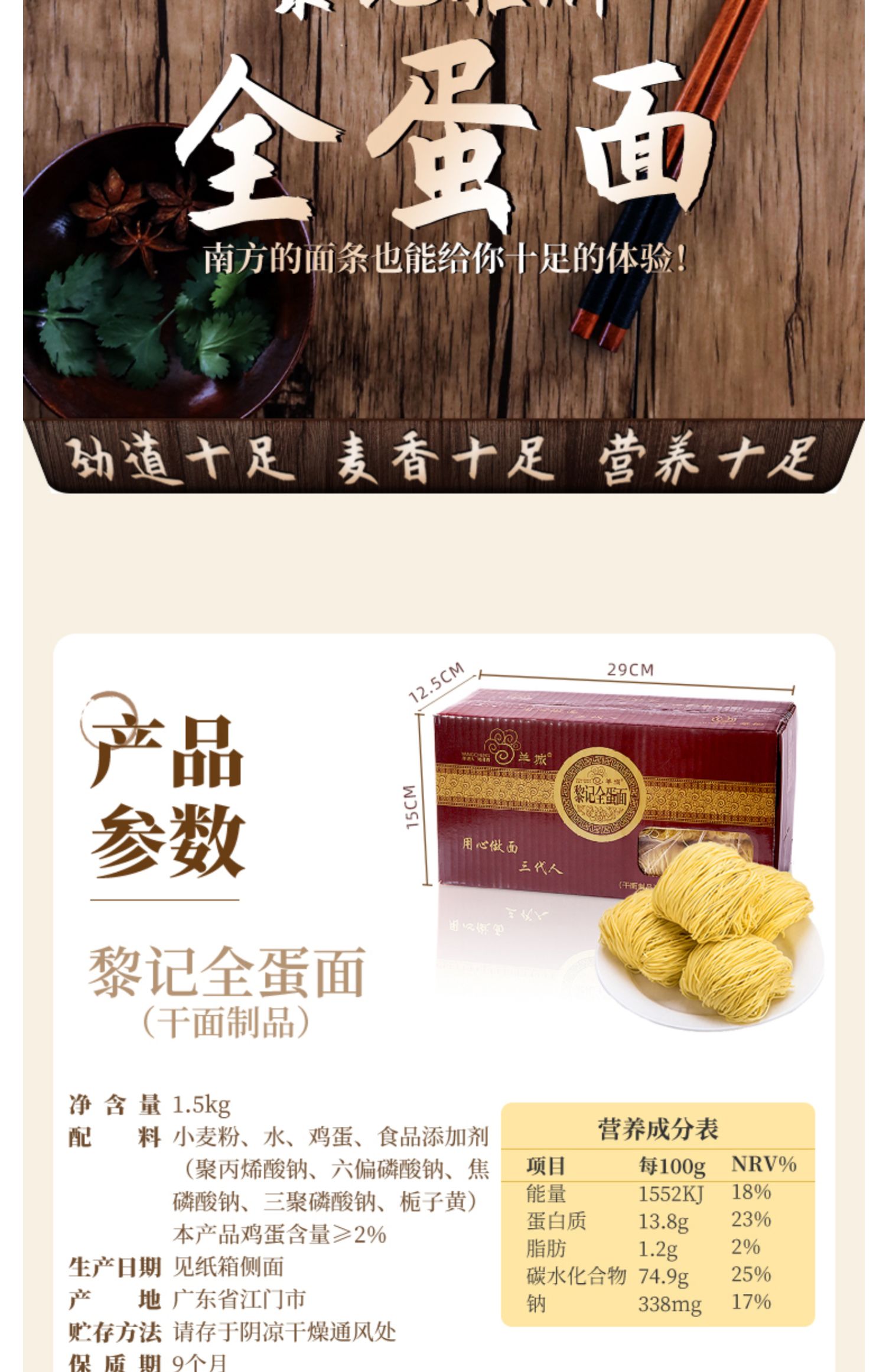 黎记 广式 全蛋面 23-25团 1.5kg/整箱
