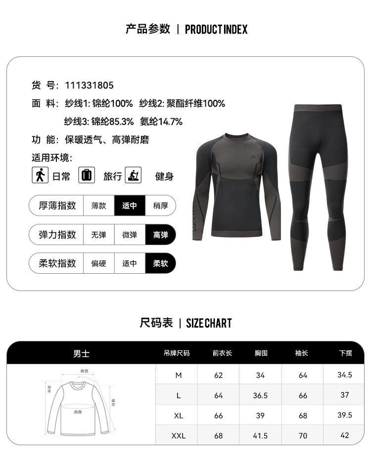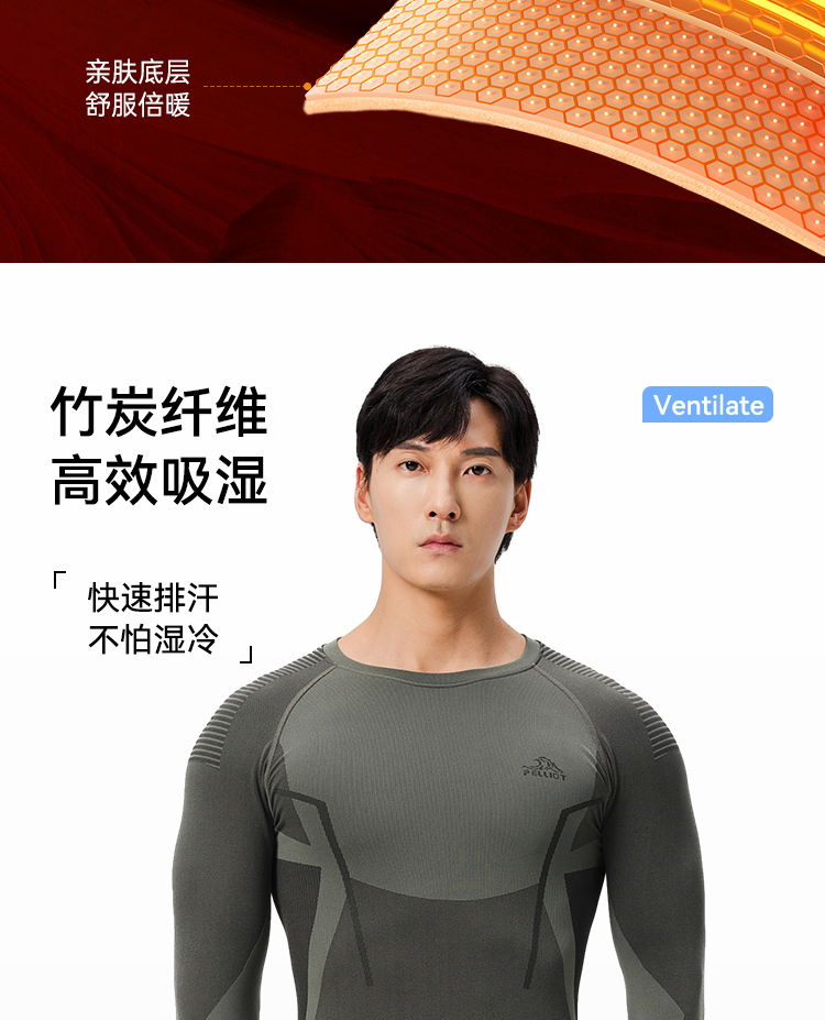 伯希和保暖内衣男款户外滑雪排汗快干秋衣秋裤套装加厚运动肌底衣