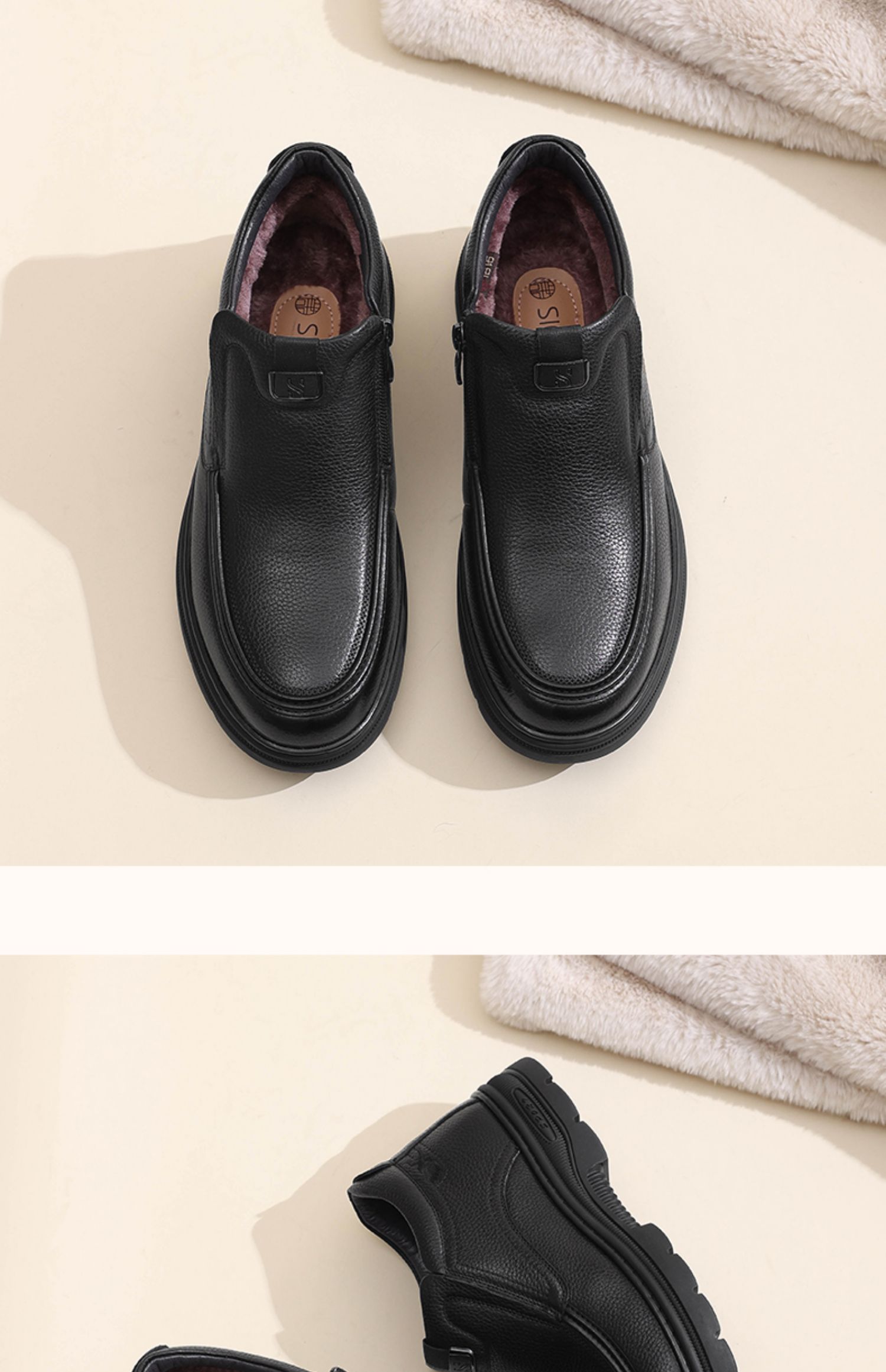 信诺真皮高帮棉鞋男款加绒加厚爸爸鞋2024冬季新款中老年休闲皮鞋N24M127-100