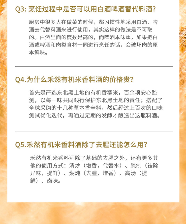 丨有机丨禾然有机米香料酒 一勺妙增香,增香提鲜,去腥解膻;可用于烹饪海鲜,肉类,馅料,蔬菜或腌制小菜