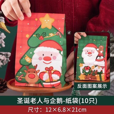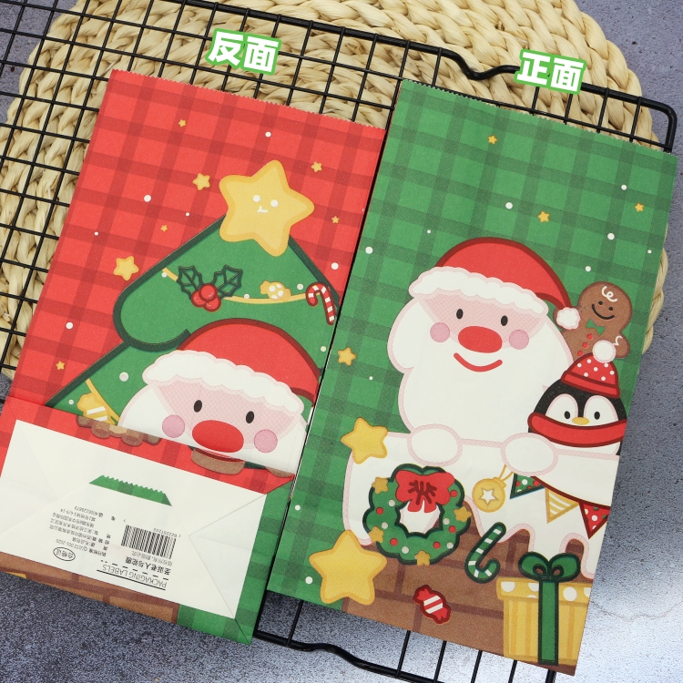 圣诞节纸袋 平口 圣诞老人企鹅姜饼人小鹿包装袋 糖果饼干糯米船袋