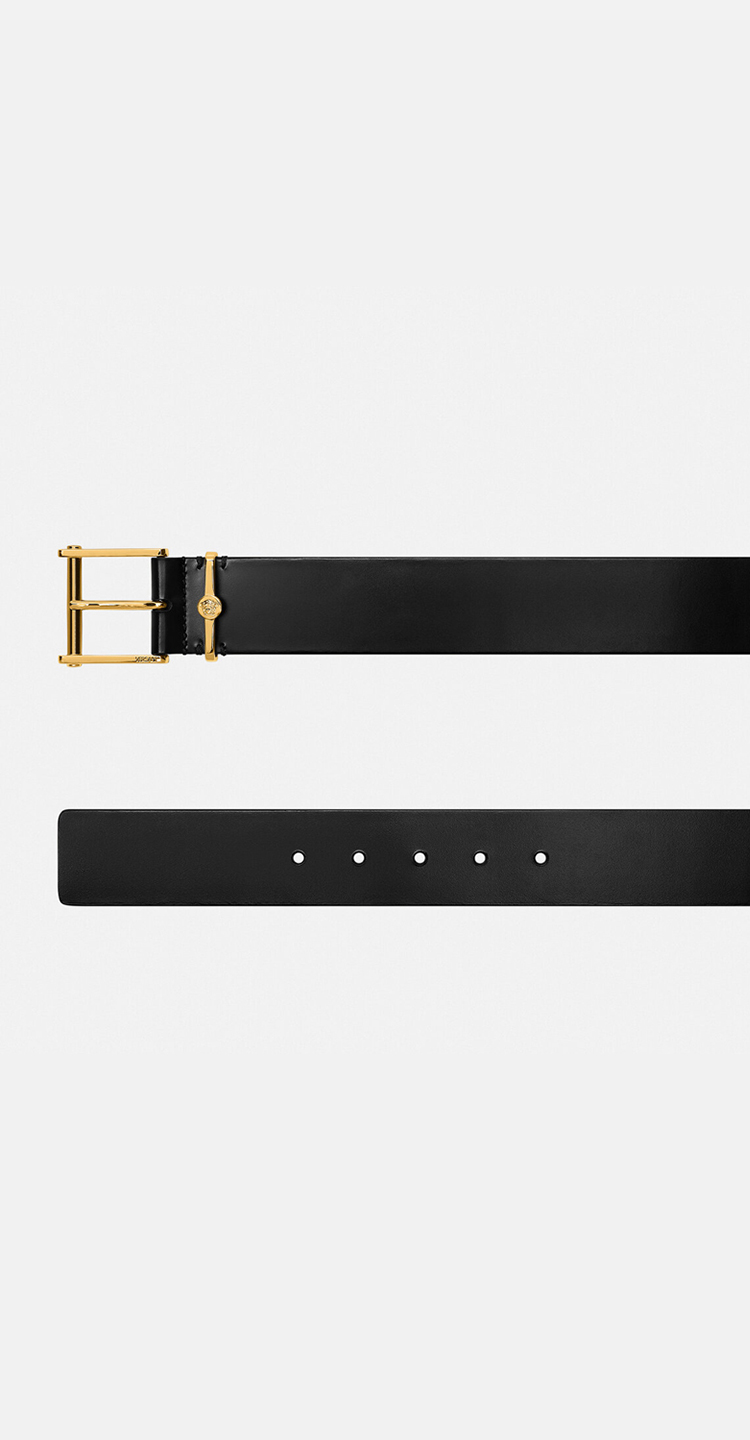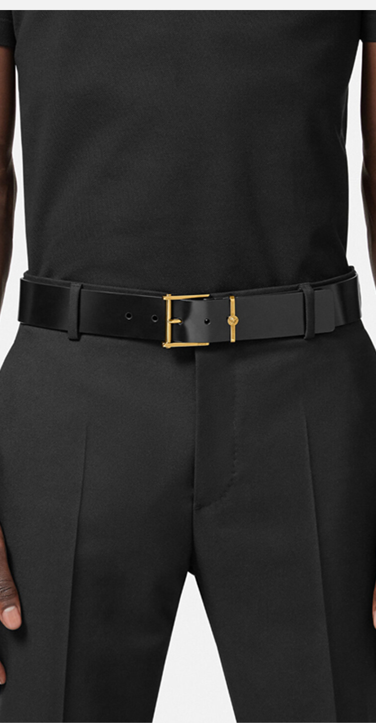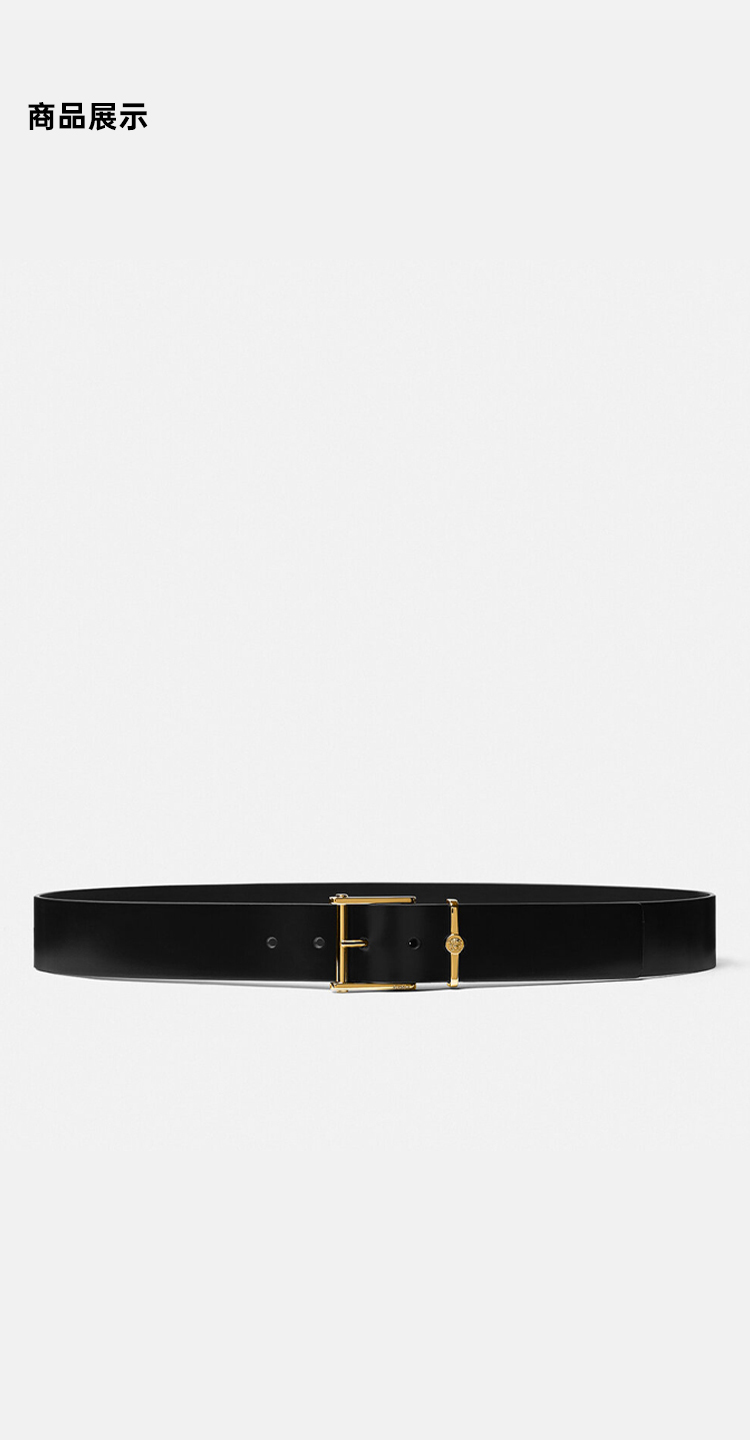 VERSACE 范思哲 男士古典柱子扣环皮革腰带 黑色 1011124 1A08779 1B00V