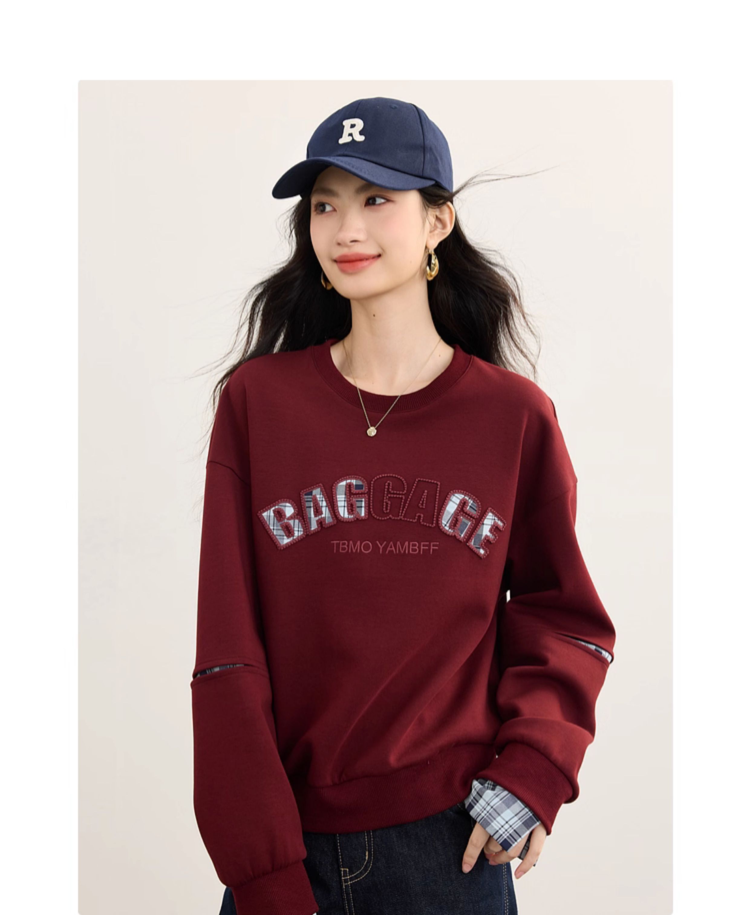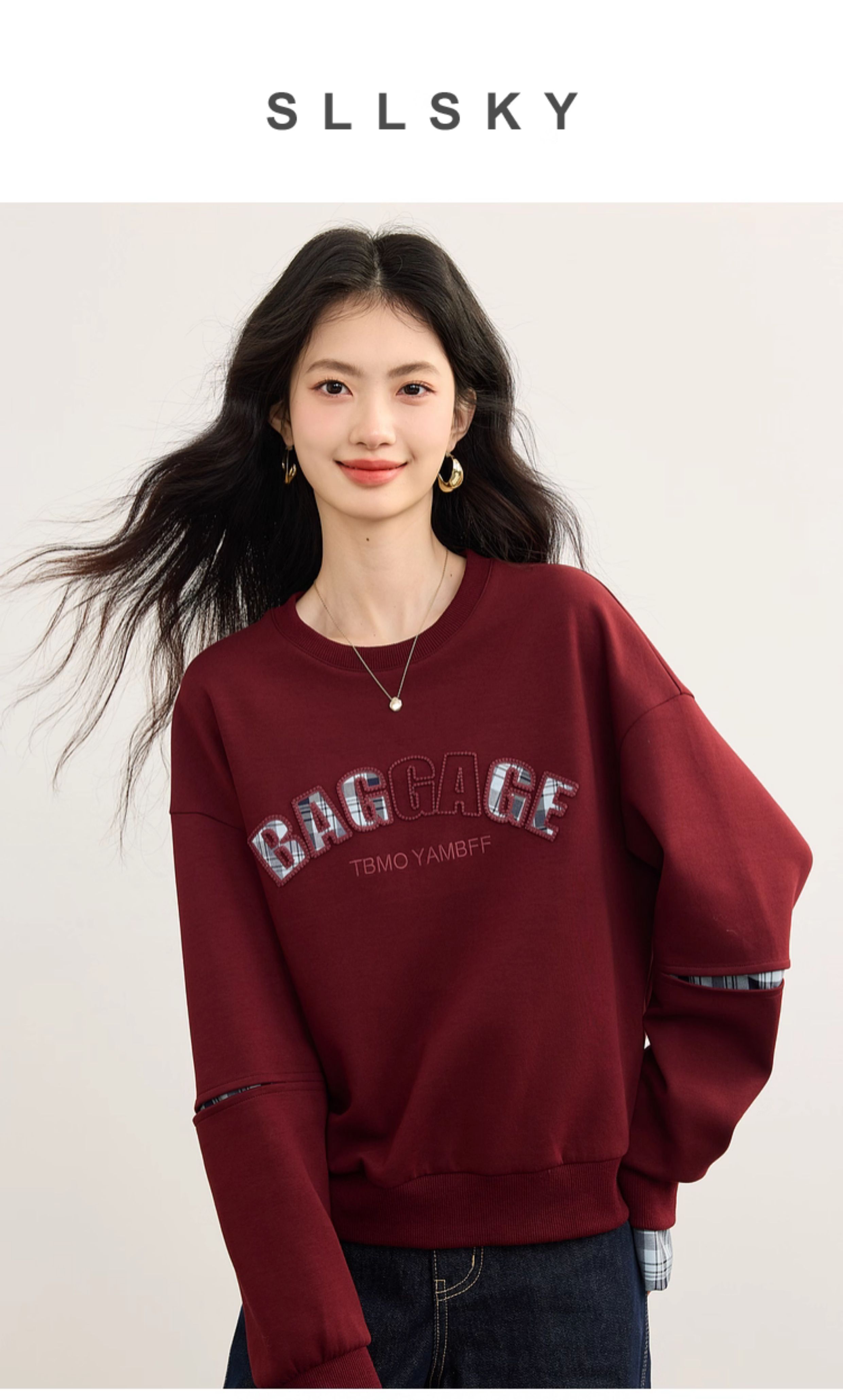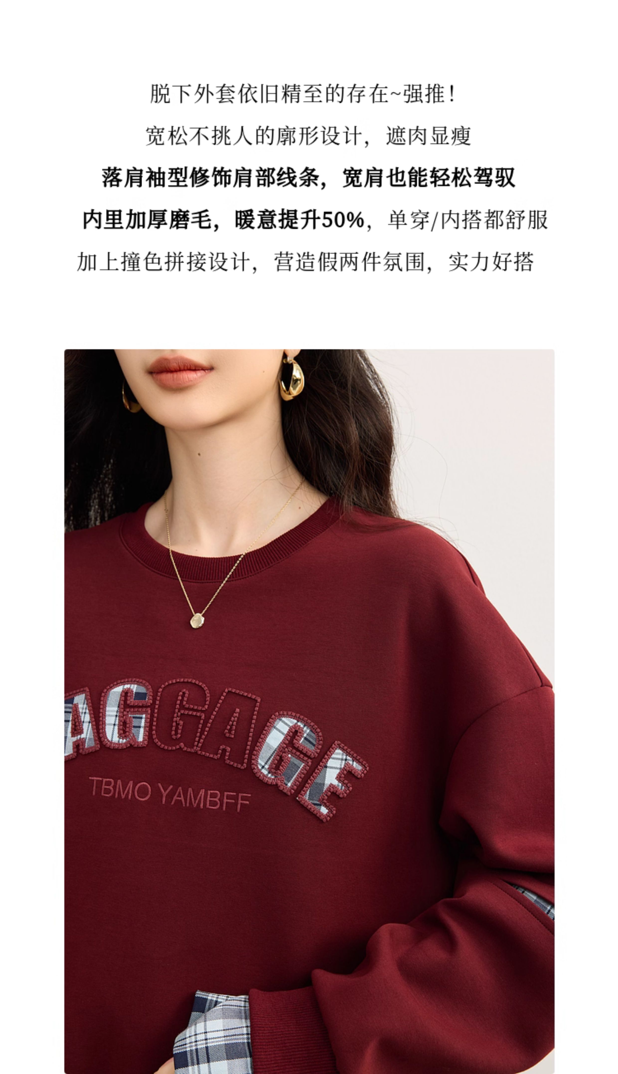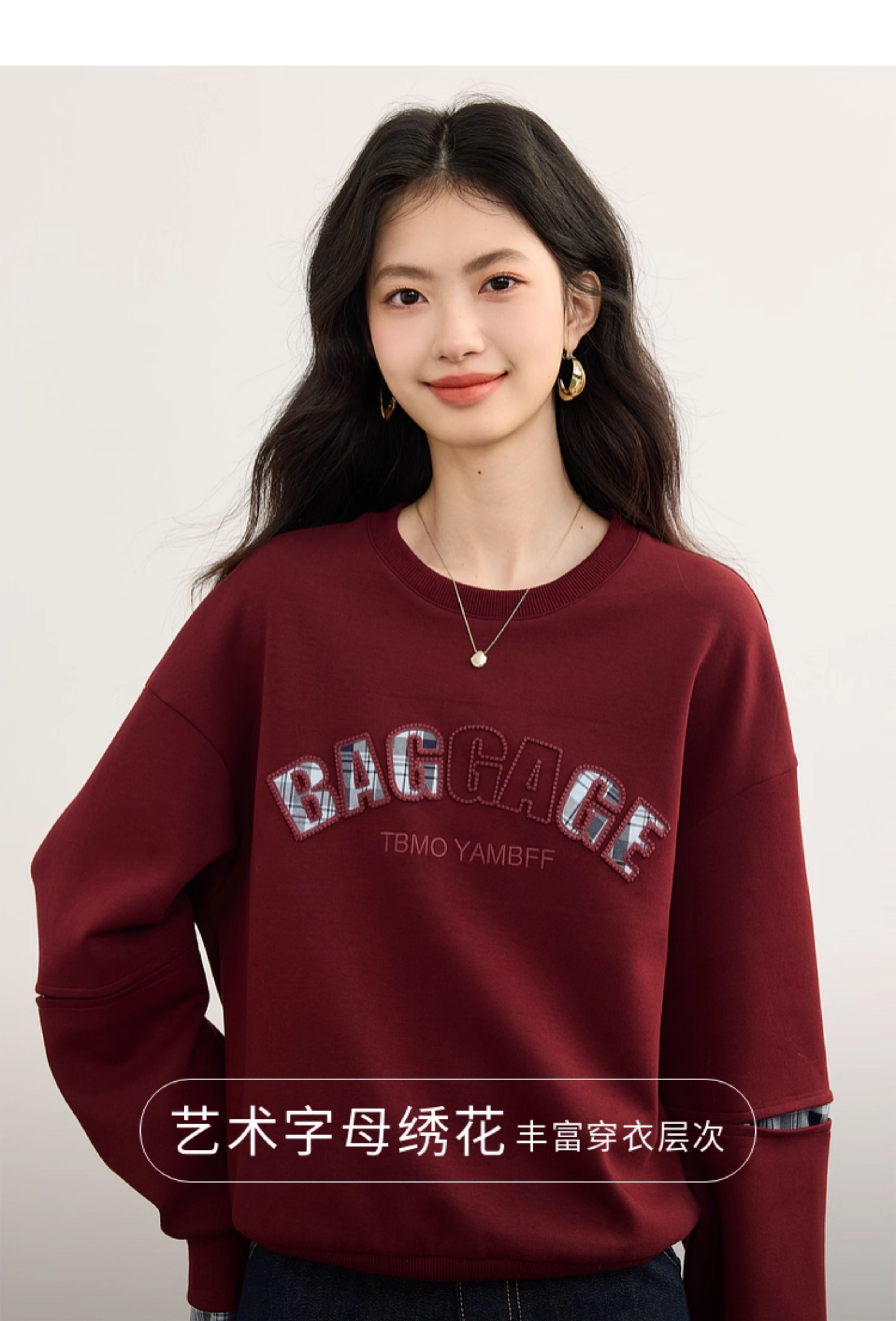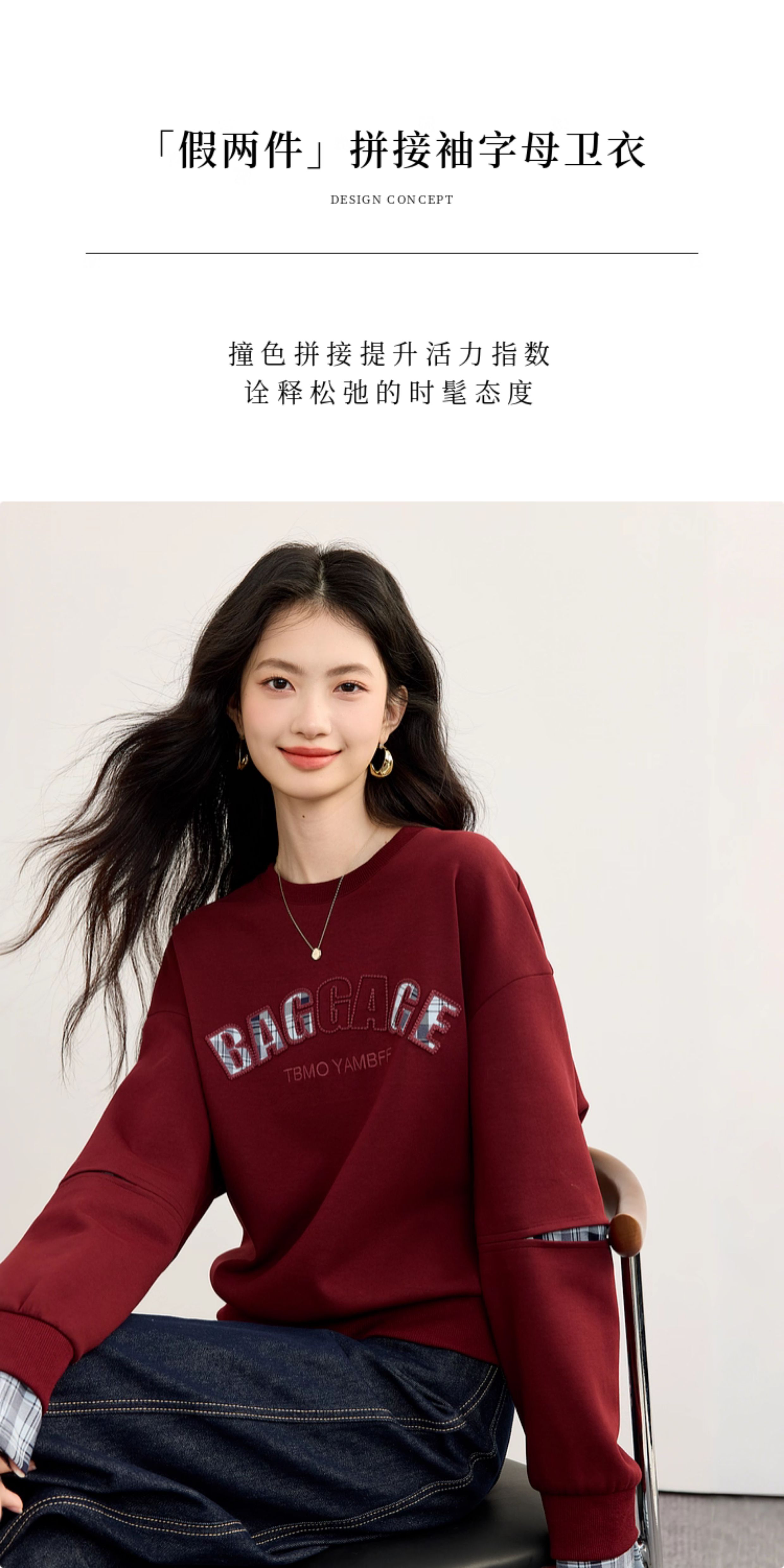 【周末秒杀】熙世界安可雷风撞色拼接长袖字母卫衣女秋季新款宽松休闲圆领上衣