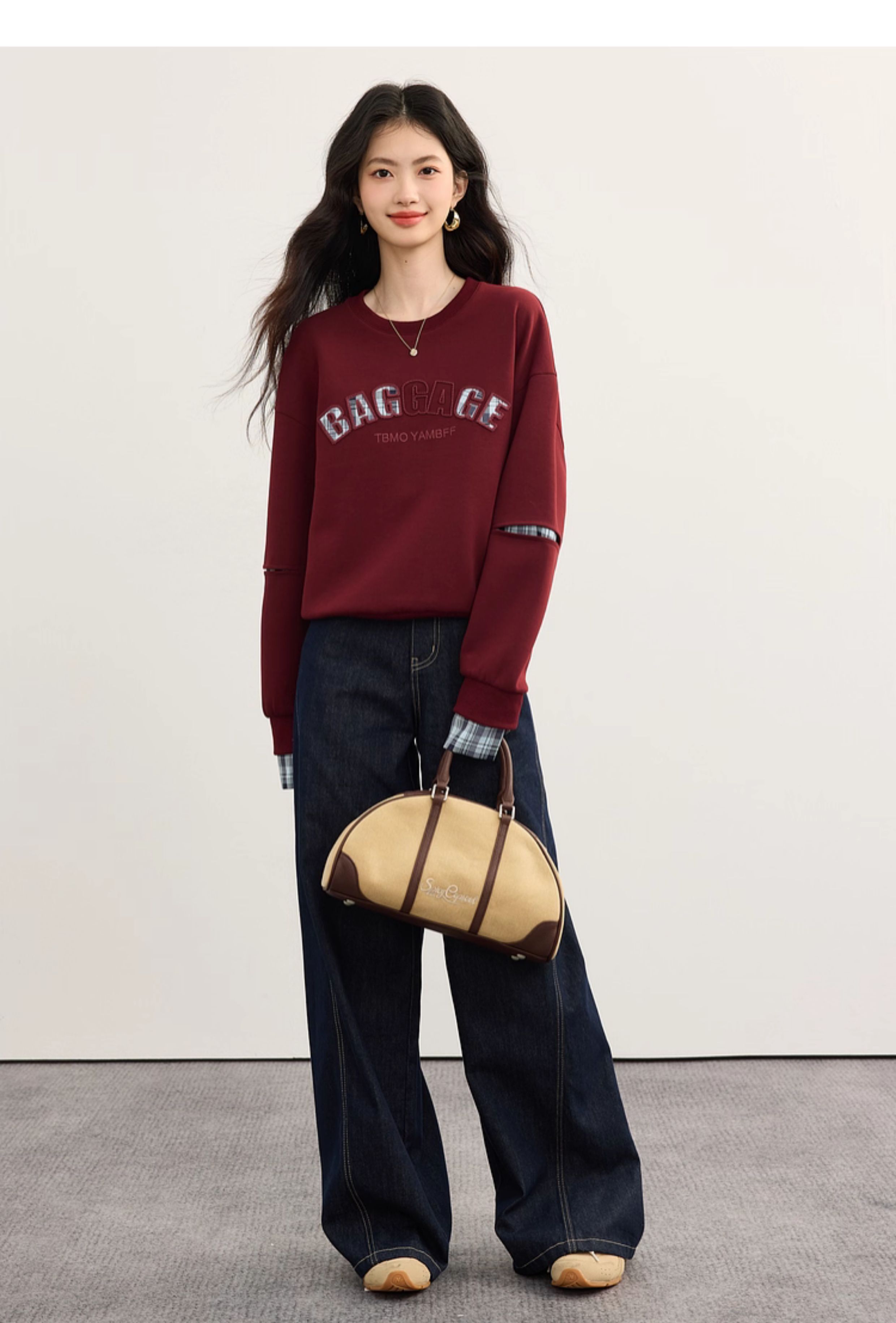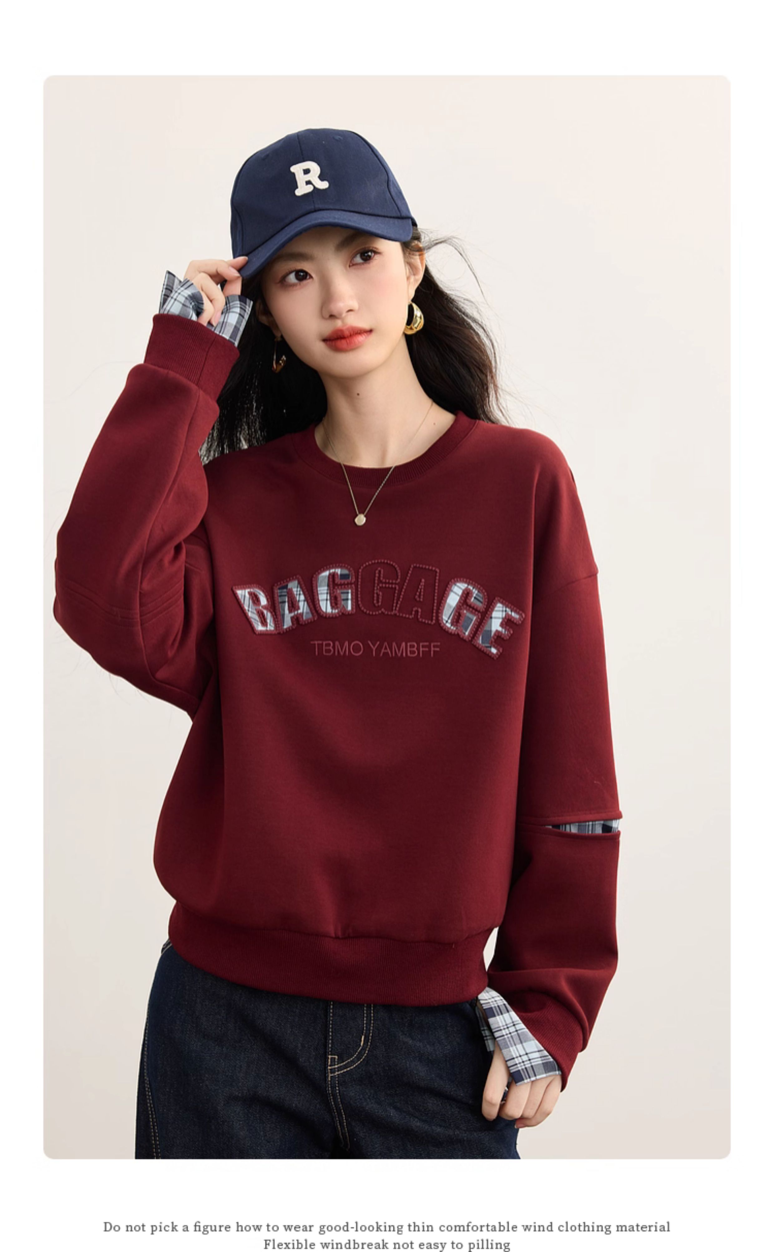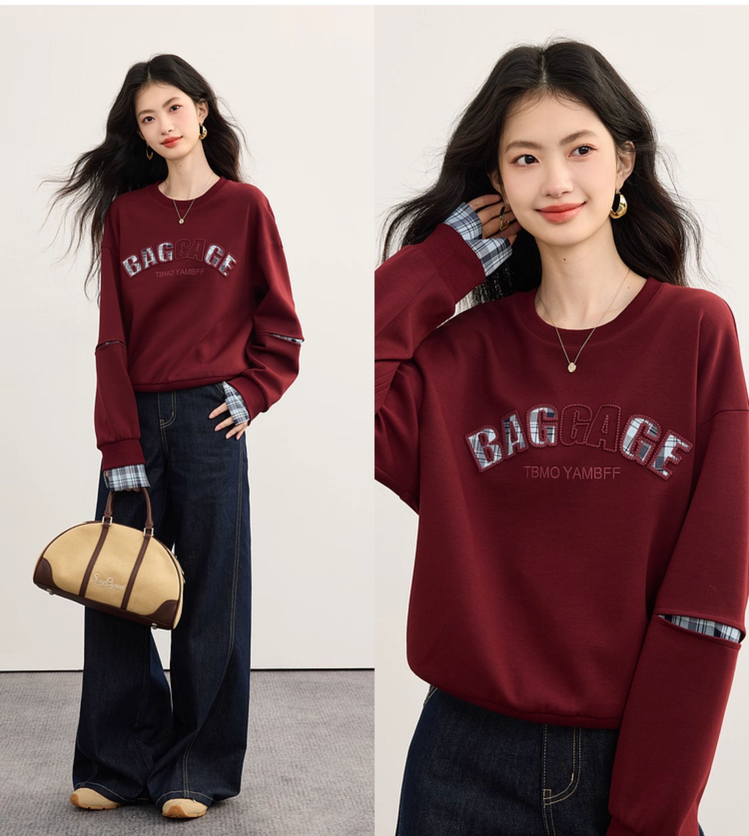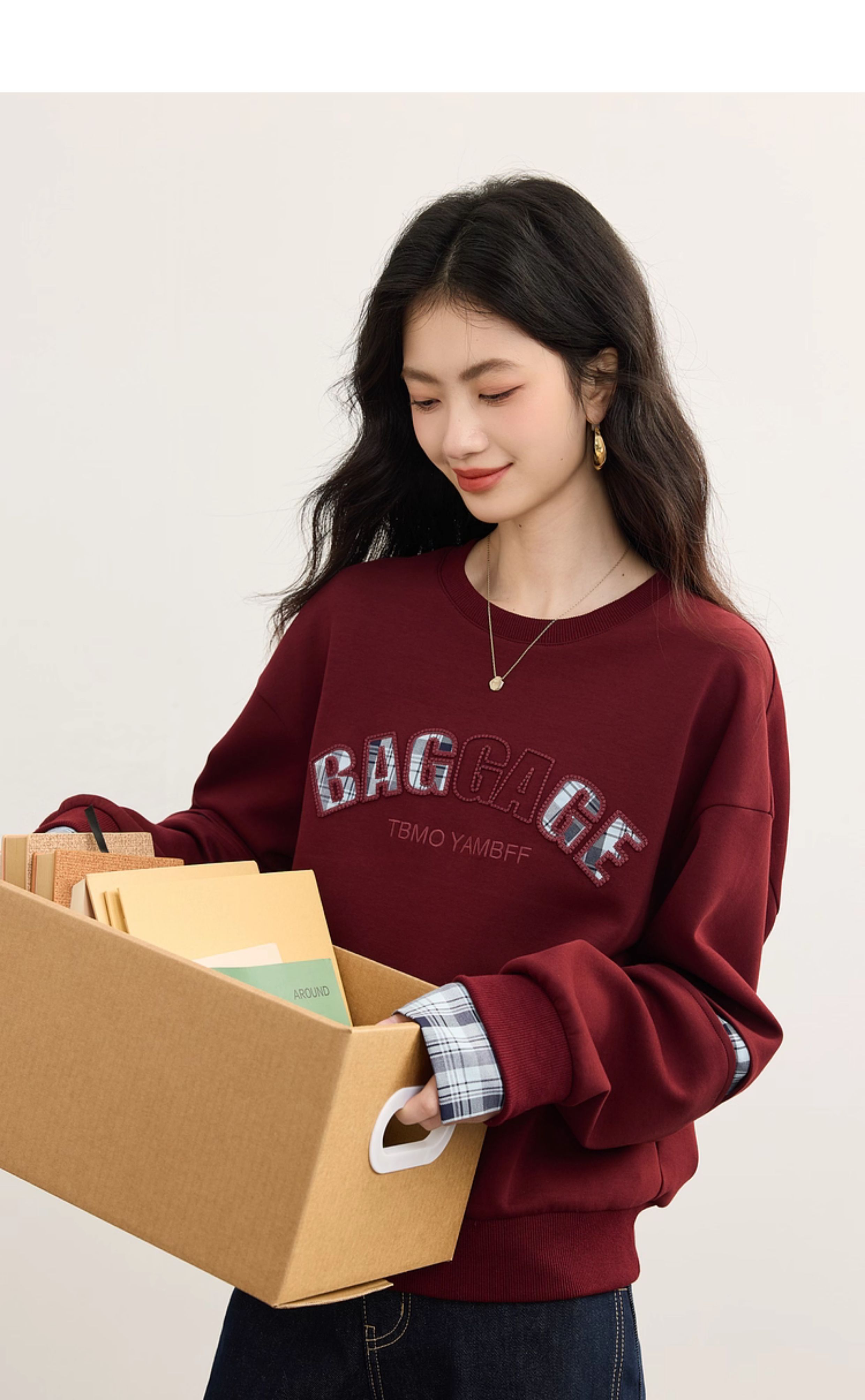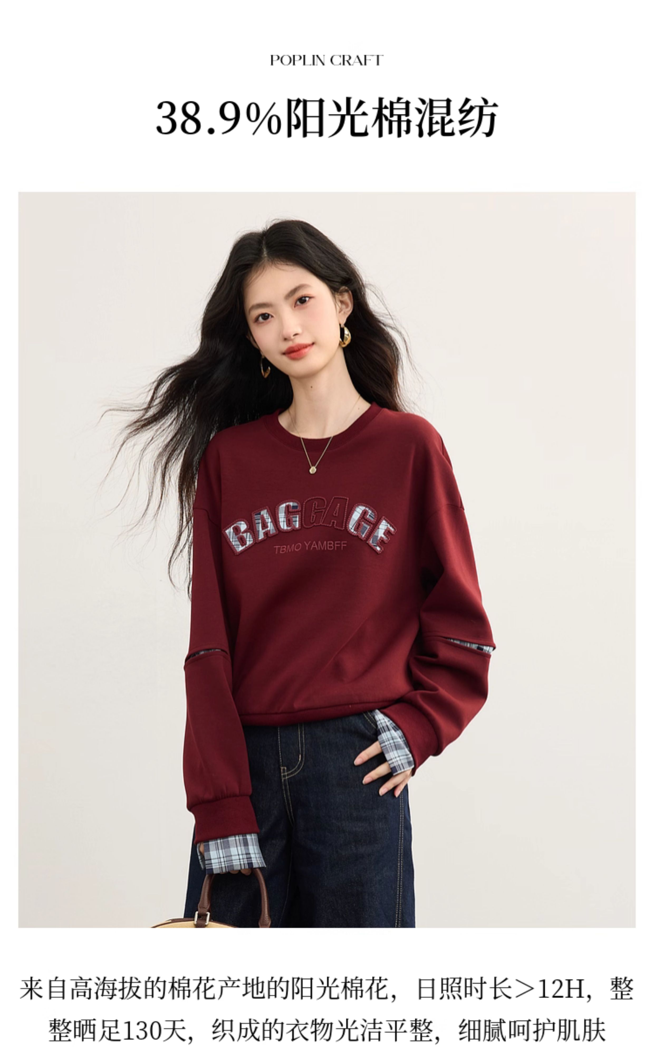 【周末秒杀】熙世界安可雷风撞色拼接长袖字母卫衣女秋季新款宽松休闲圆领上衣