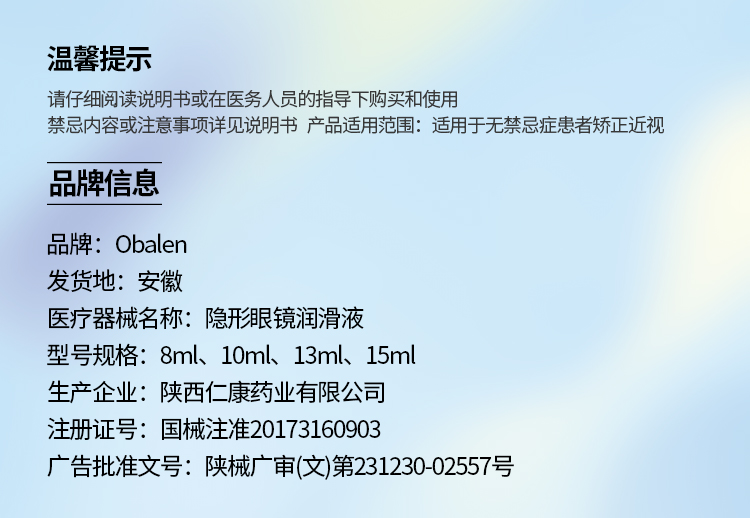 obalen隐形眼镜润眼液10ML统一价 15一瓶包邮 偏远补邮费