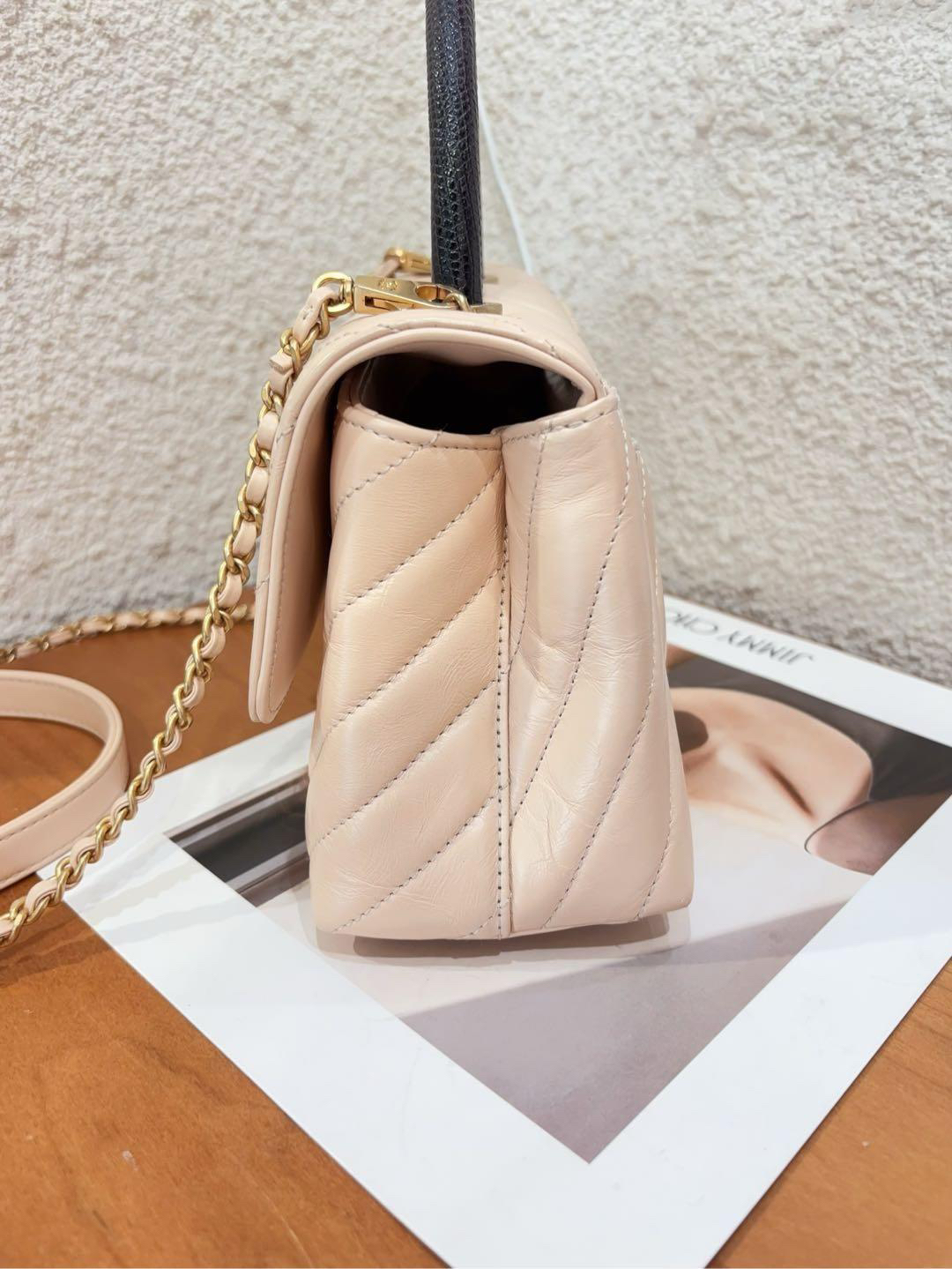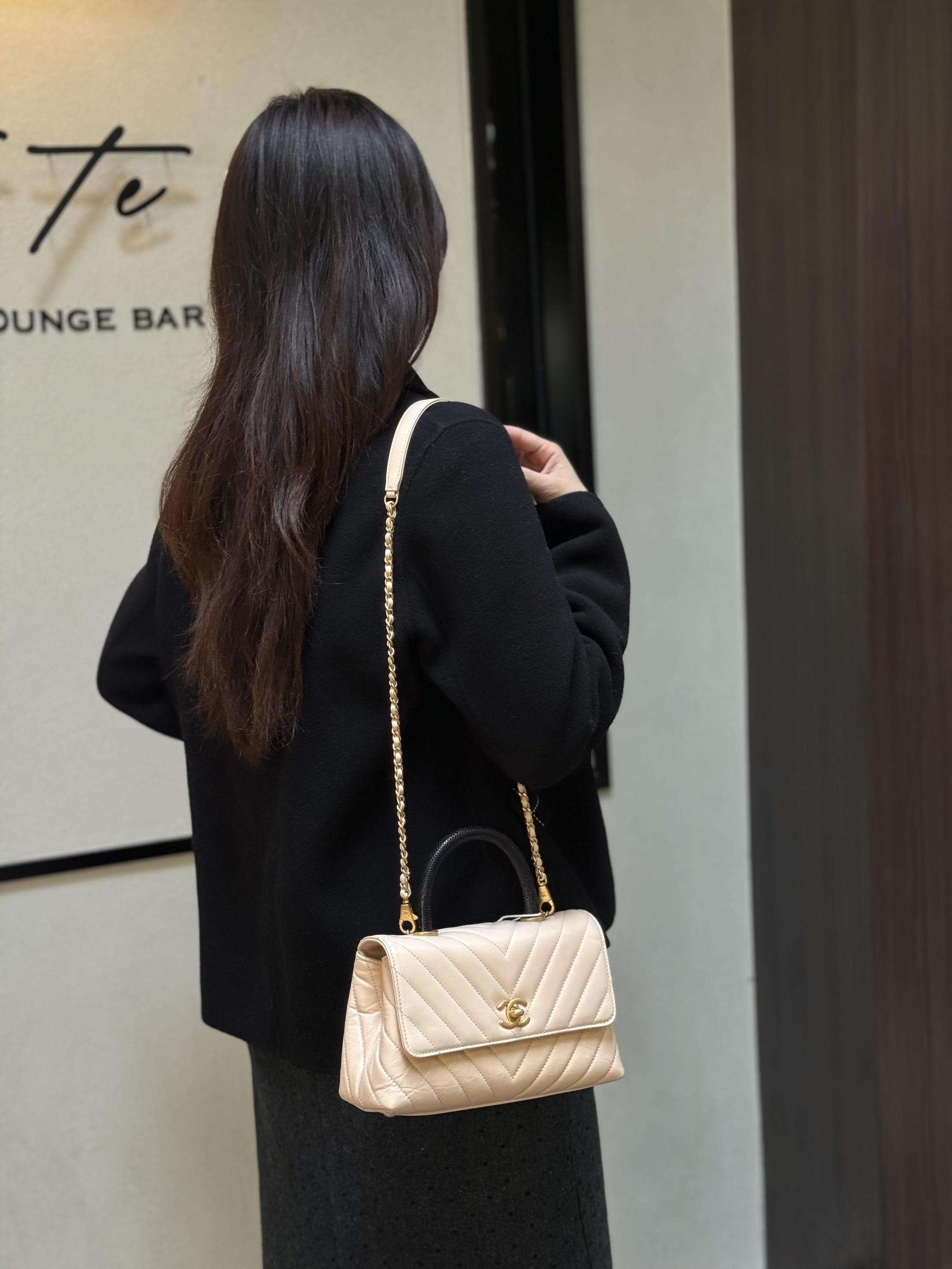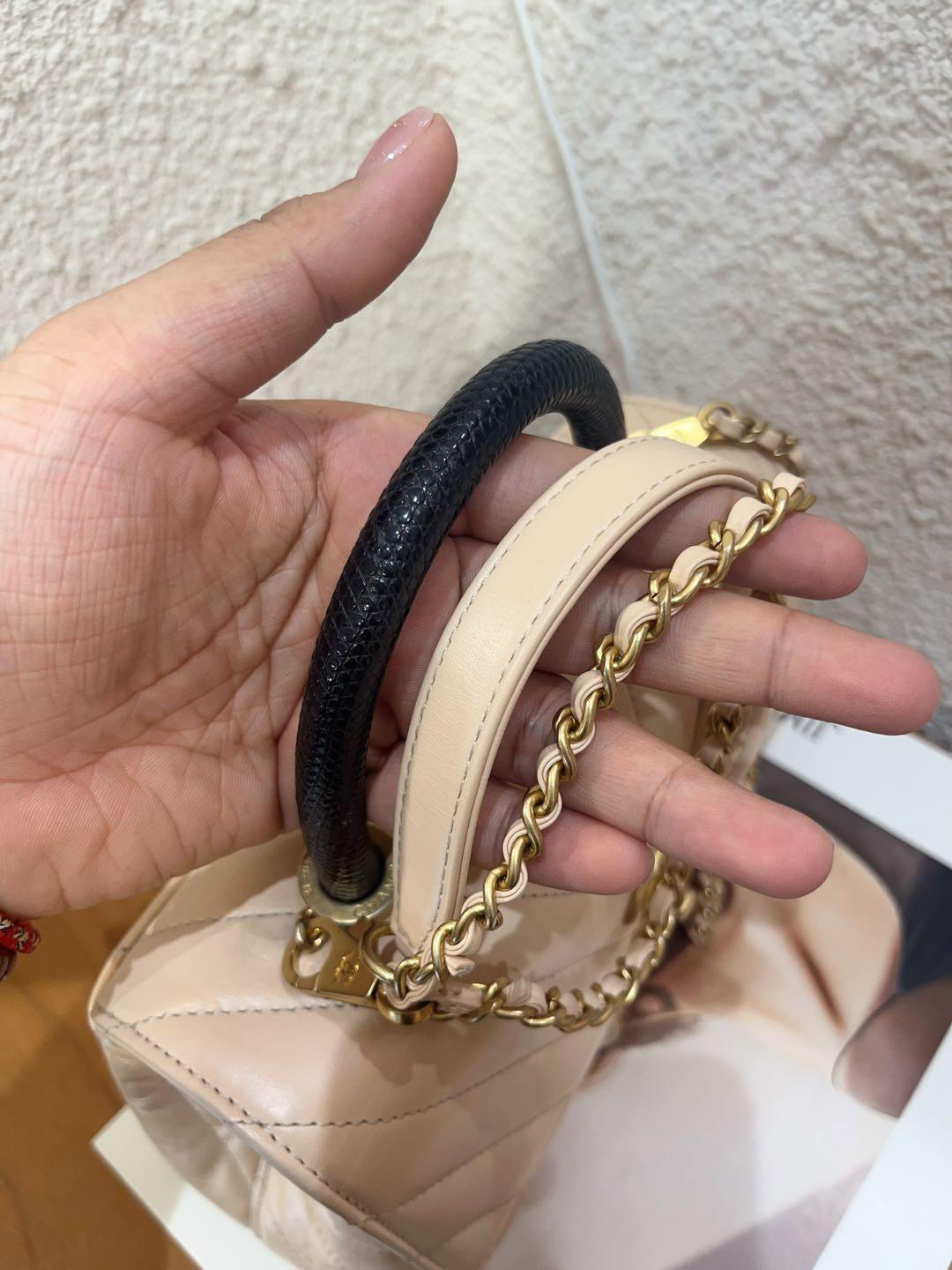 【商品详情】正品二手 Chanel cocohandle 蜥蜴皮手柄 油蜡牛皮 奶茶色 小号 斜挎包🦚 95新 24×13 镭射25开 配件:卡、肩带、防尘袋。包身正常使用感 底钉轻微磨损 限量款手柄 买到即赚到