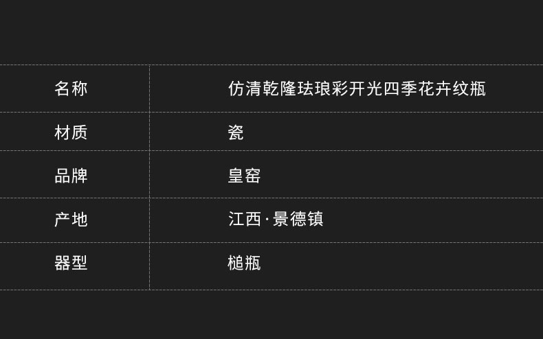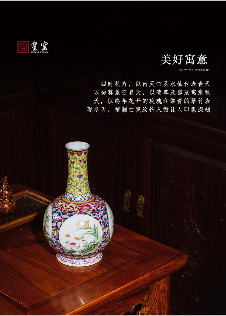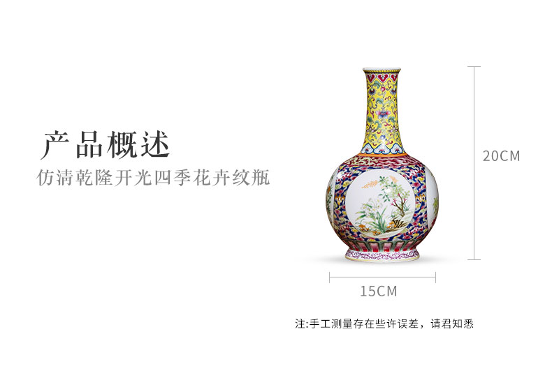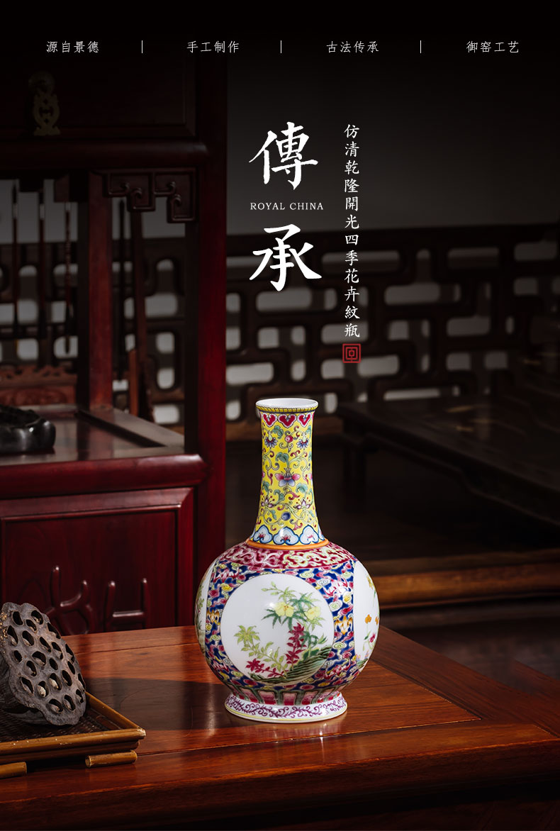 【皇窑】清乾隆珐琅彩四季花卉纹瓶