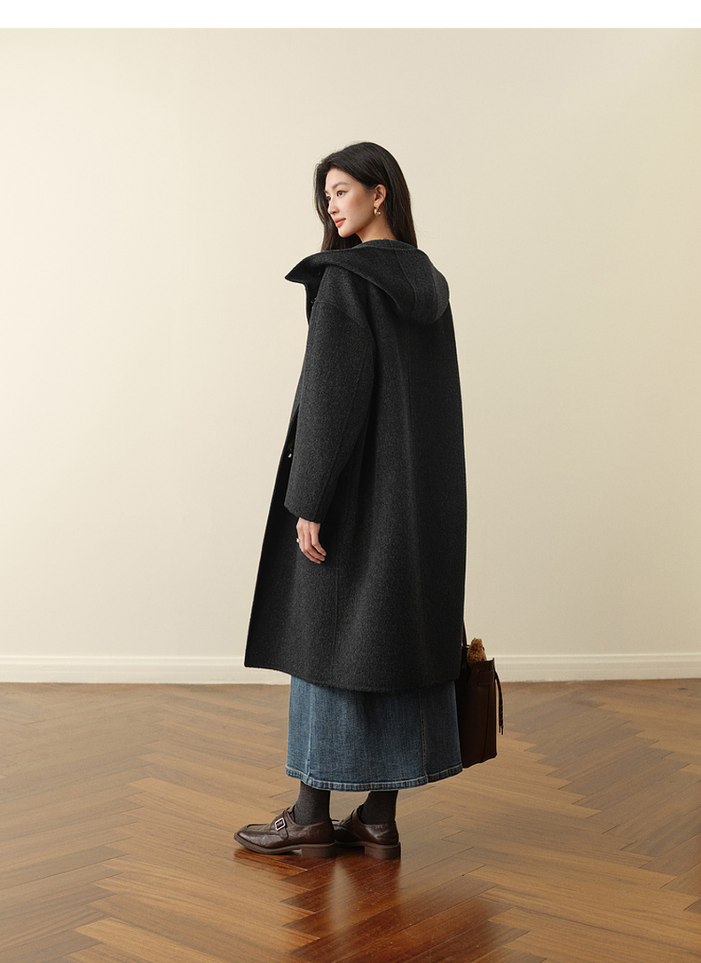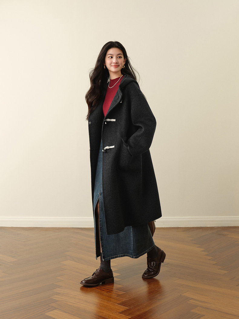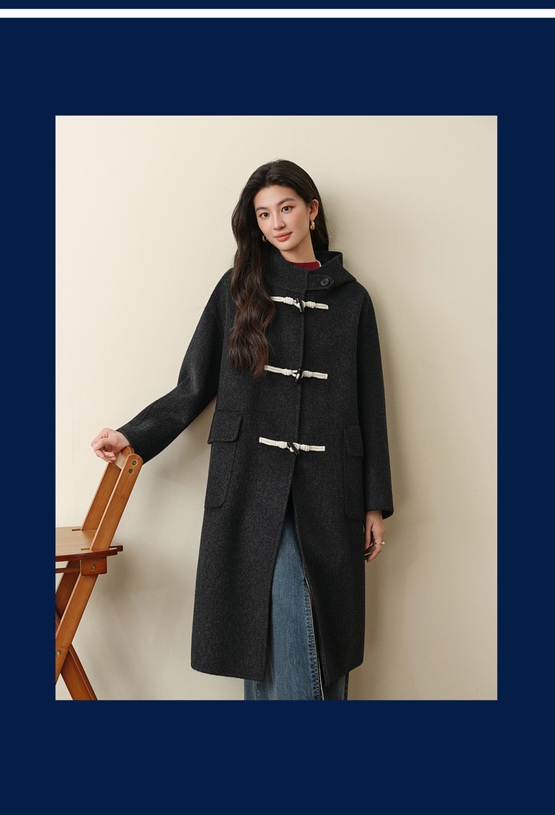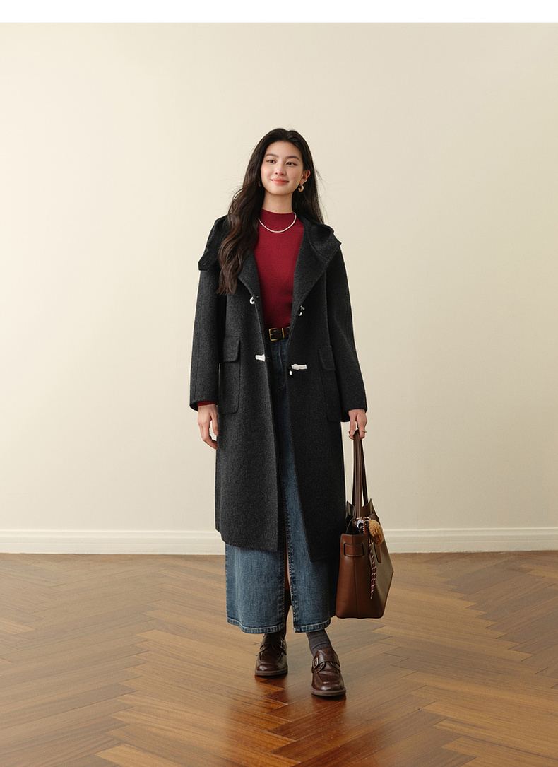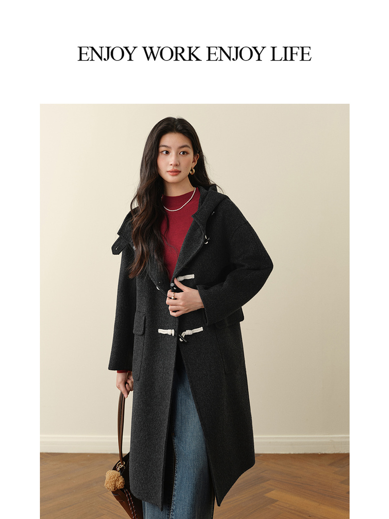 【严选】诗凡黎含山羊绒学院风长款大衣2025秋冬新款气质牛角扣双面呢外套7GA170771