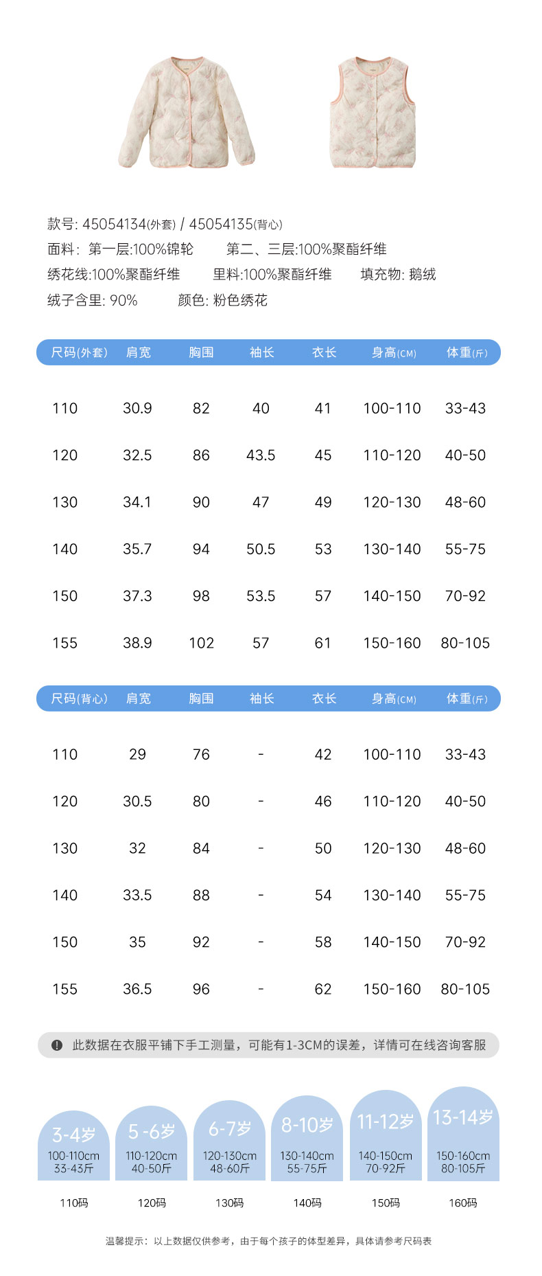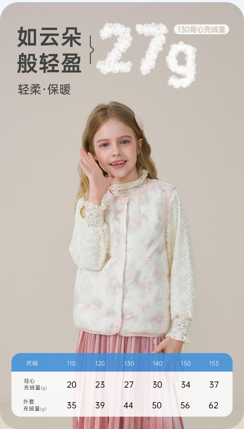 【鹅绒】儿童羽绒服2025秋冬新款女童背心轻薄新中式国风绣花马甲