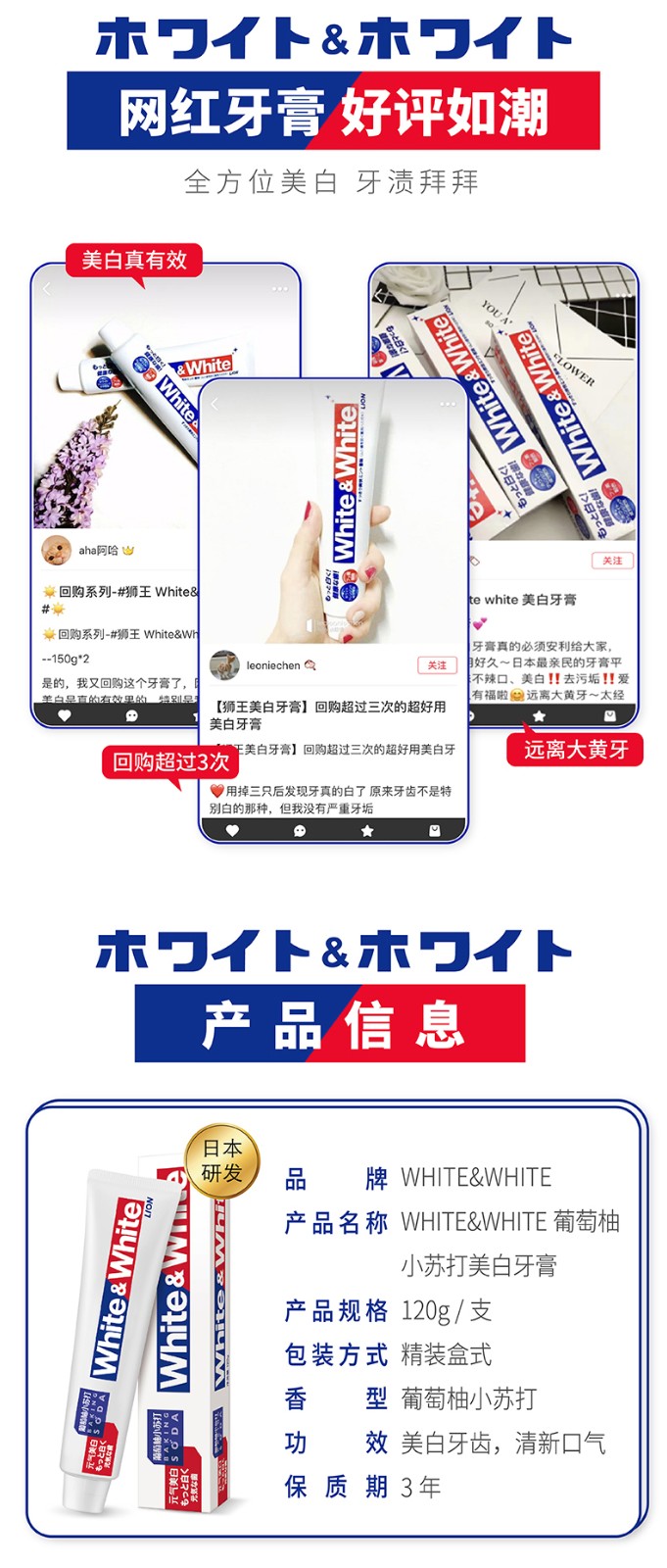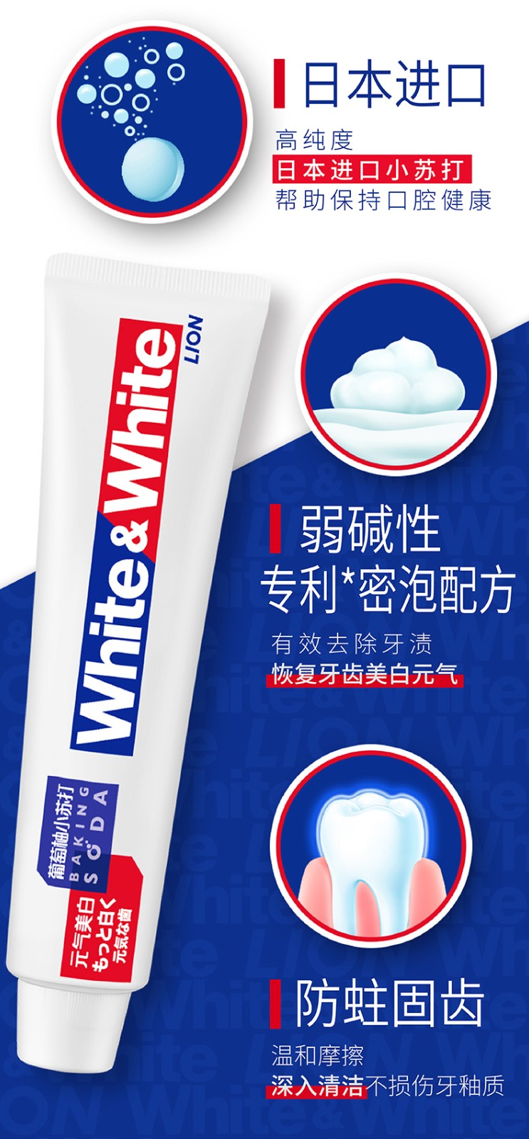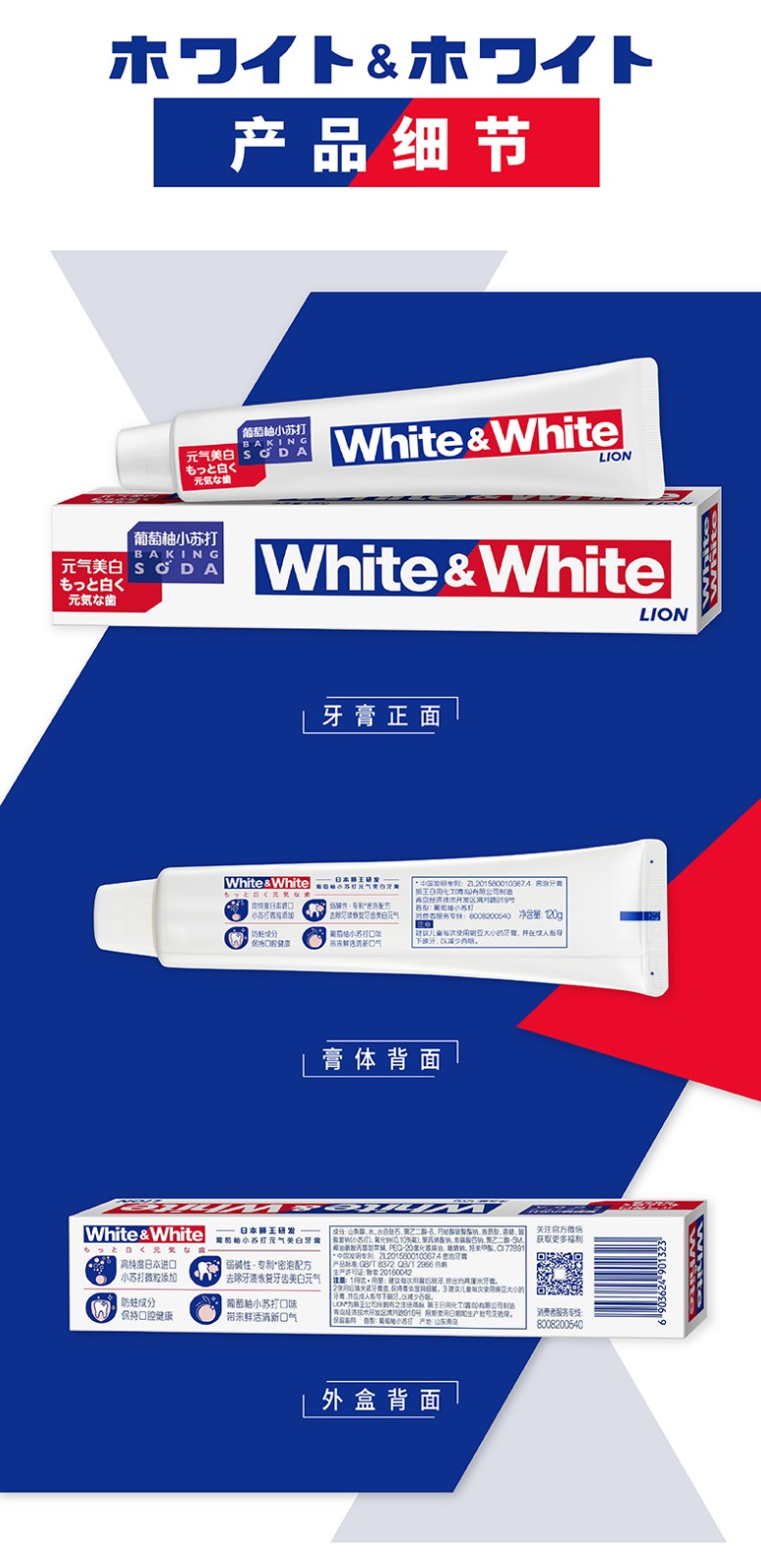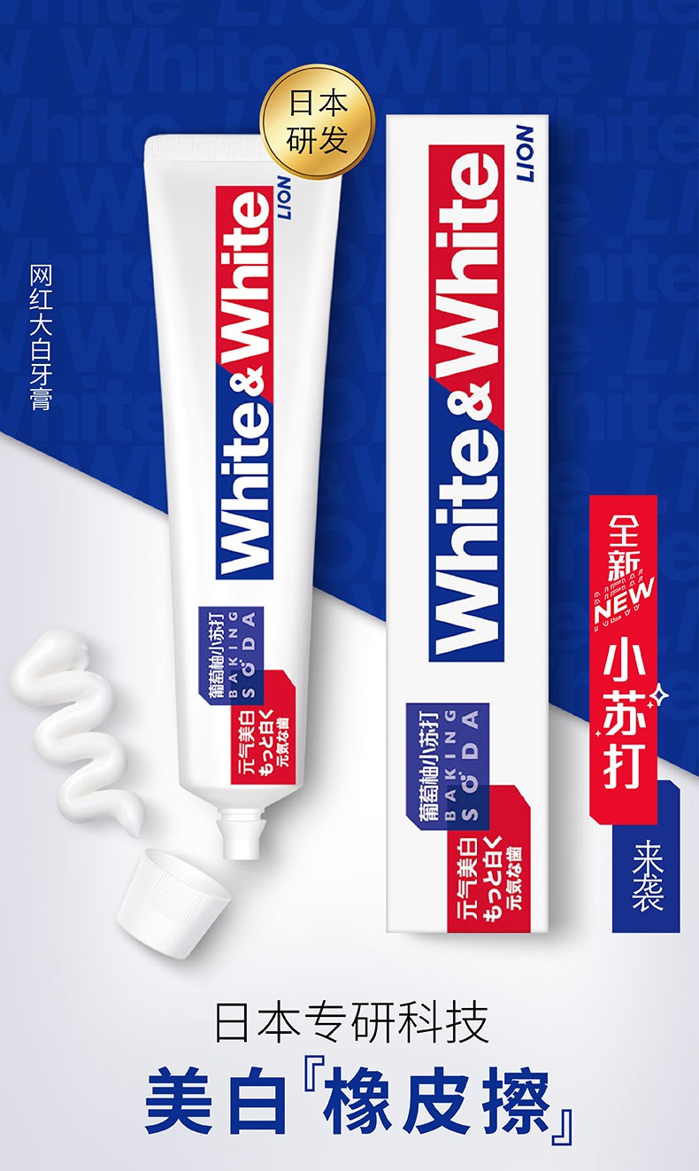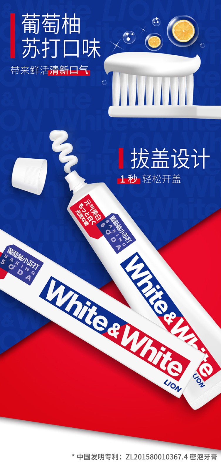 狮王WHITE&WHITE葡萄柚小苏打元气美白牙膏120g(买一送一)