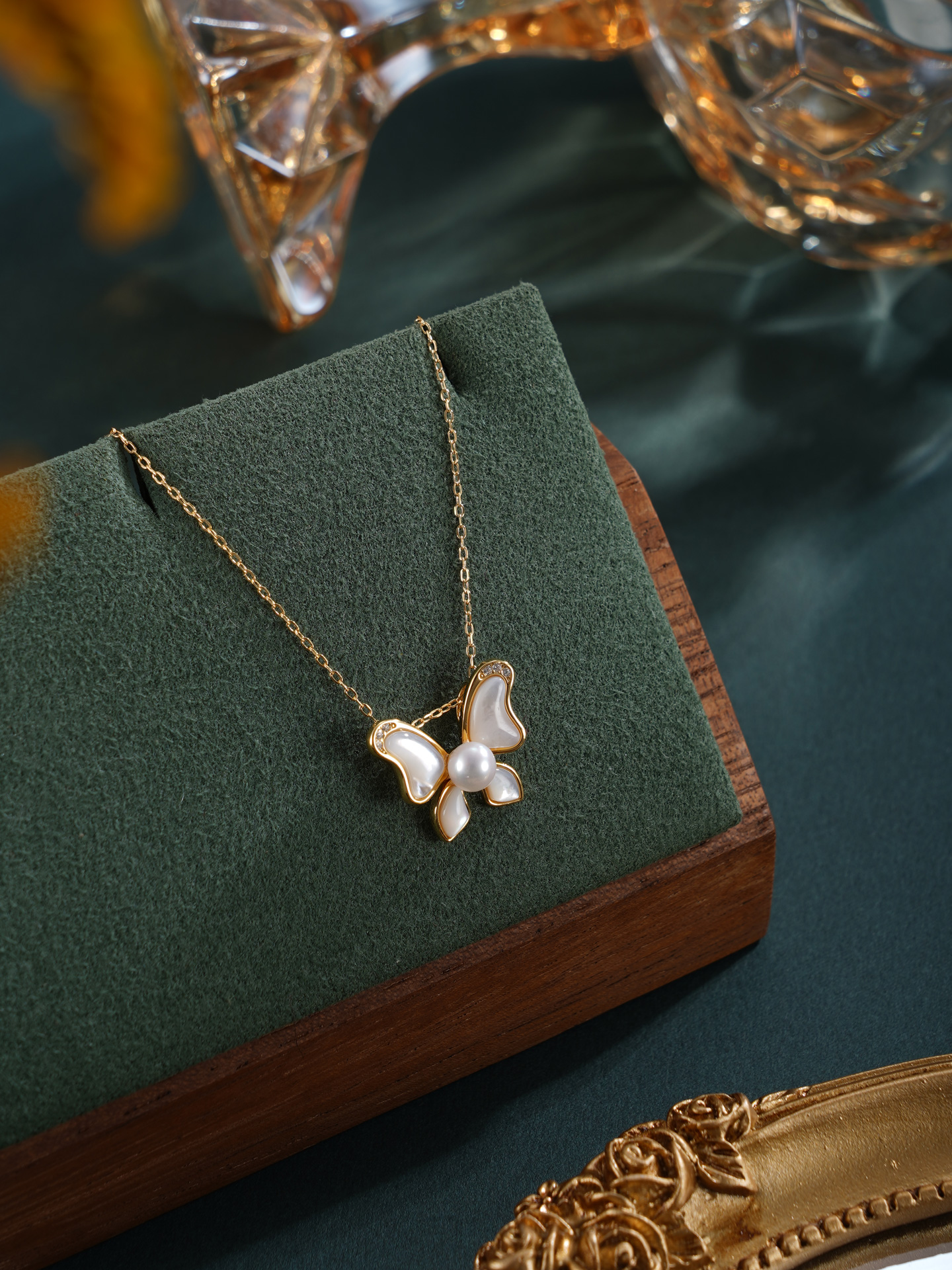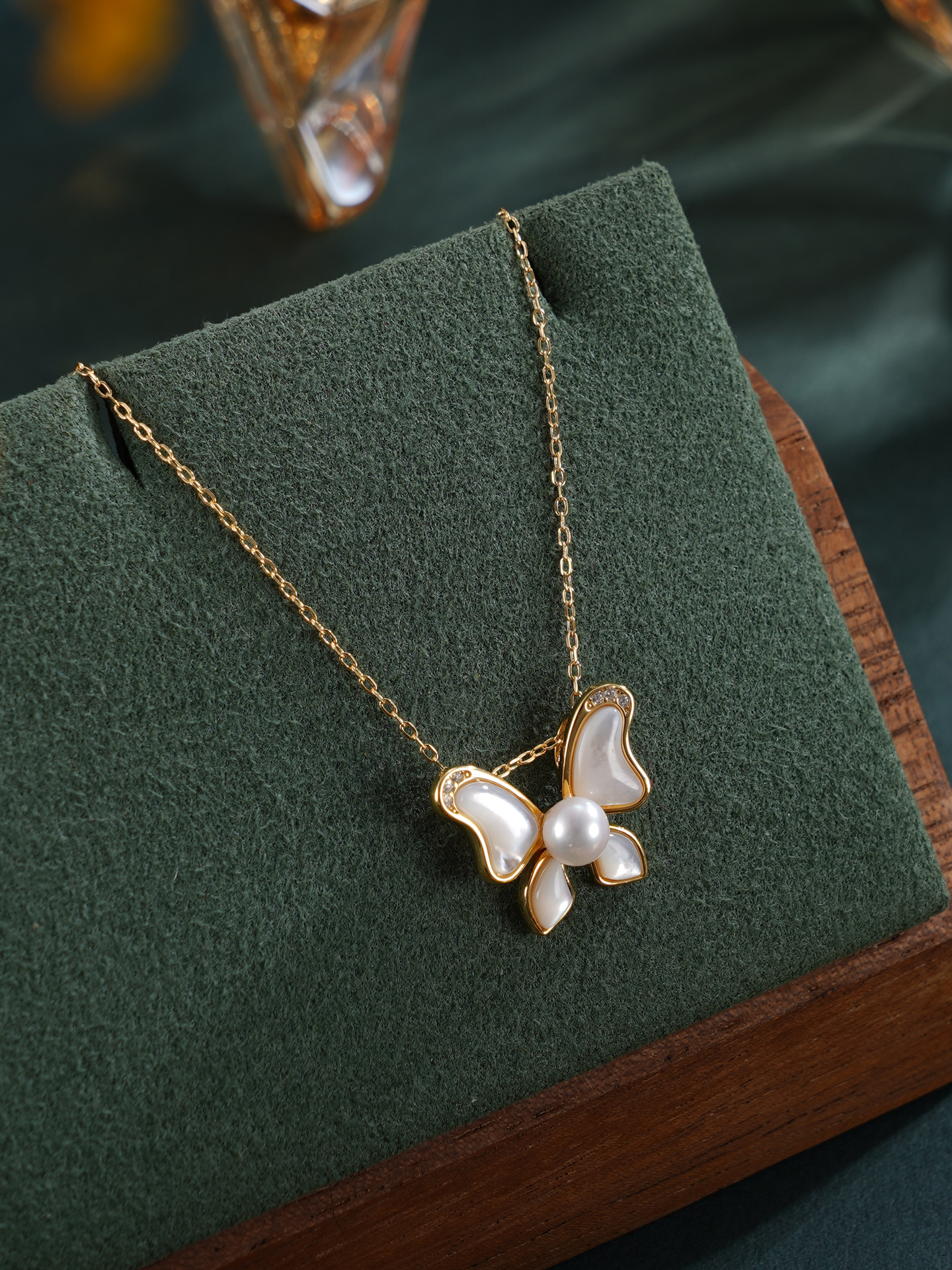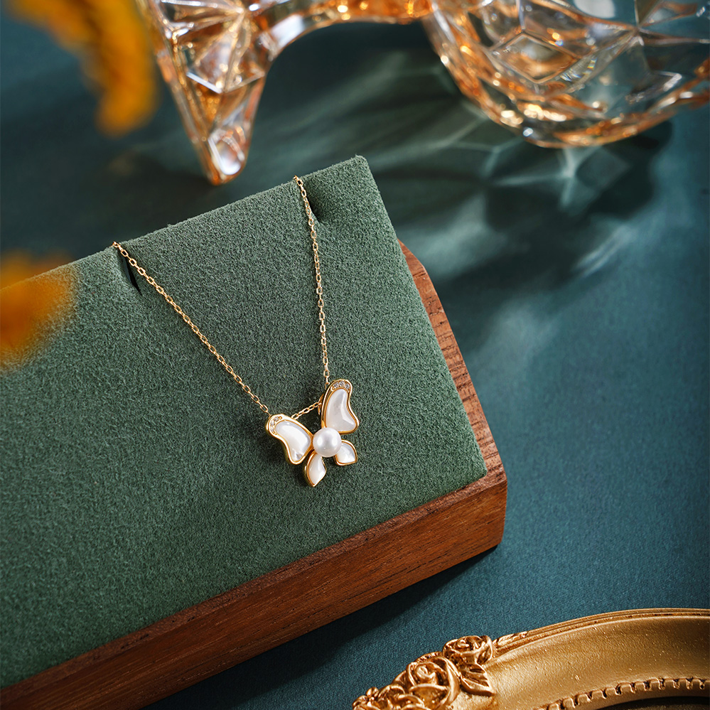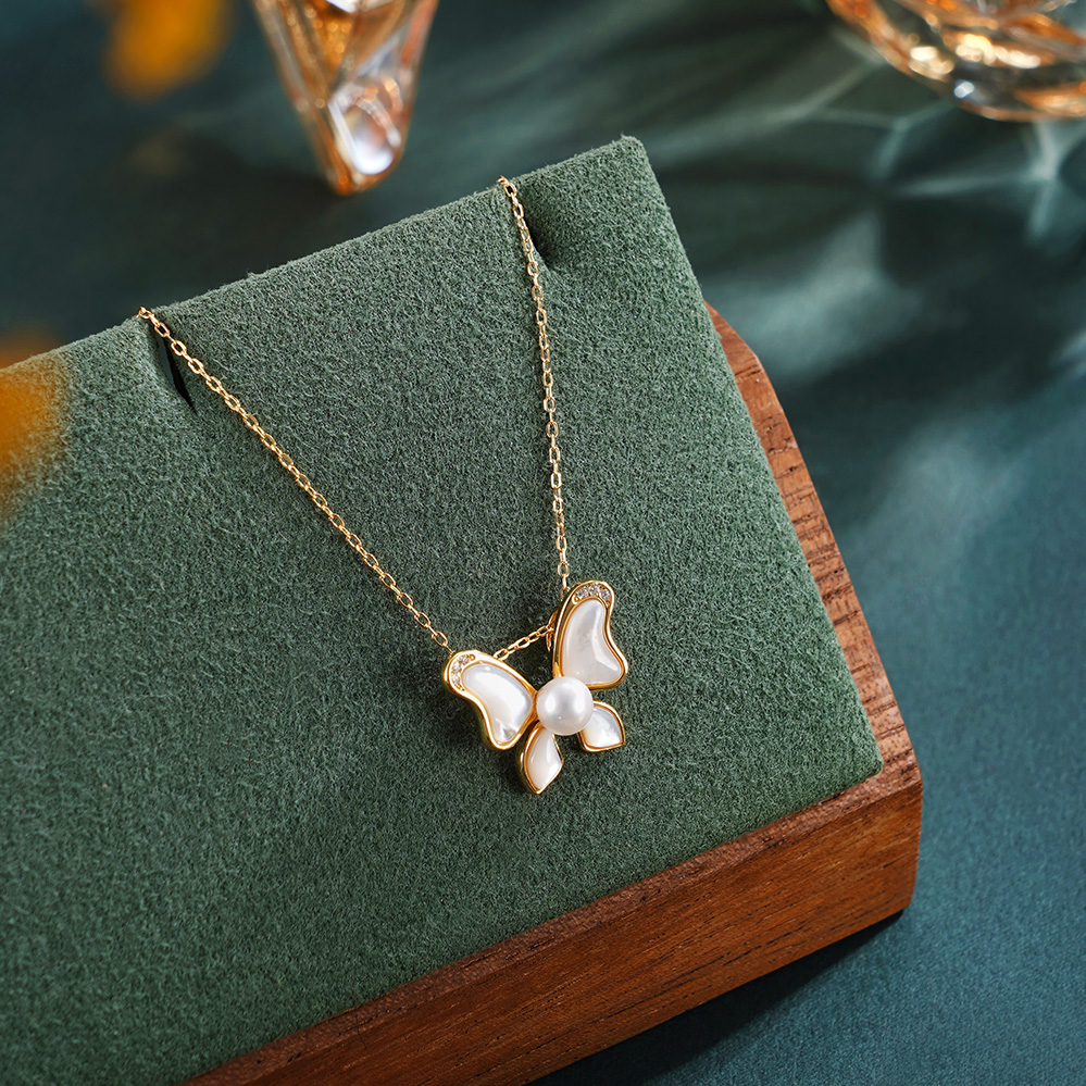 子佩集【彩蝶微光】银S925珍珠惜王妃套链【MLTL031】4mm珠镀金蝴蝶贝母2601