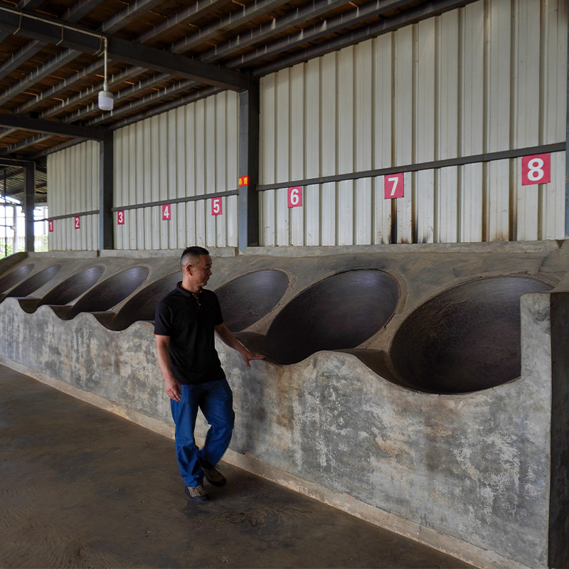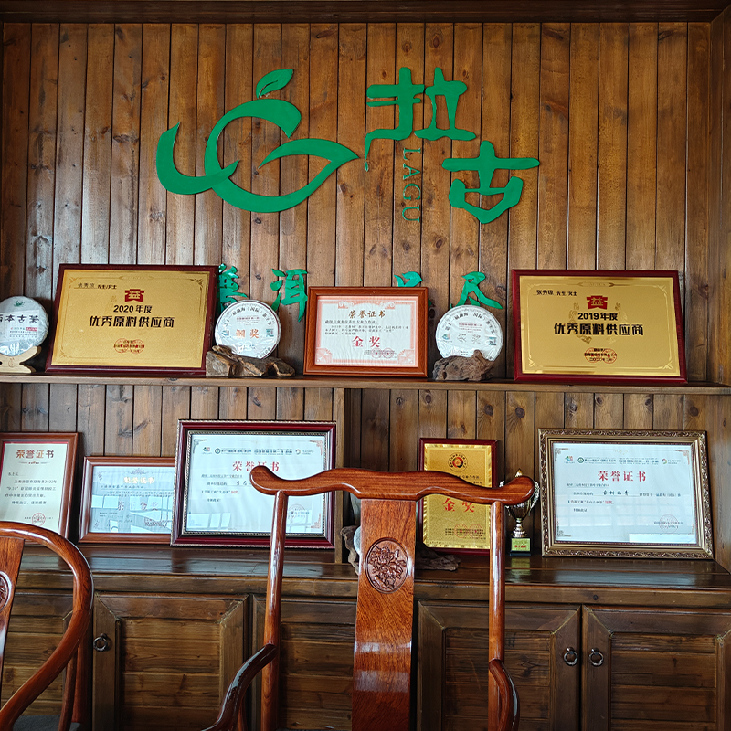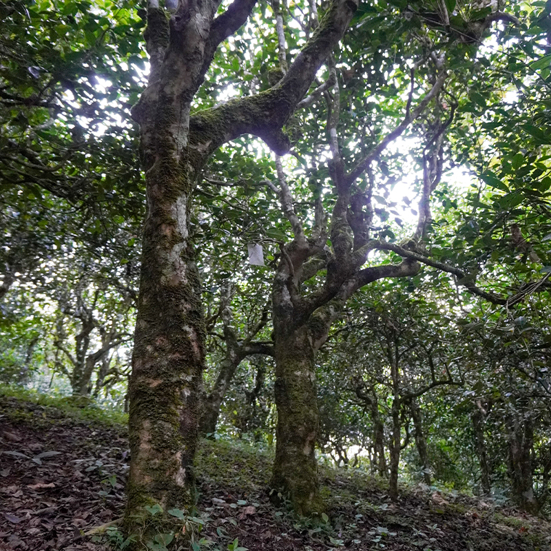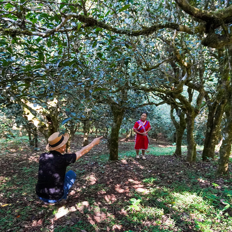 们挑选了几款茶进行试喝,喝醉后一款茶时,掌柜频频点头,表示这就是他想要的味道。茶农说这款茶来自6棵古树中的其中一棵。随后,我们跟随茶农来到茶地,亲眼看到了这6棵古树连片生长,距离茶王树非常近,难怪其滋味如此出色。掌柜当即决定将这批15公斤的原料全部带