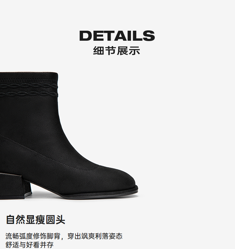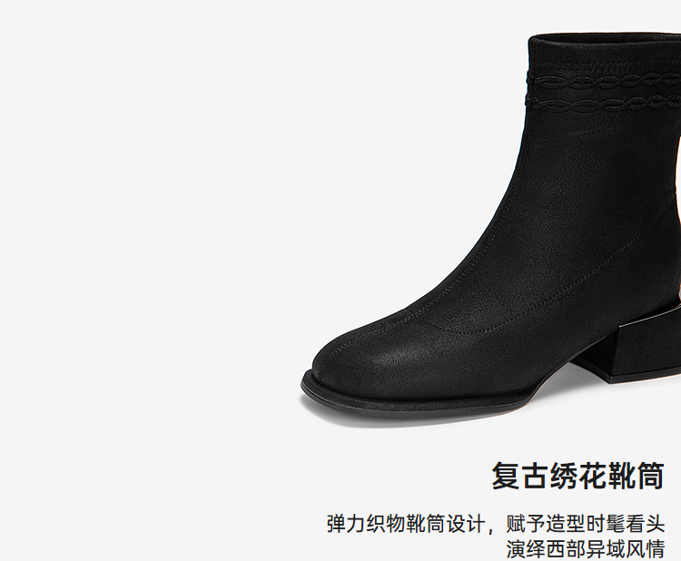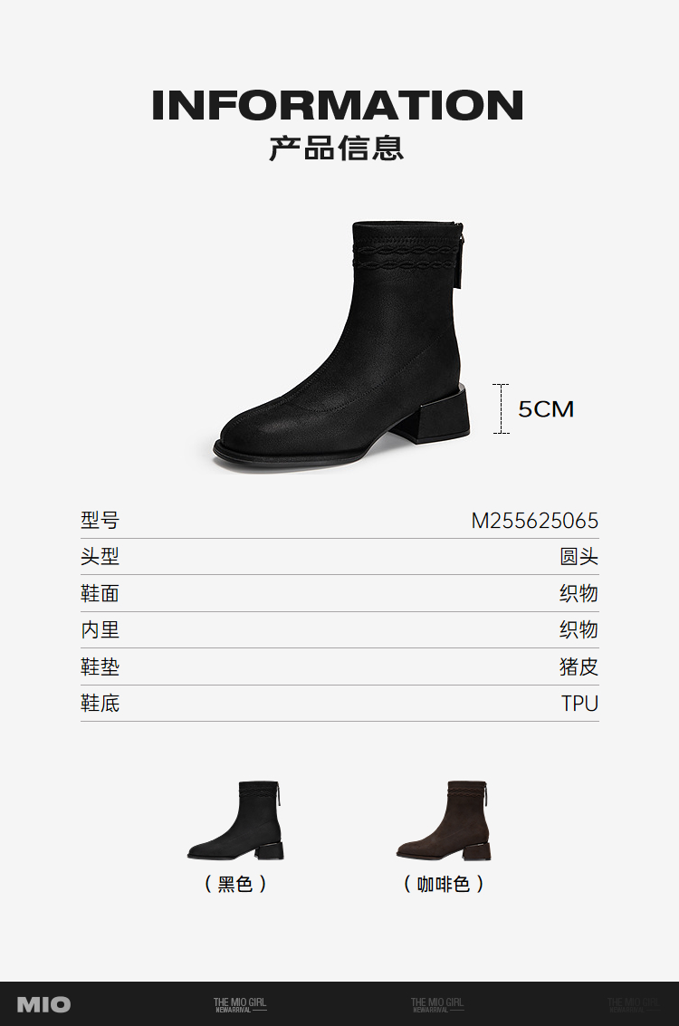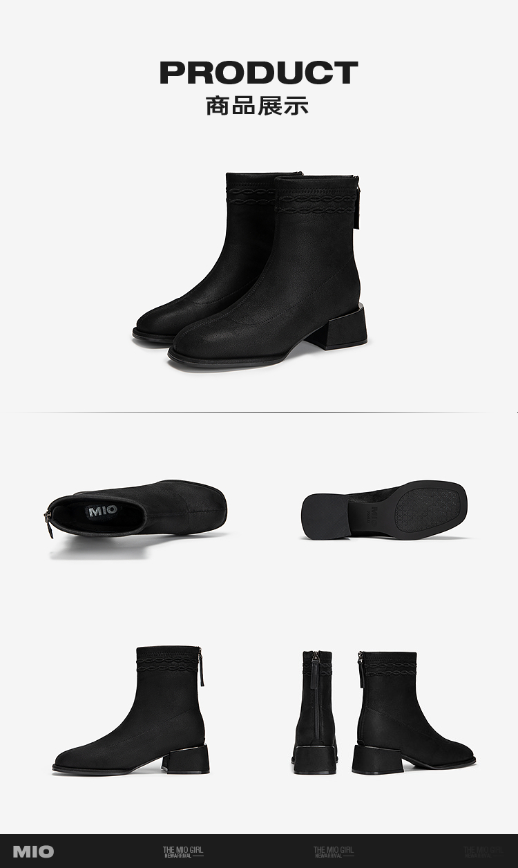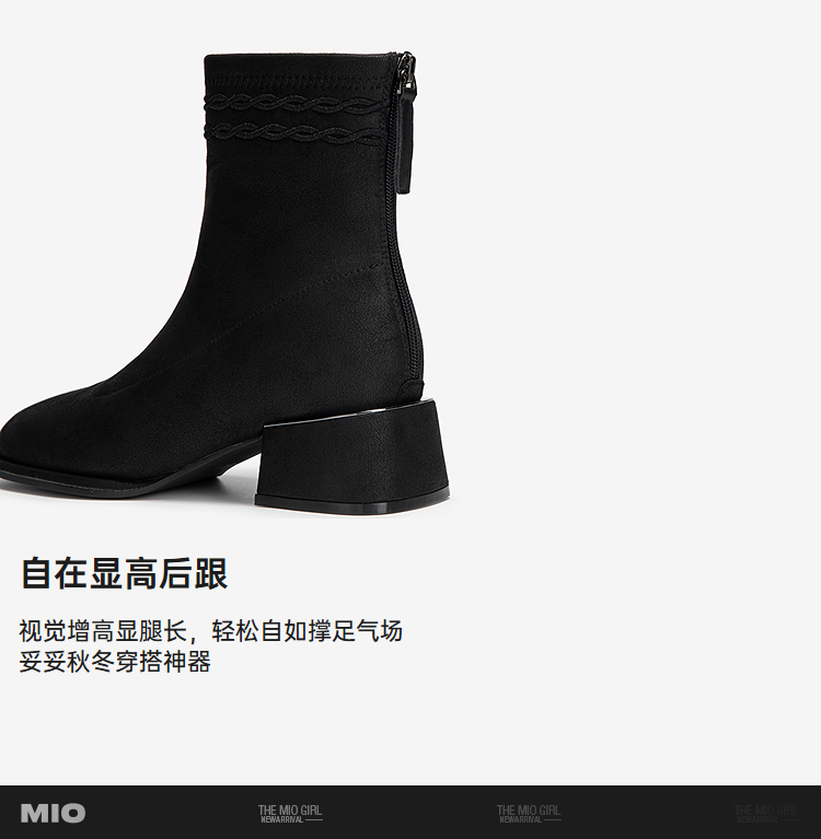 MIO米奥时装靴圆头高跟增高弹力靴时尚百搭纯色女靴M255625065