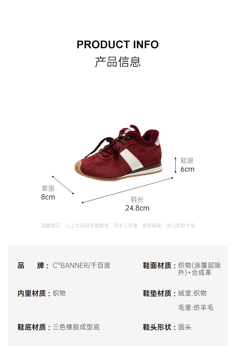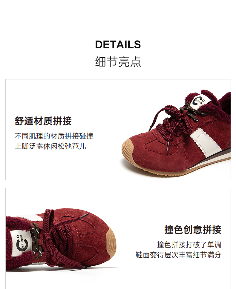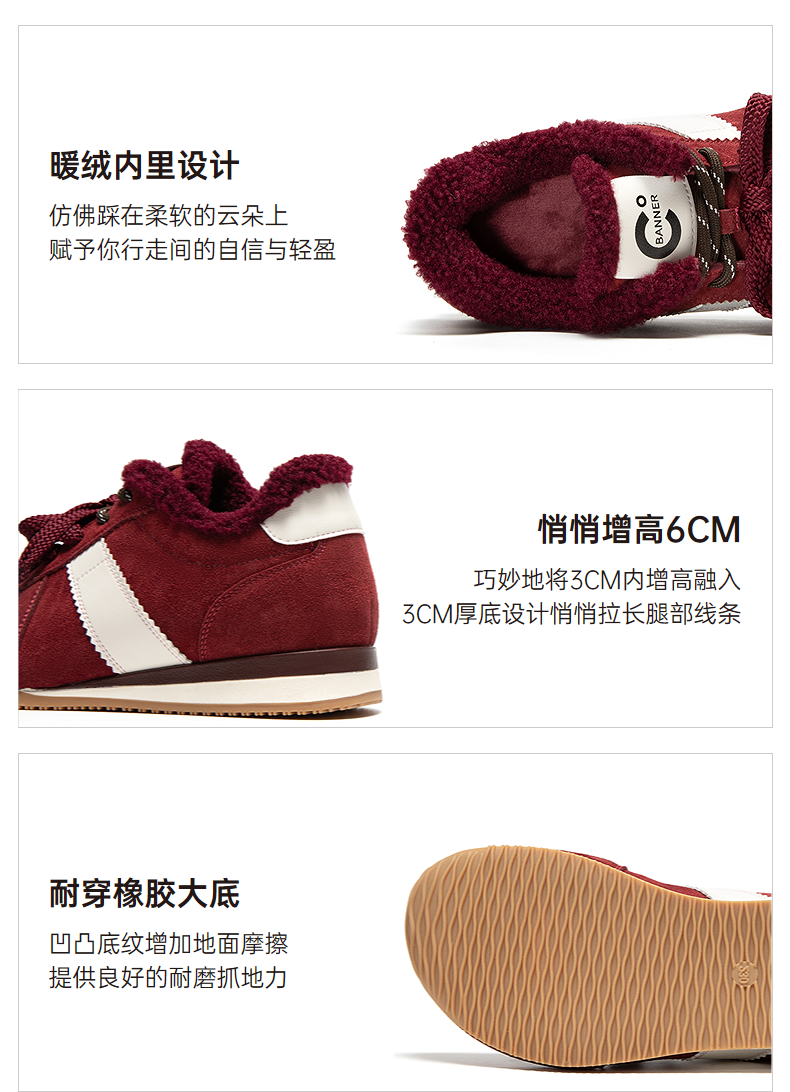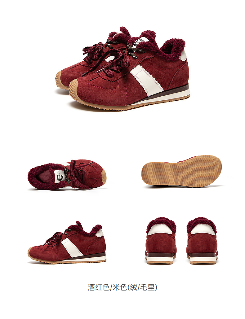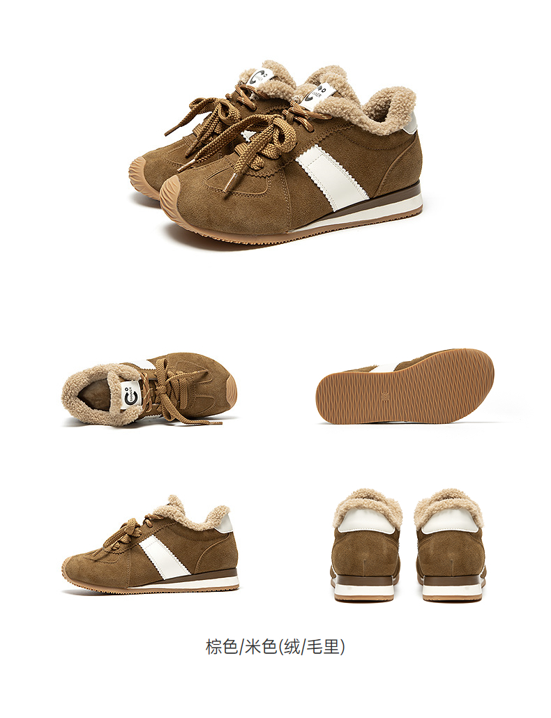 千百度内增高德训鞋女加绒保暖厚底复古运动休闲鞋A25650303