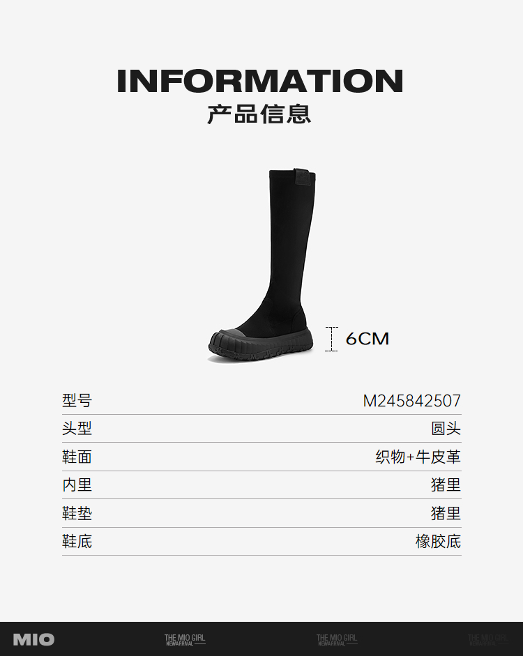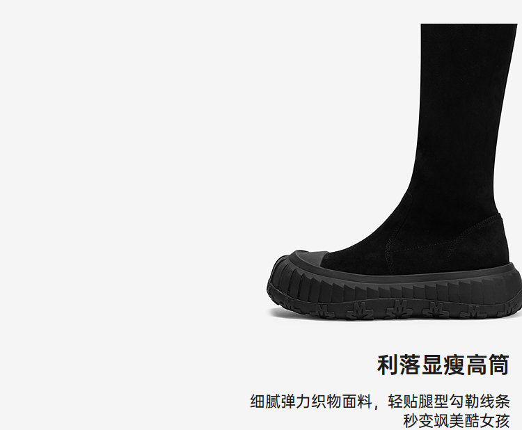 MIO米奥冬季圆头厚底弹力靴袜靴百搭增高瘦瘦靴长筒靴女M245842507