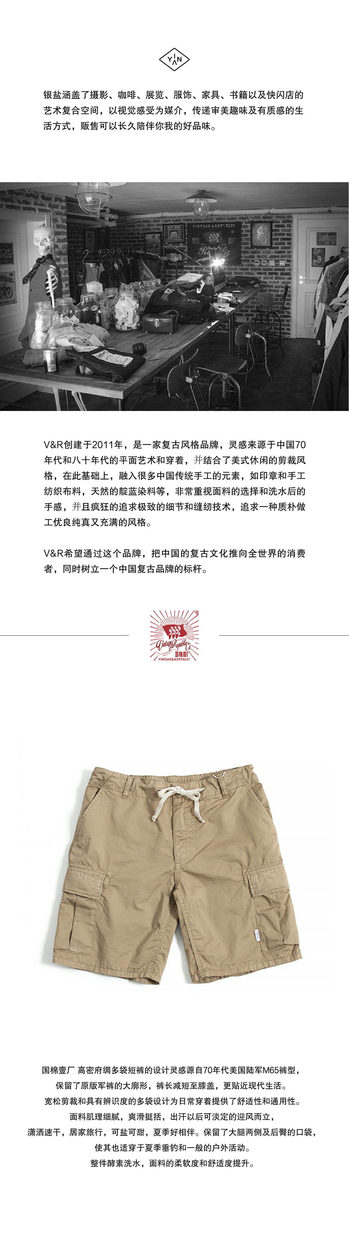 VinR/01200322M65/舒适立体口袋短裤