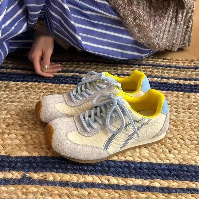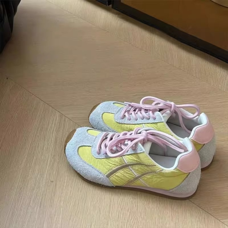 「春夏新款!牛皮版德训鞋」女2025早春新款拼色运动鞋 平底轻便休闲板鞋阿甘鞋