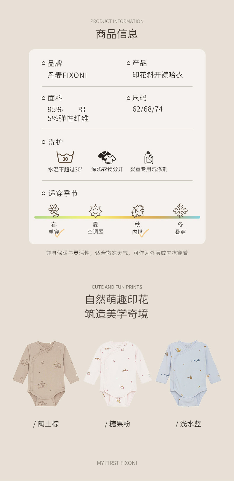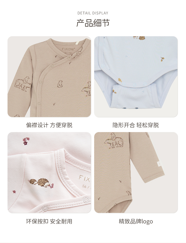 【云优选】FIXONI 婴幼儿棉印花斜开襟包屁衣-2026新品