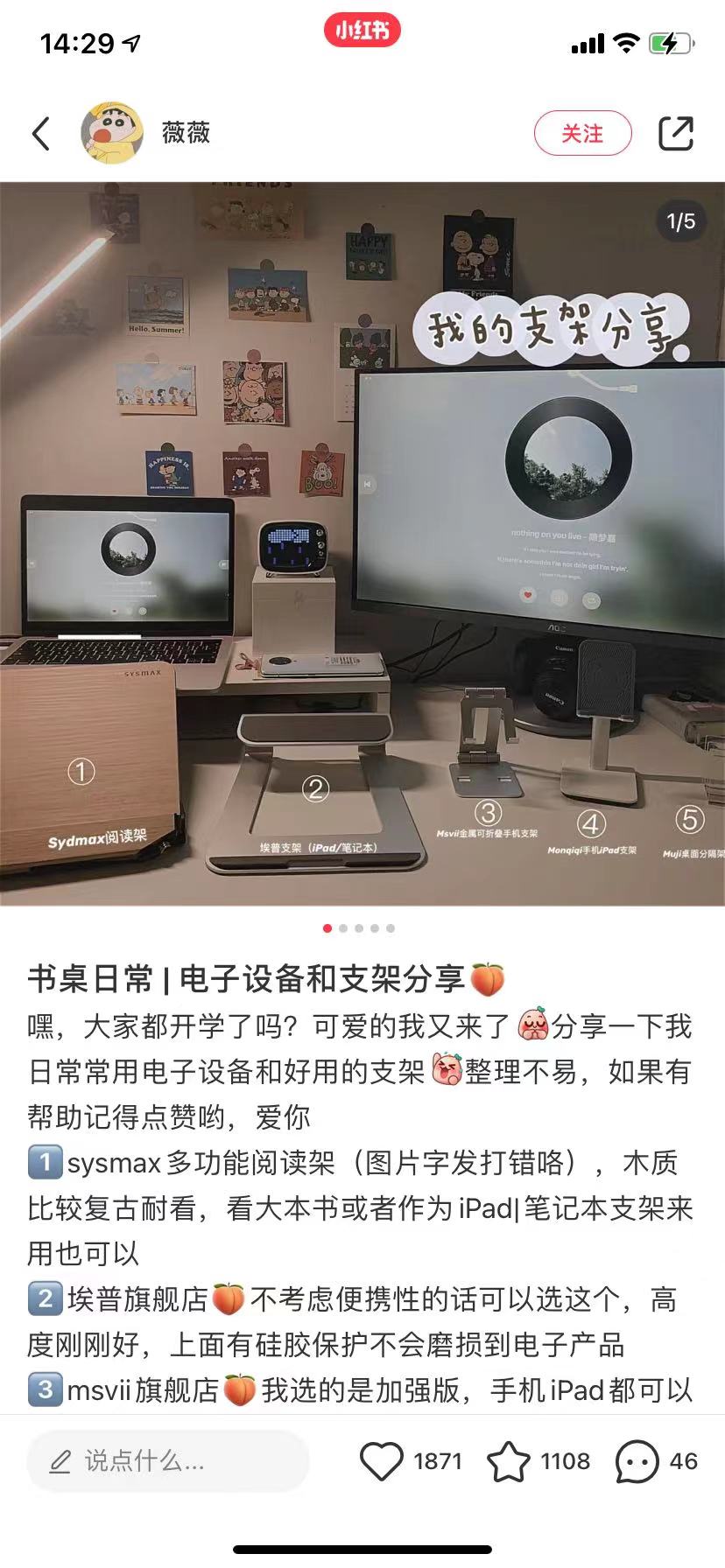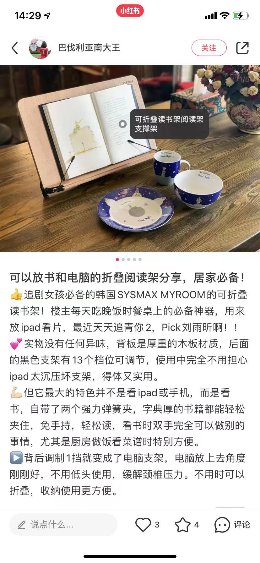 开学季,推荐个阅读支架,这款是是B站等很多教育学习类bo主带火的一款支架,(看书|iPad|电脑)满足了几乎支架所能达到的一切要求!虽然有点小贵,但是用起来你真的会感觉超值,我之前在某宝上买过便宜的读书架,要么就是太轻只能摆书,要么就是电脑码字时会摇晃...用了这个之后真的不得不说贵有贵的道理!我准备再给小米入手一个看书!