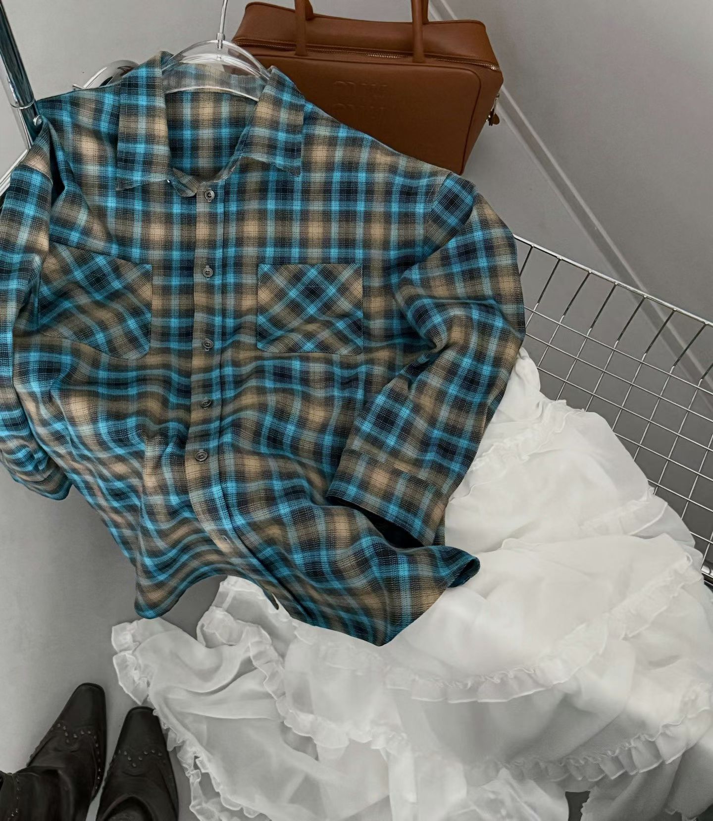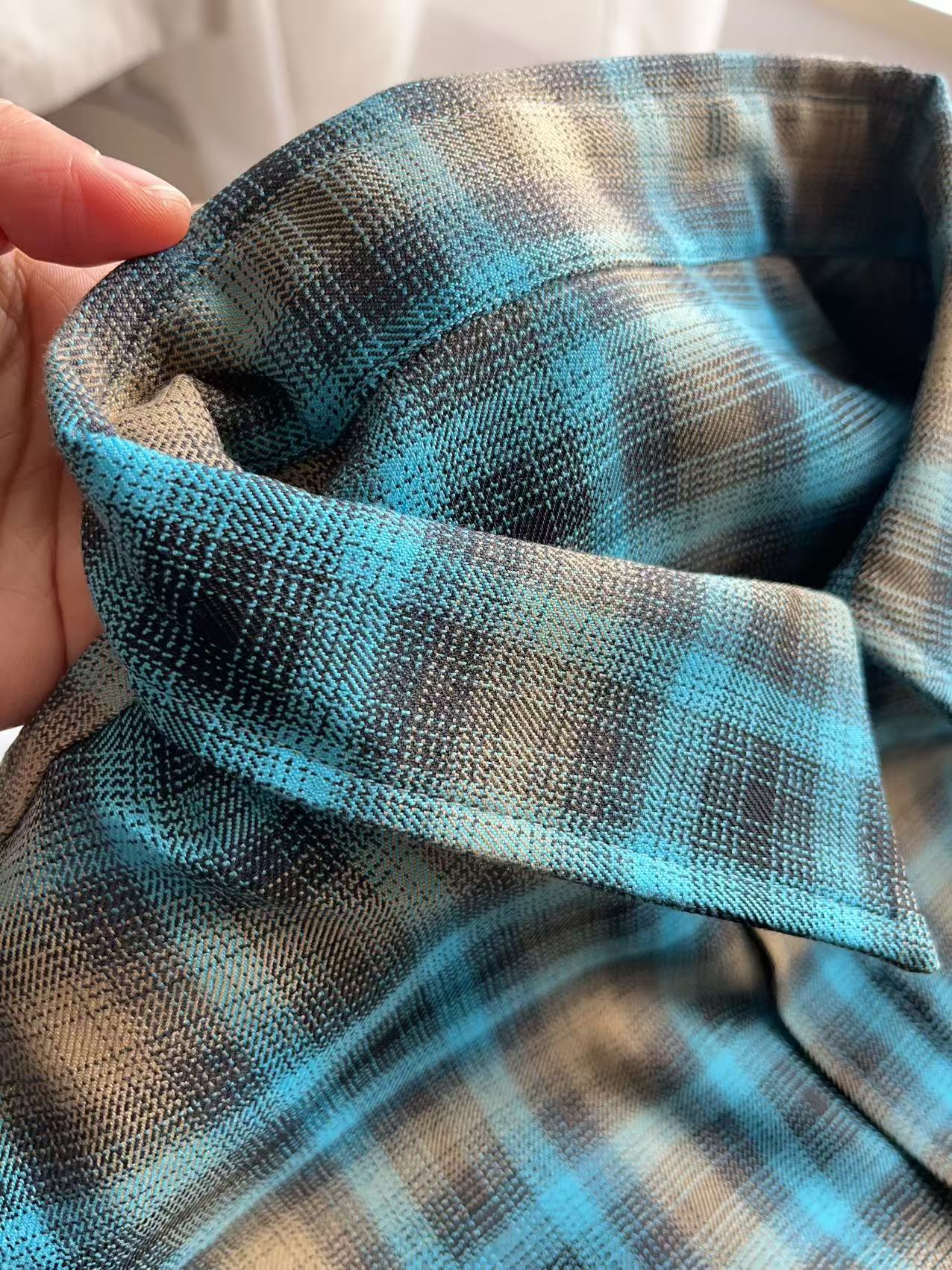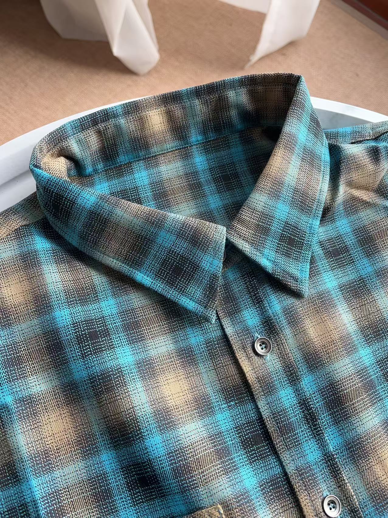 复古蓝棕格纹衬衫, 色系很特别,