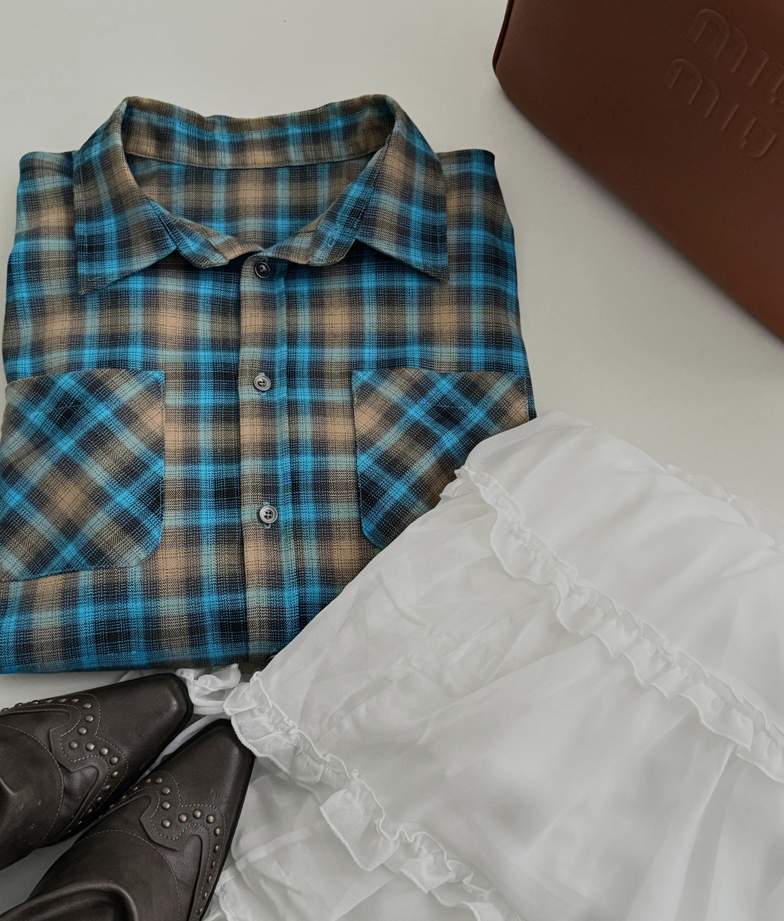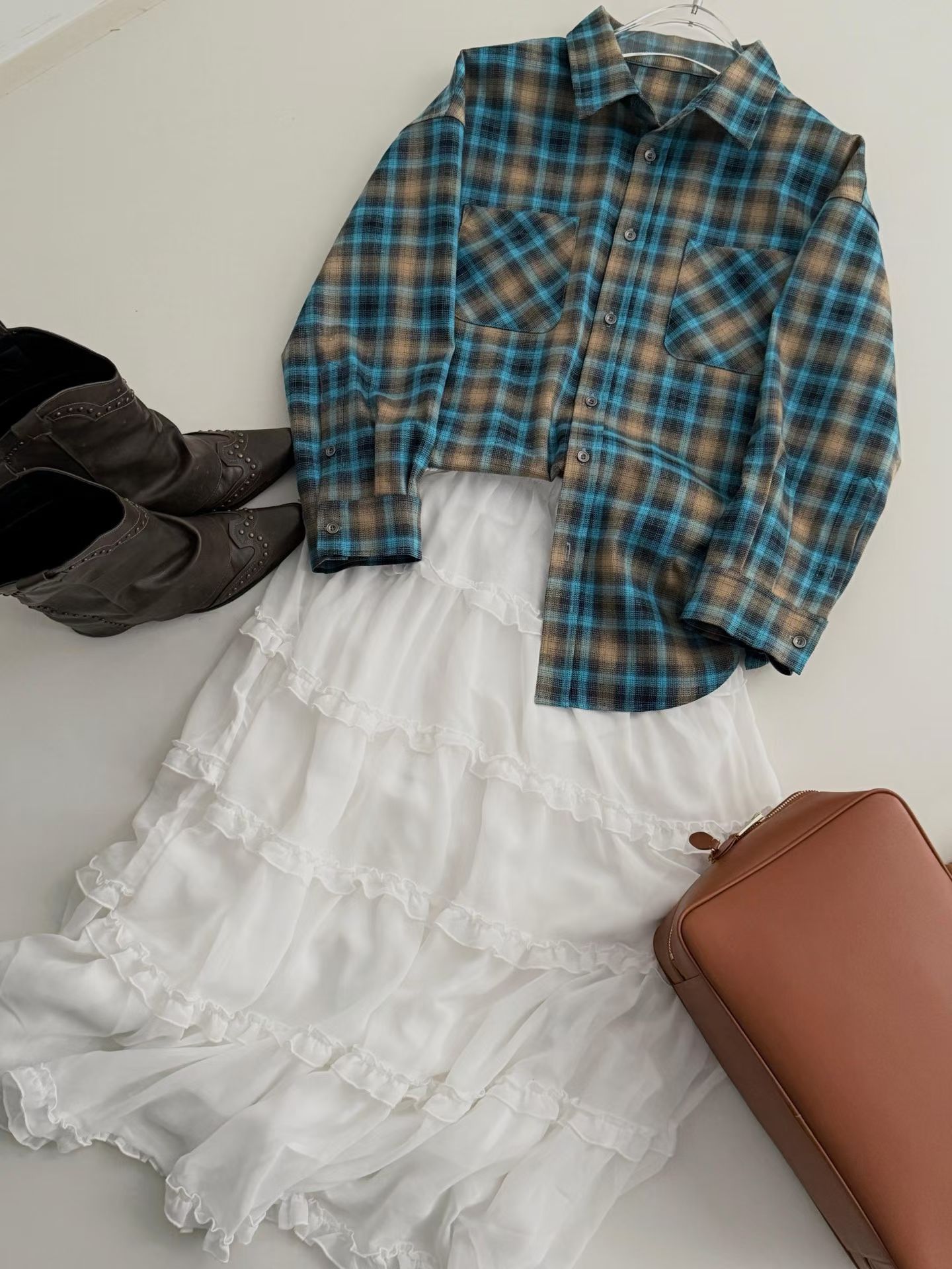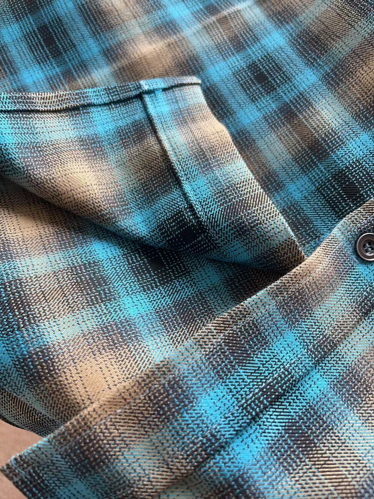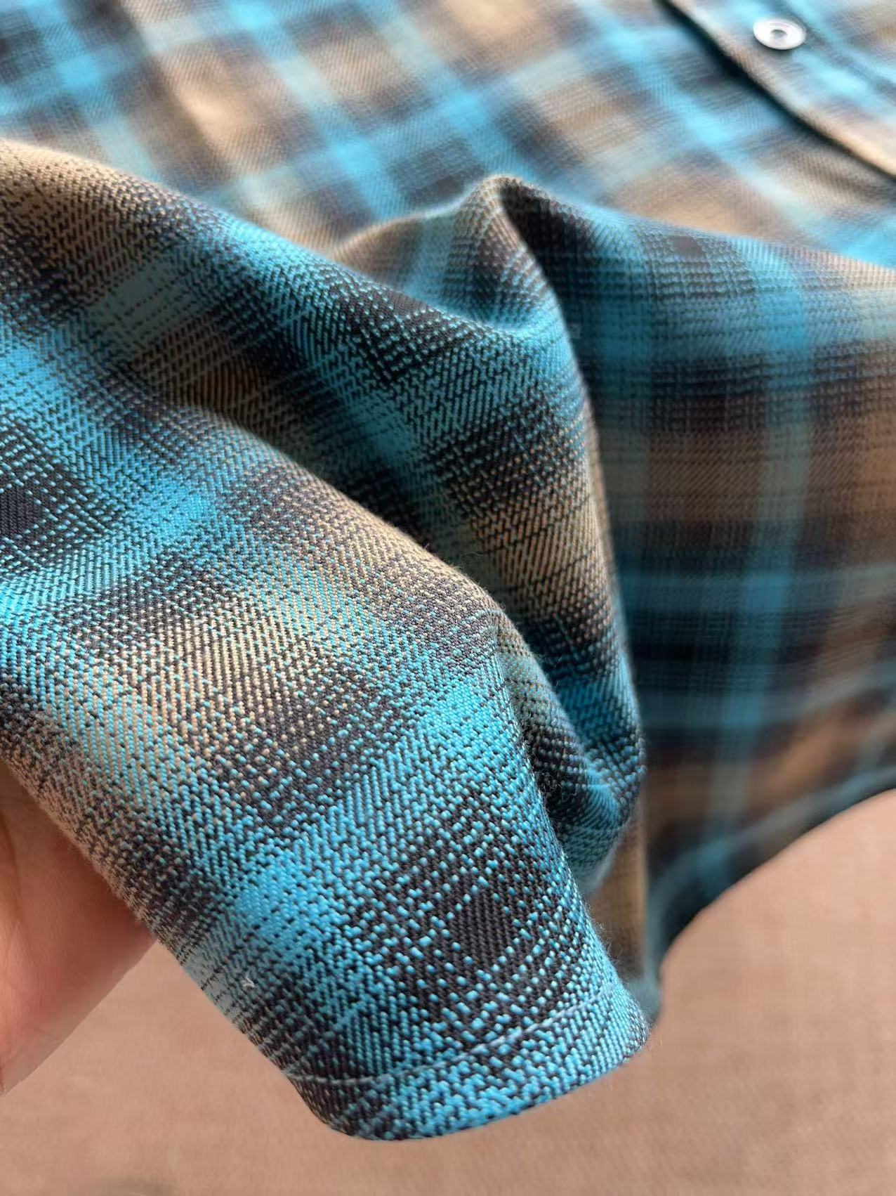 复古蓝棕格纹衬衫, 色系很特别,