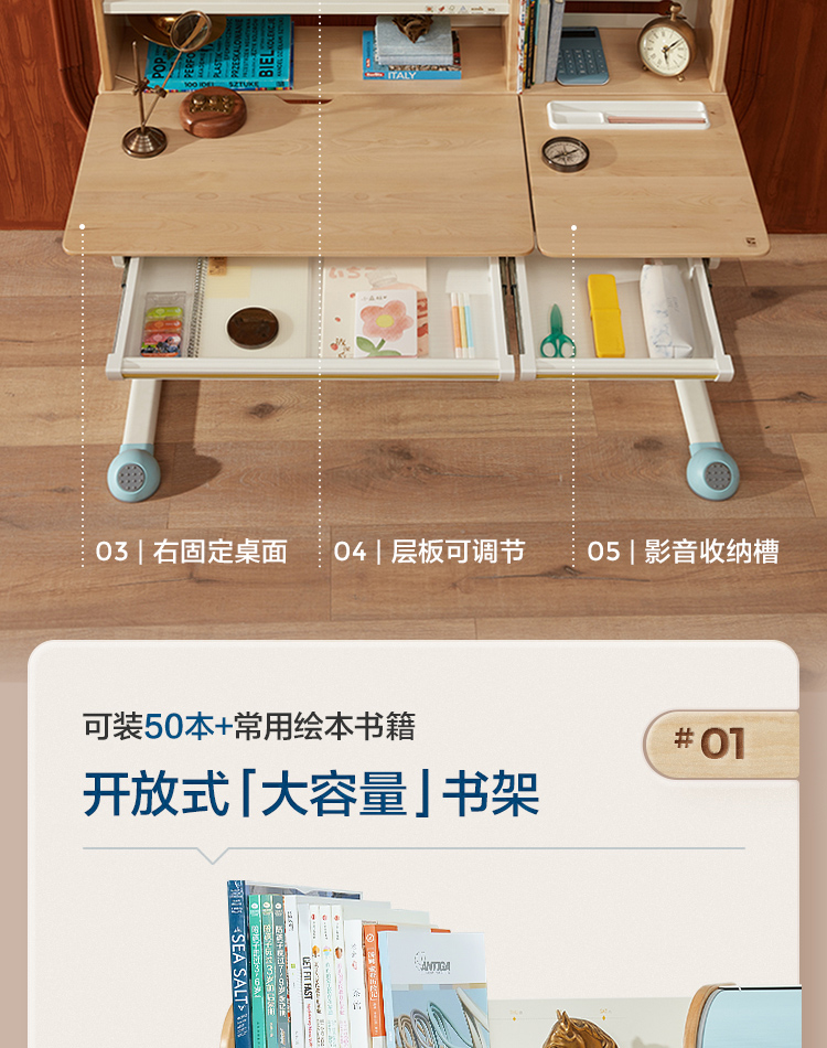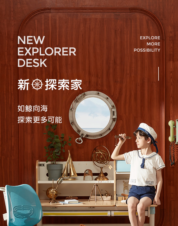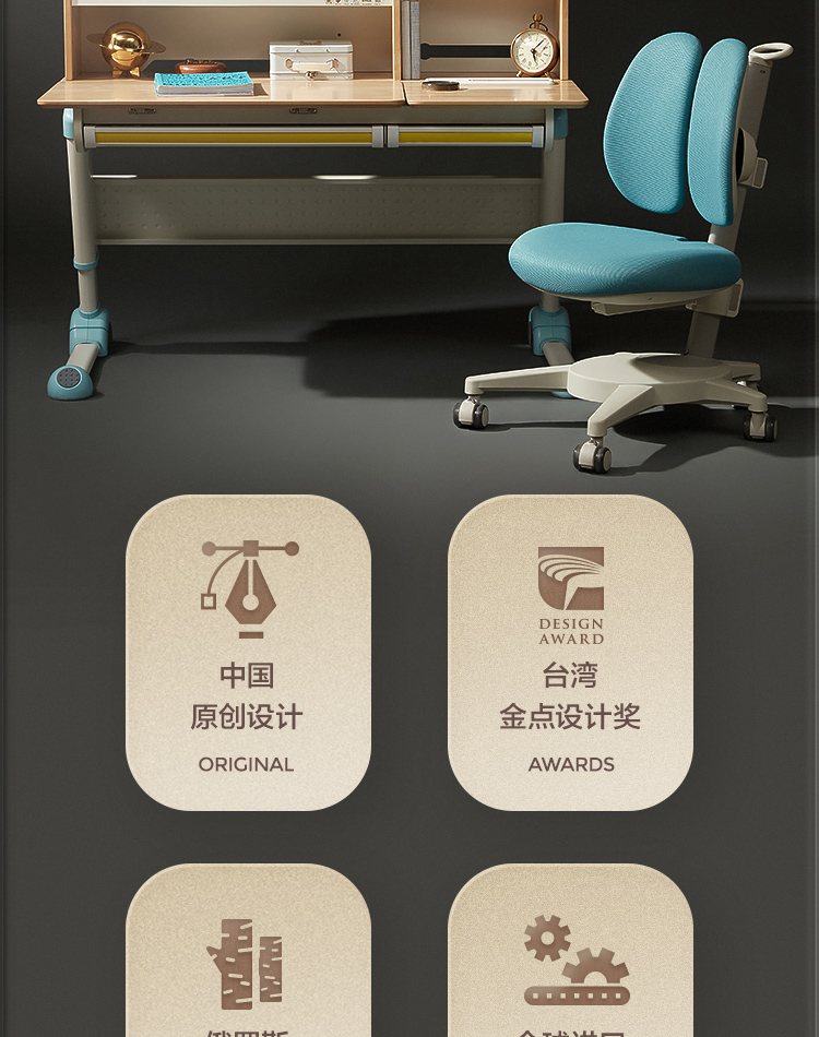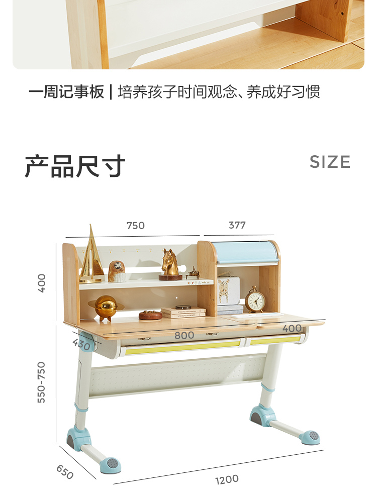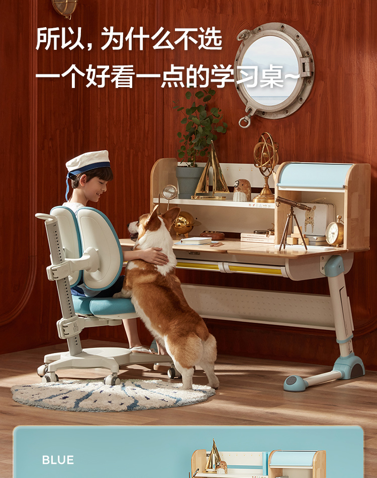 2平米儿童学习桌书桌实木 探索家 进口桦木儿童学习书桌椅套装 探索家1.2米+博睿蓝椅