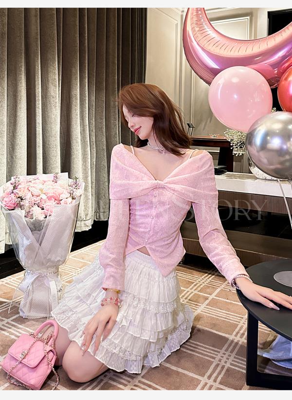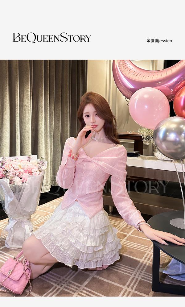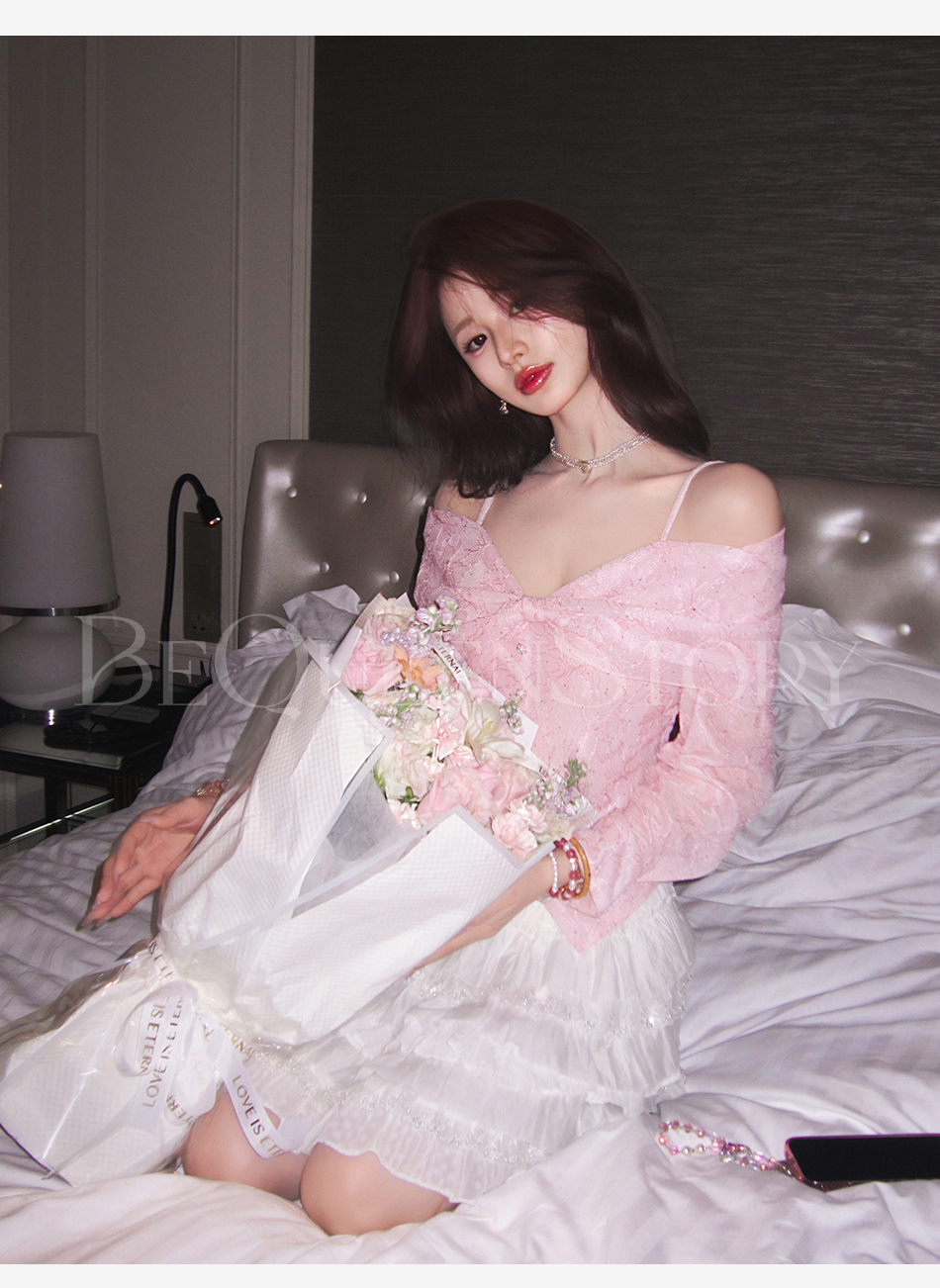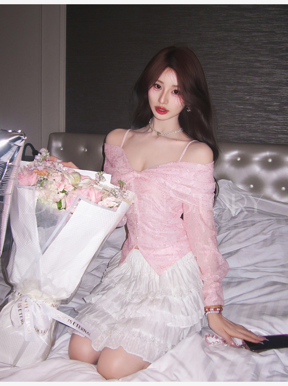 韩韩IU【甜香巴洛克】精致时尚可调节一字肩吊带上衣红人秋日穿搭