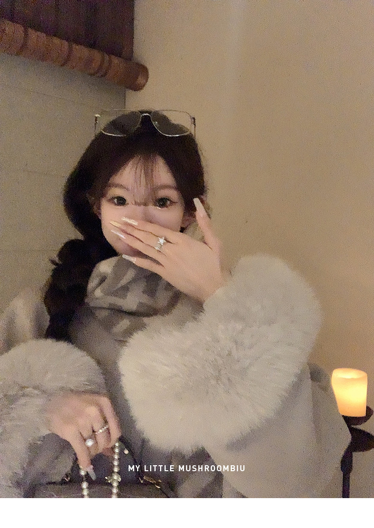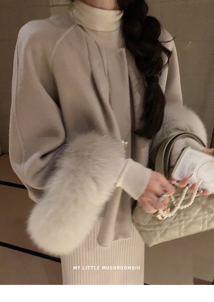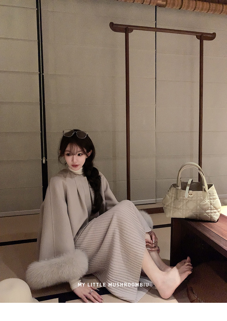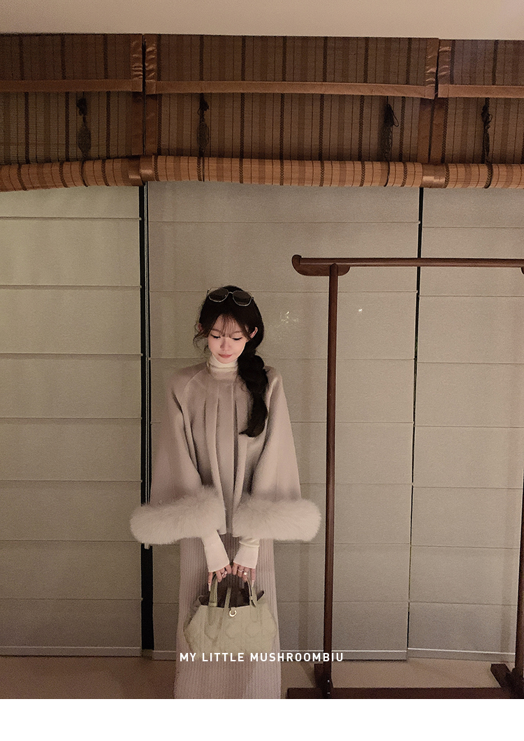 米灰:10羊绒 90羊毛 袖口毛:狐狸毛