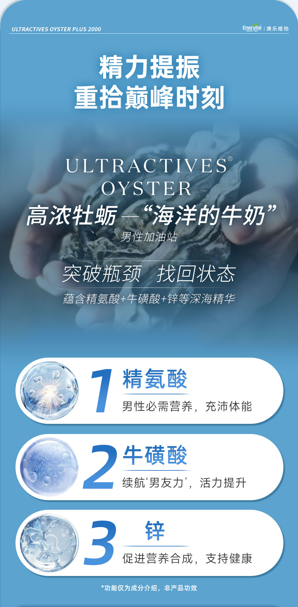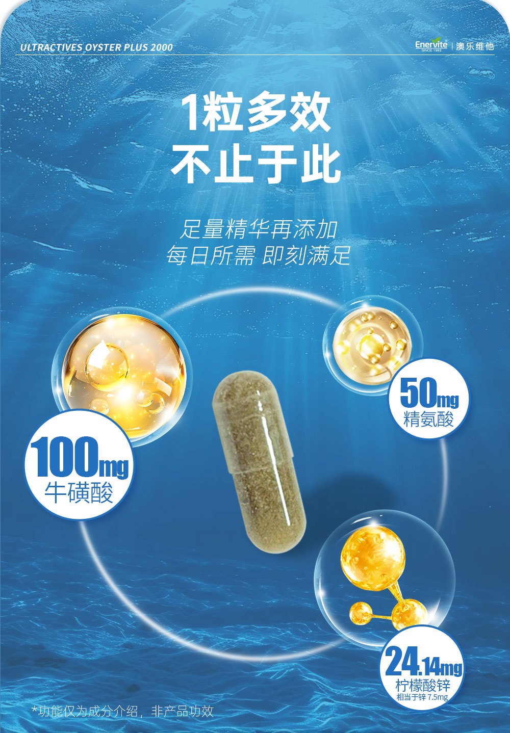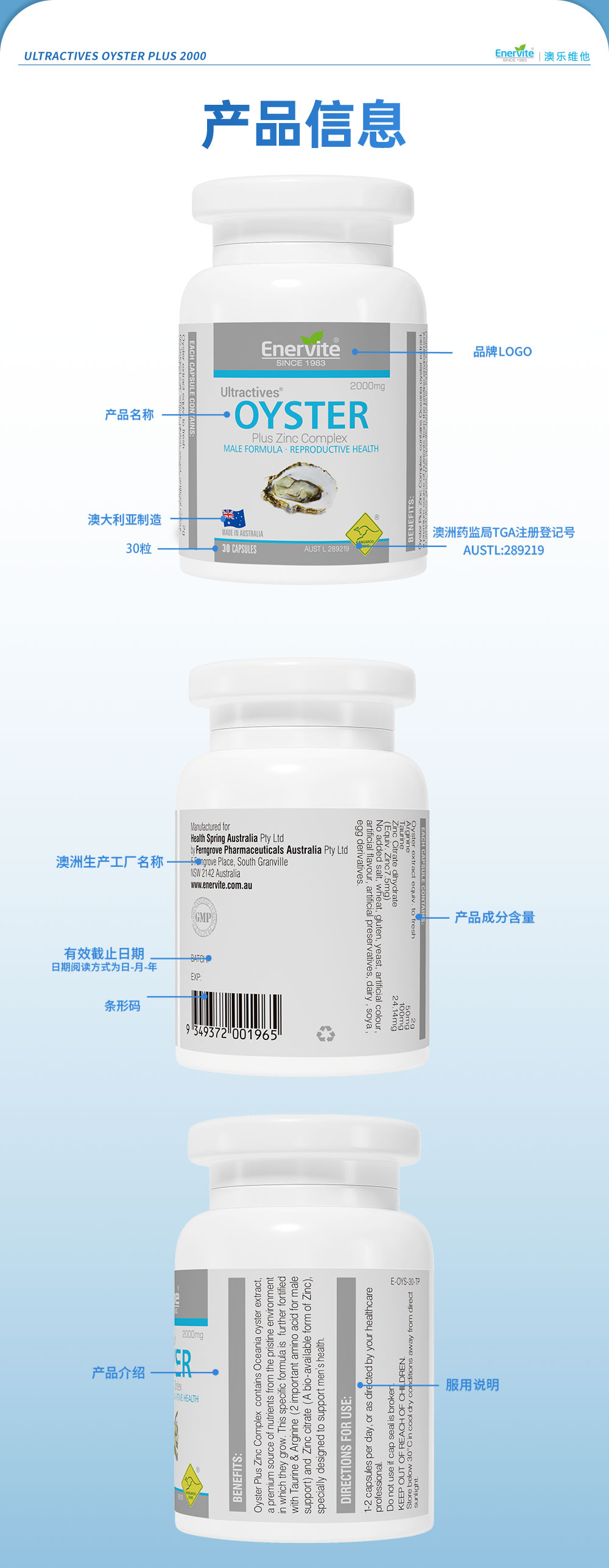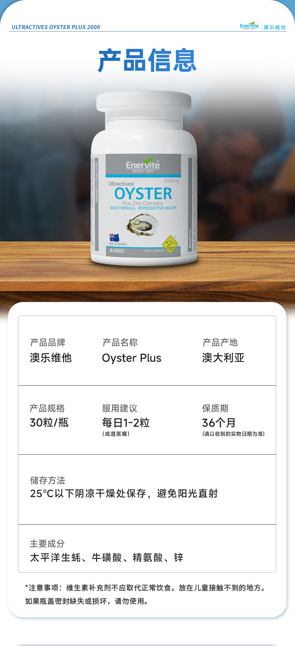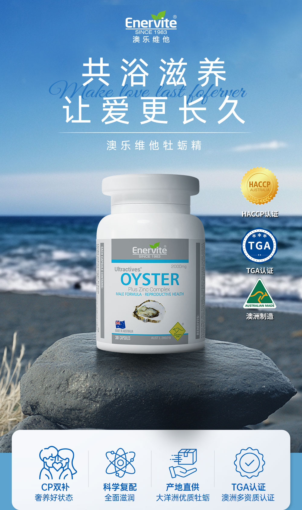 【超值3瓶】Enervite澳乐维他 牡蛎精胶囊 增强版 30粒/瓶(有效期至26年6/8月,介意慎拍)