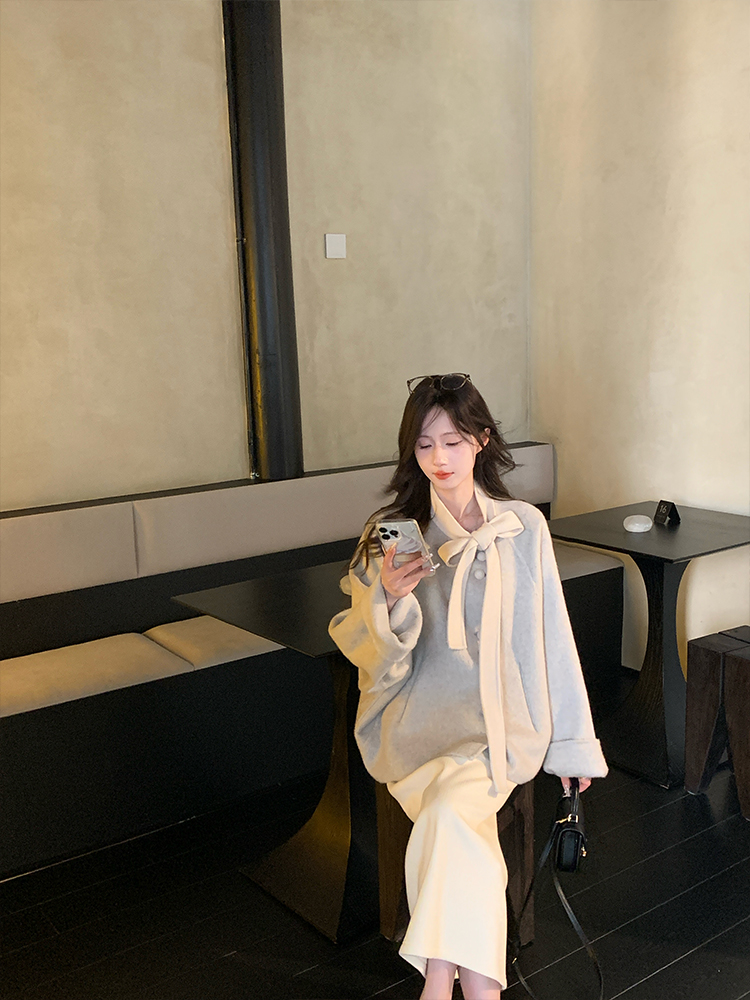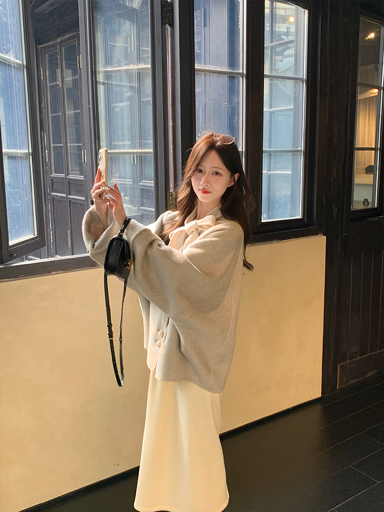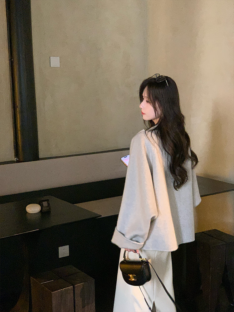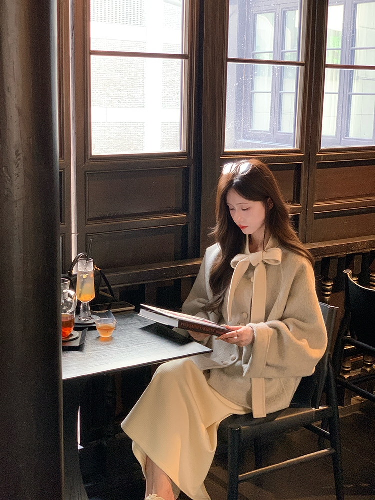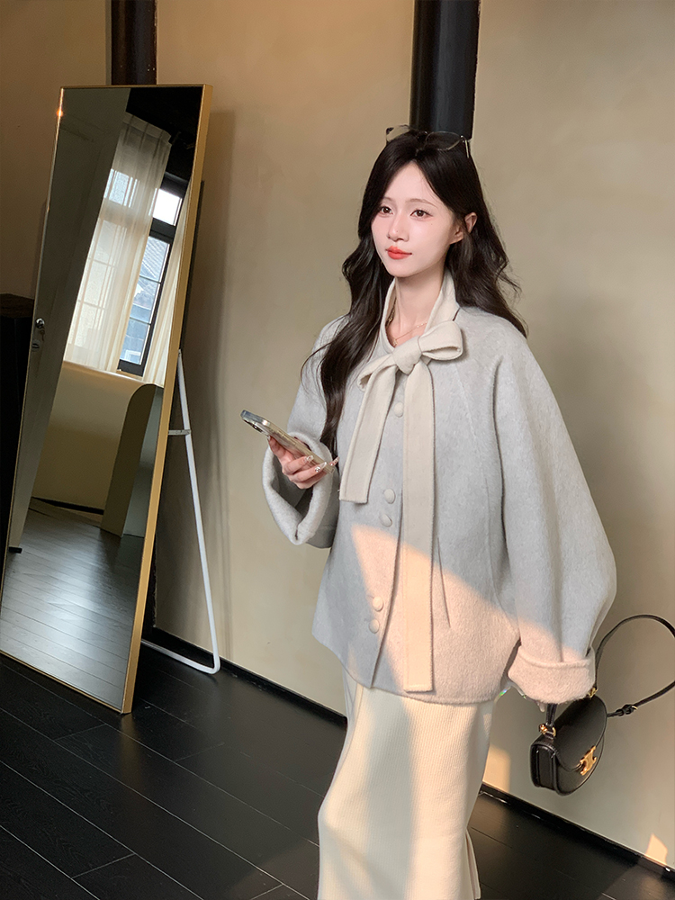 现货【心动符号】90羊毛设计师高定双面大衣蝴蝶领结温柔双面呢外套