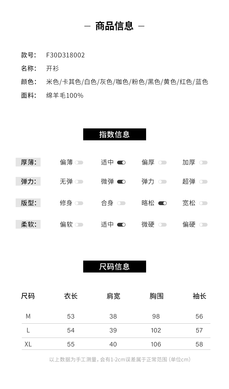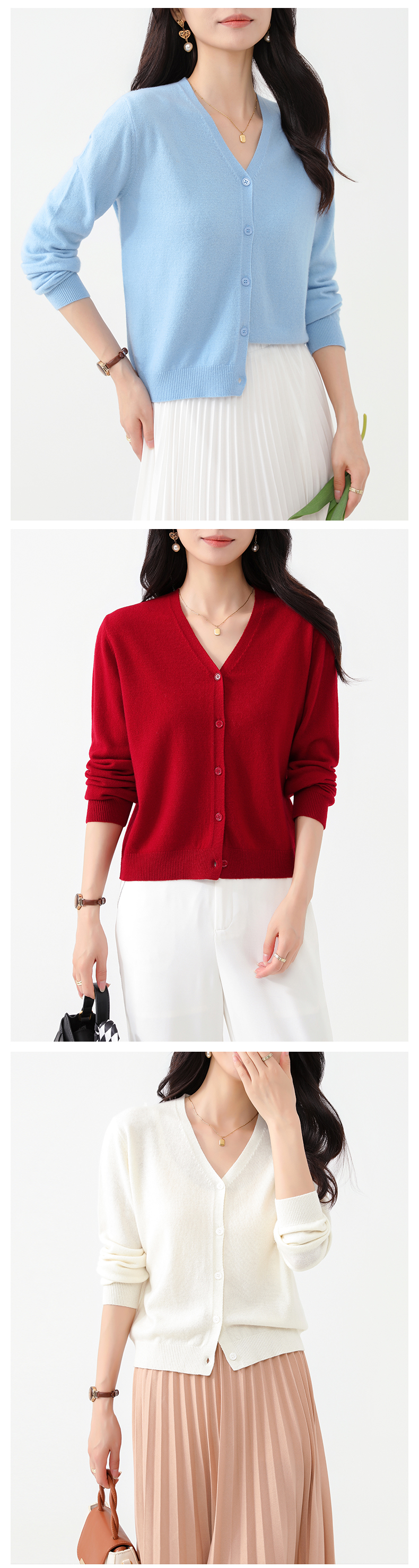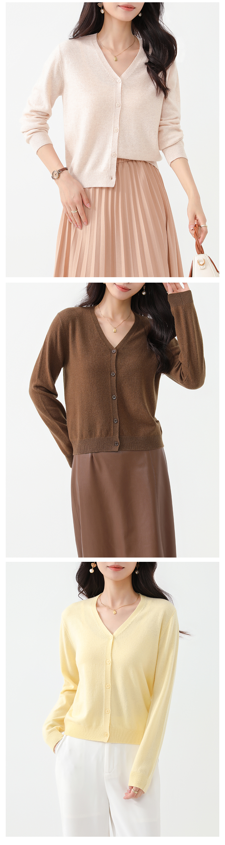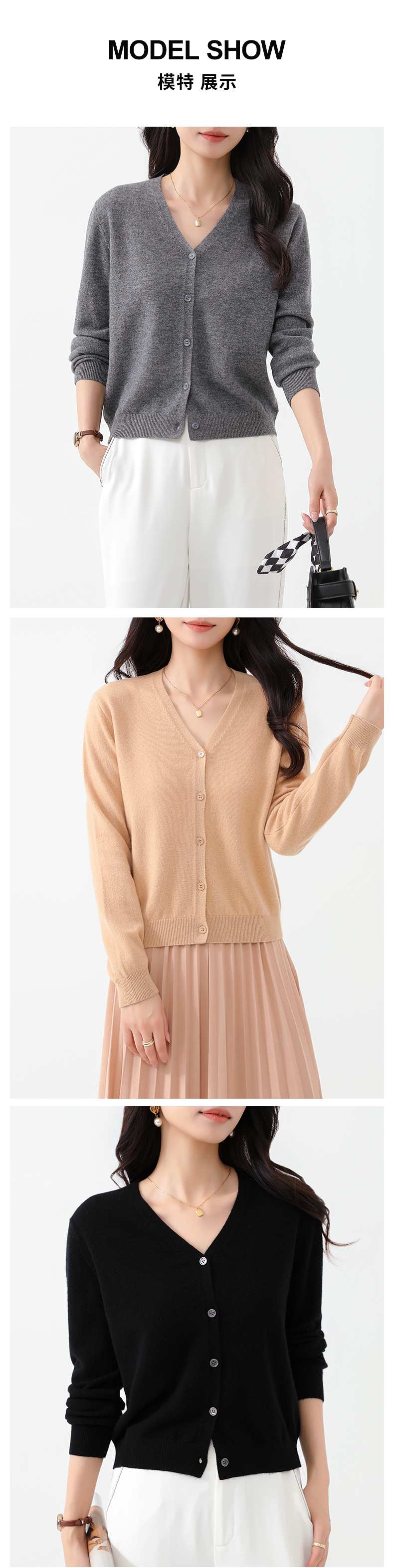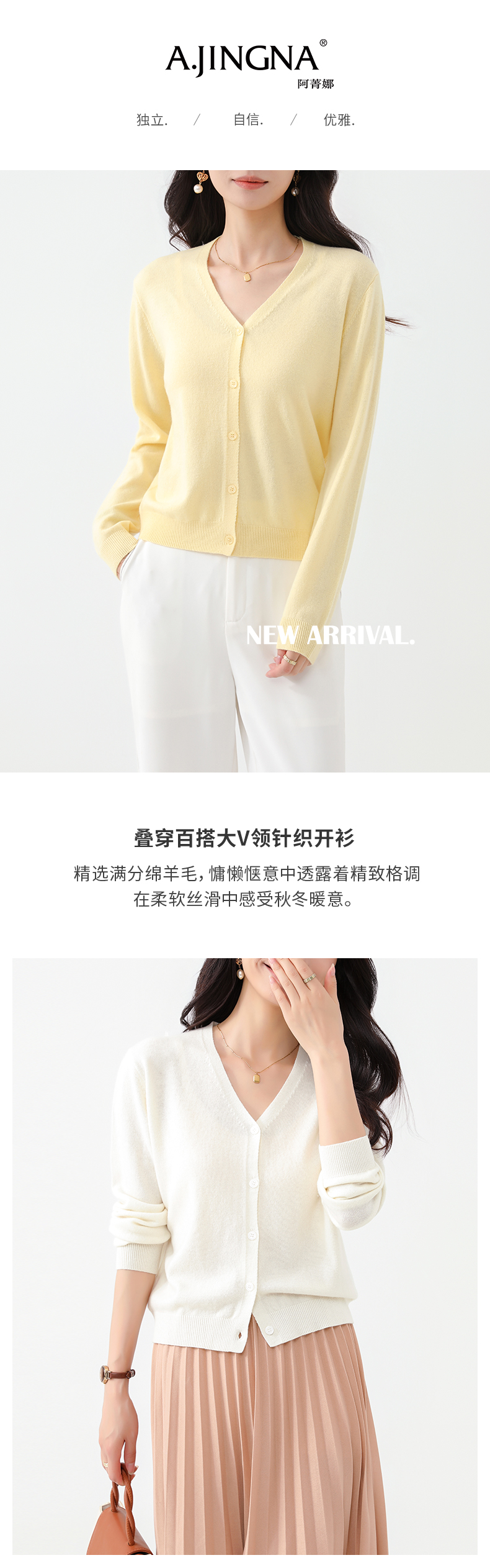 【慵懒惬意】阿菁娜叠穿百搭大V领全羊毛针织开衫F30D318002