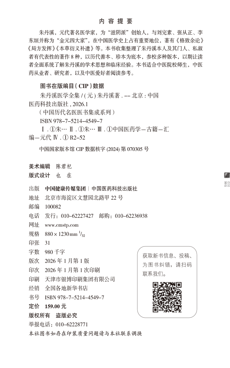 书名:朱丹溪医学全集(中国历代名医医书集成系列)